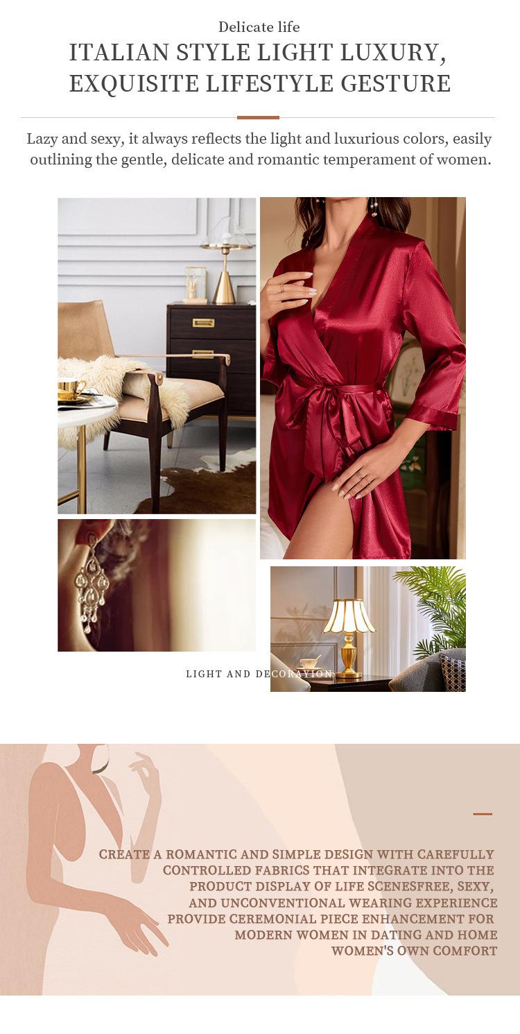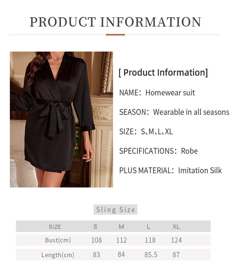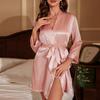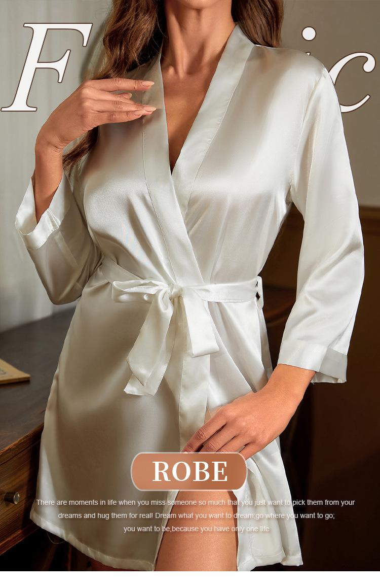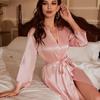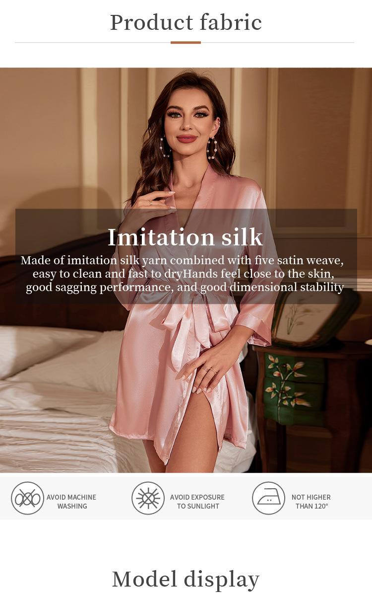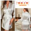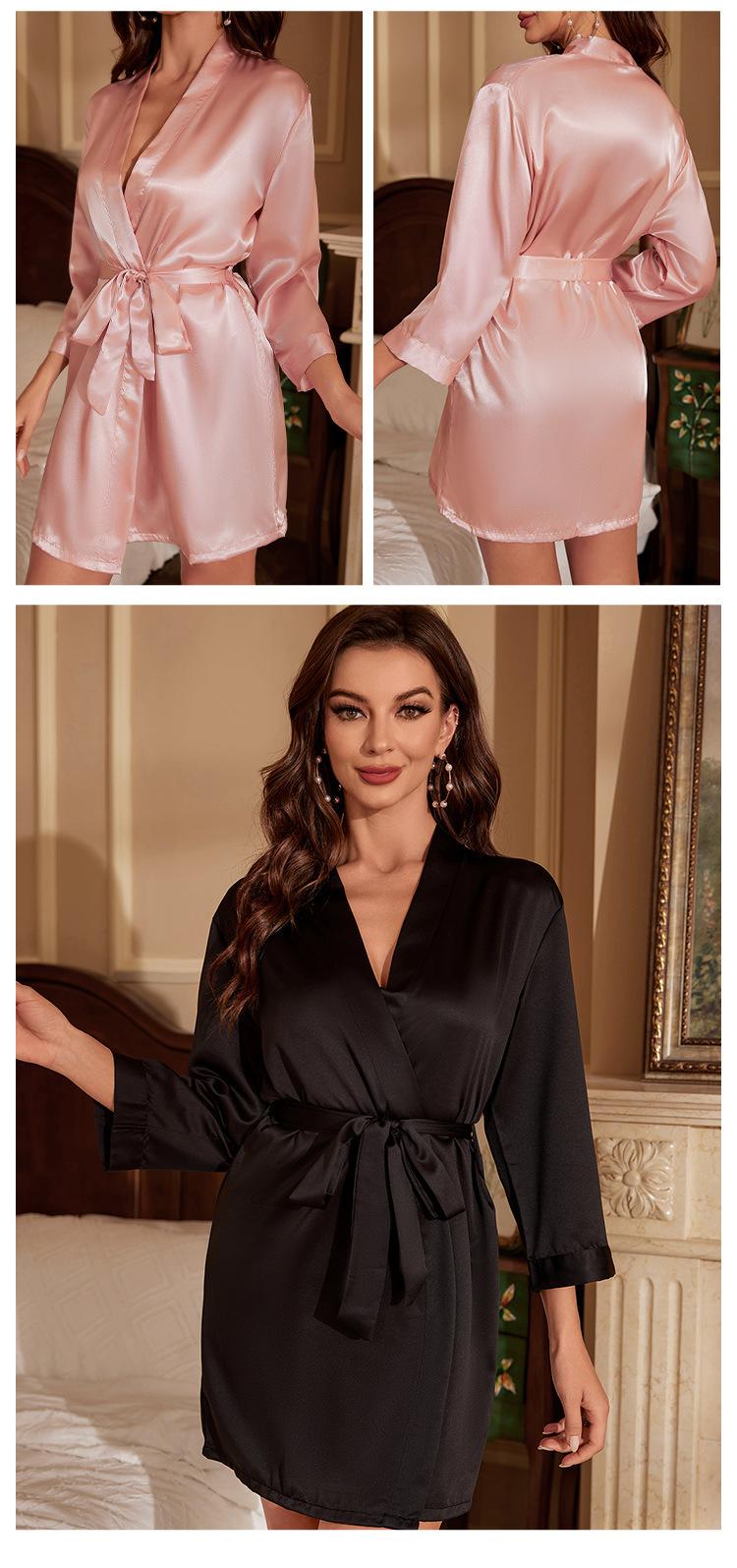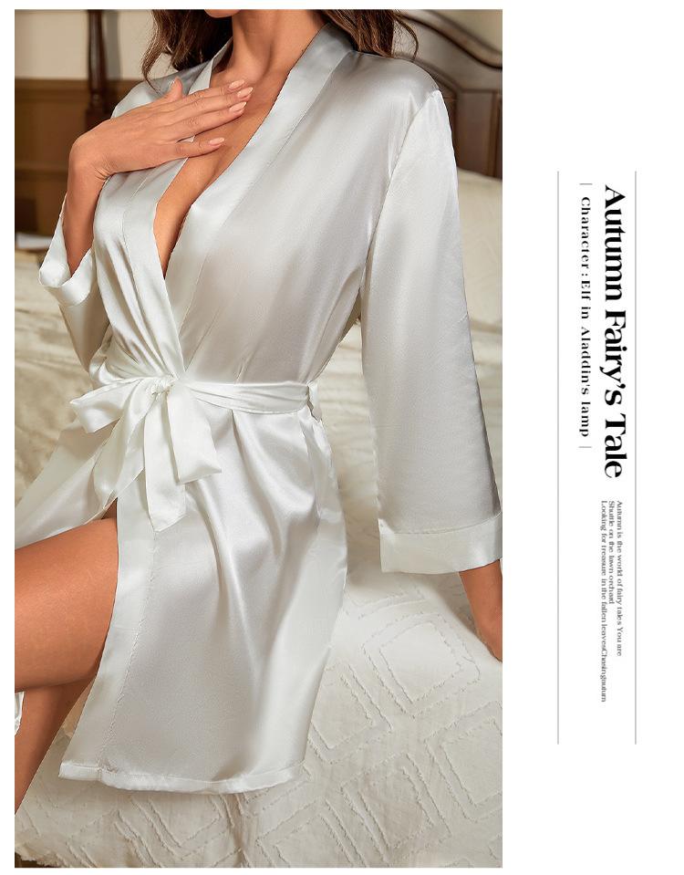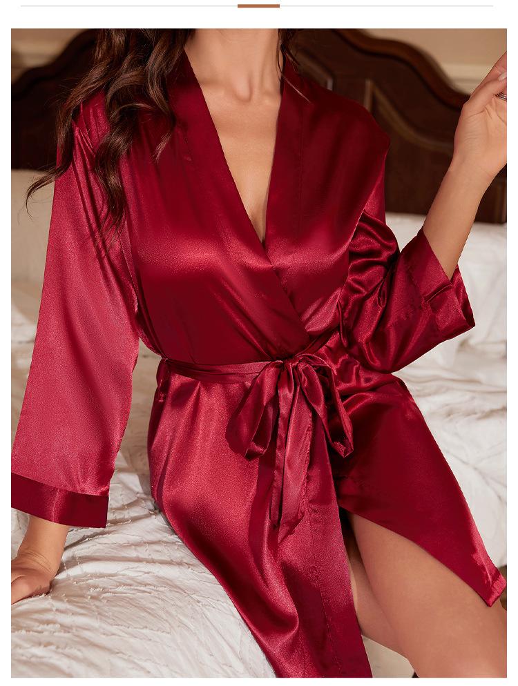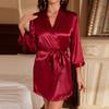 Camisón de seda de color liso de manga media para mujer, cárdigan corto de verano con cordones y borlas, bata de baño fina y sexy.