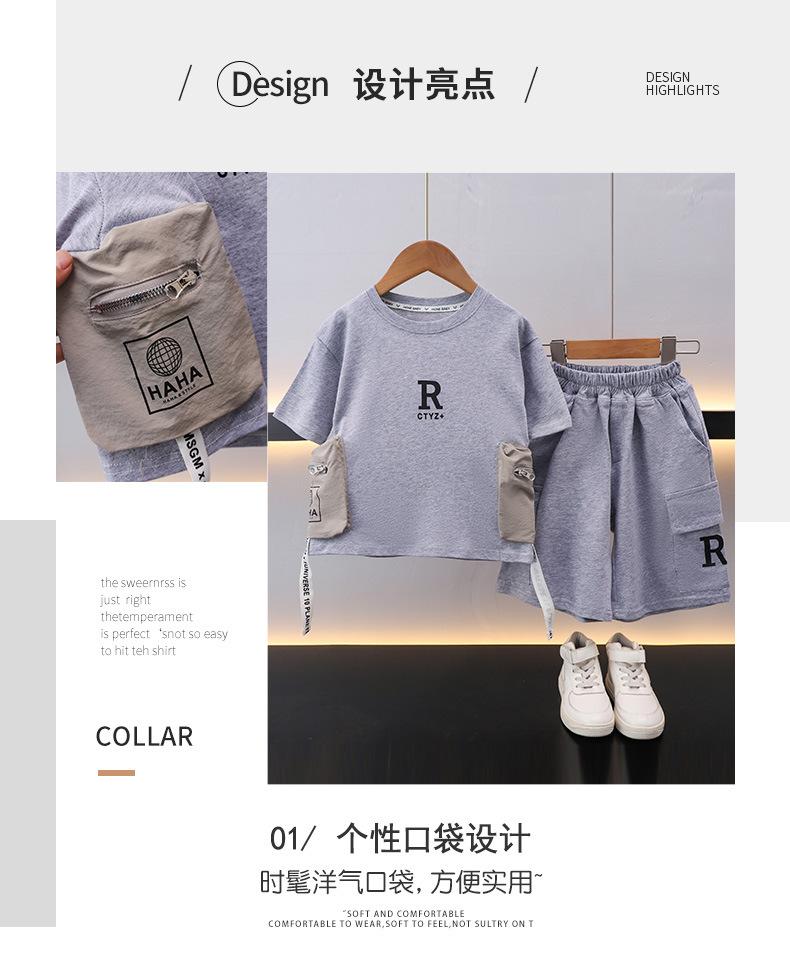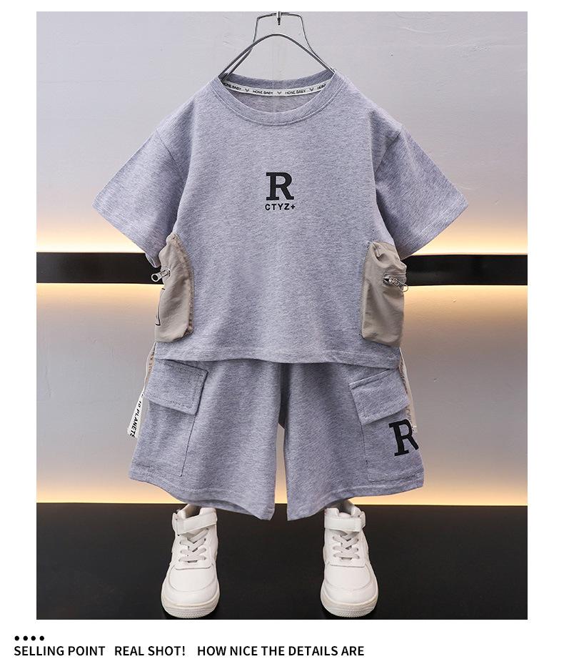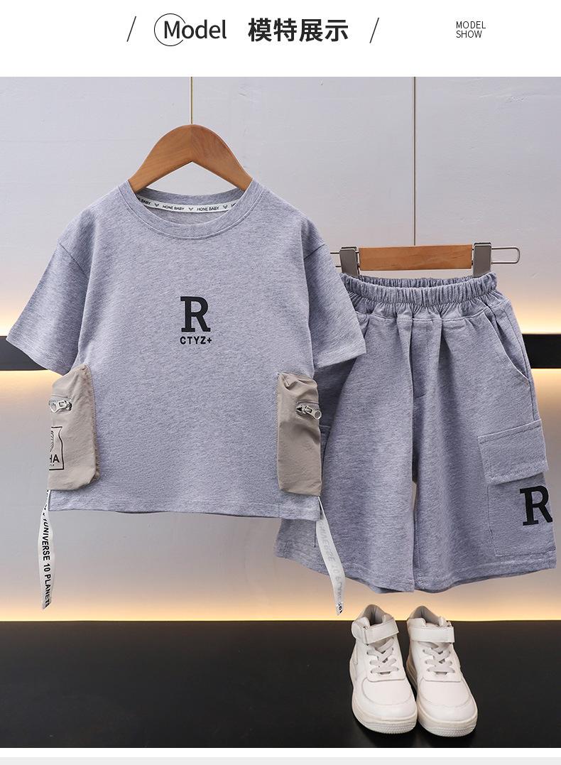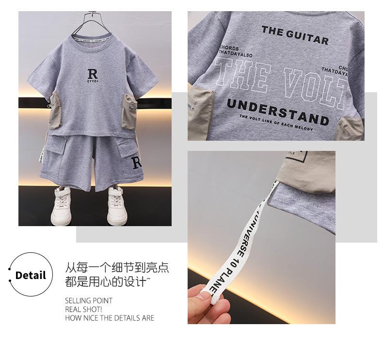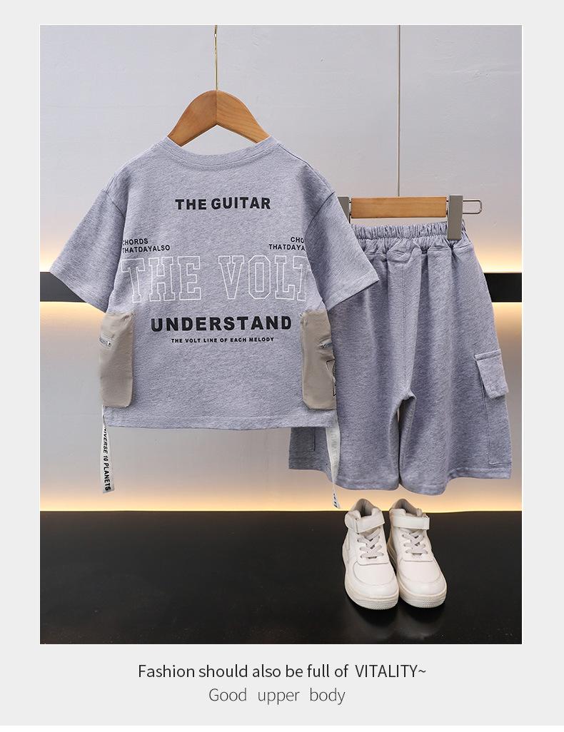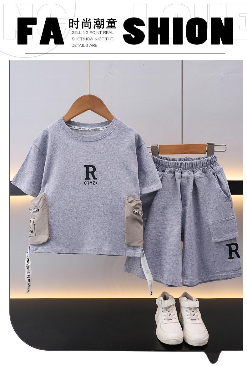 Traje de Verano para Niño Delgado de Manga Corta Niño Nuevo Moderno Verano Guapo Casual Deportivo Conjunto de Dos Piezas Moderno