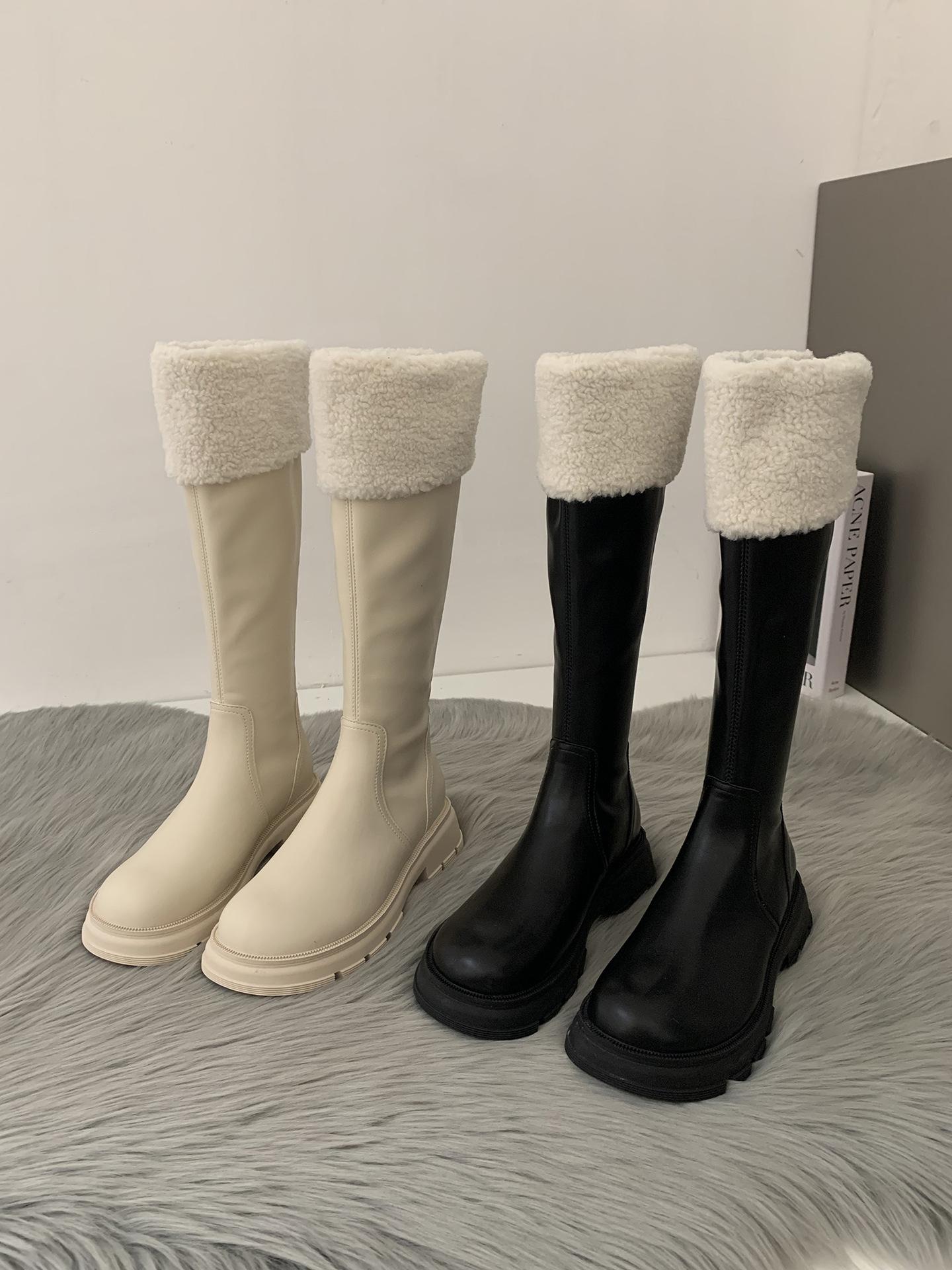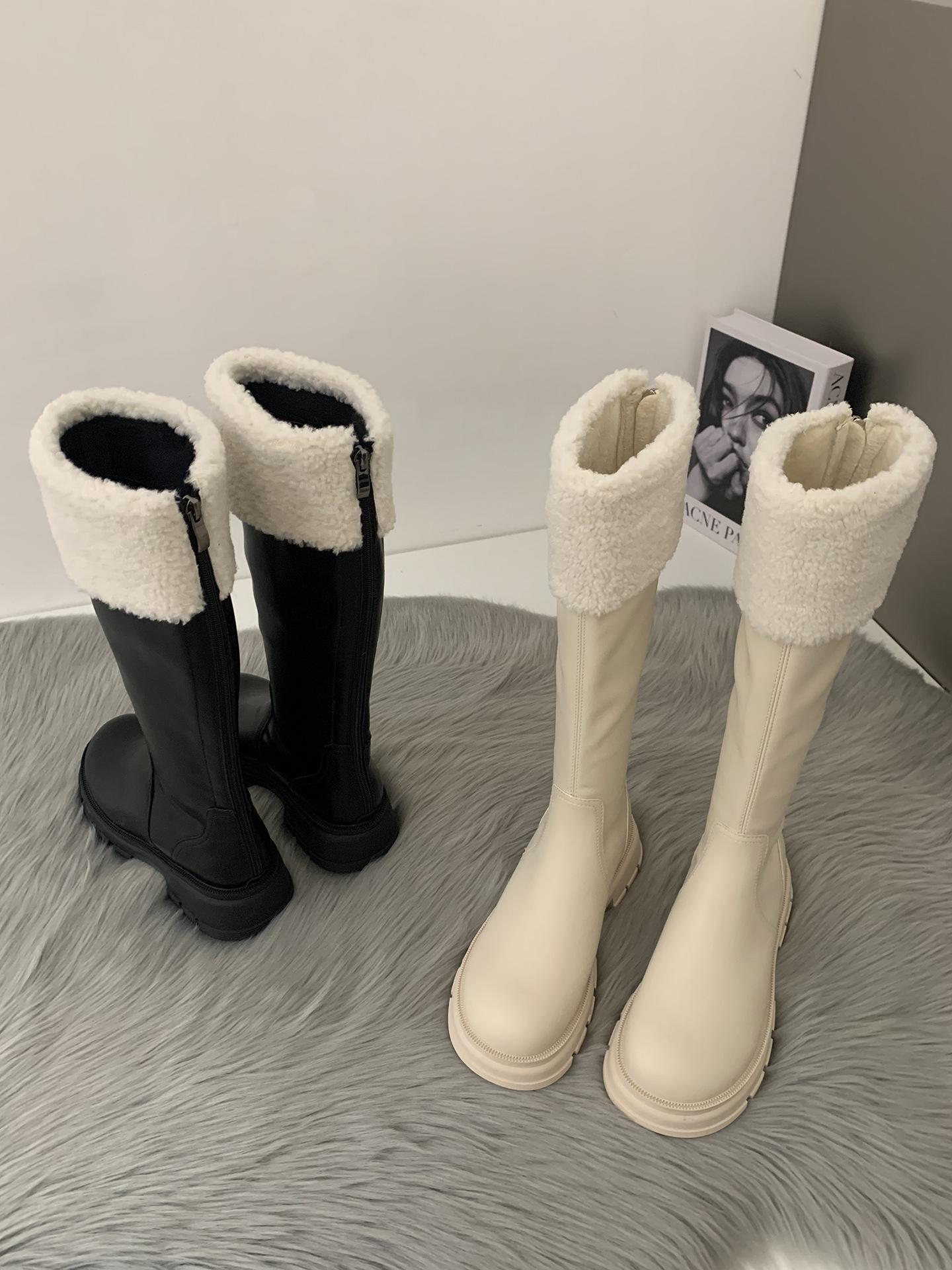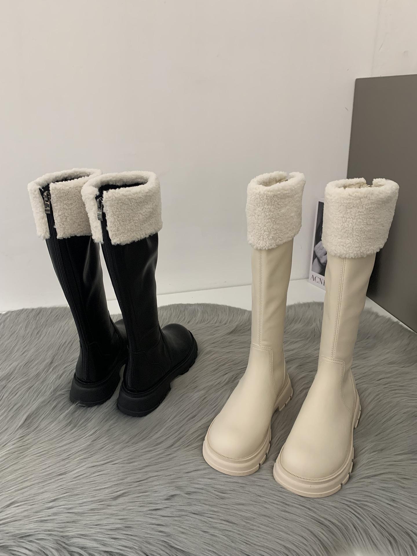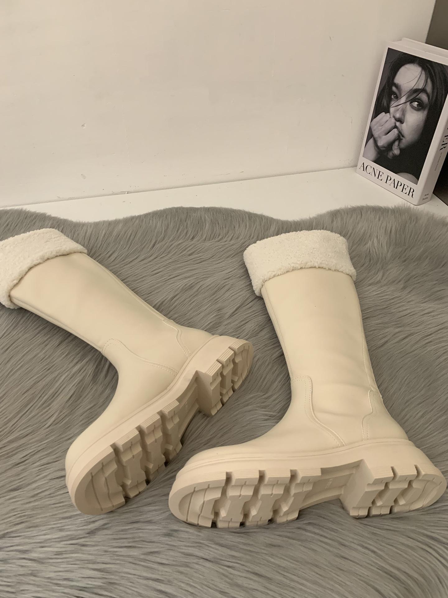 Botas de nieve de suela gruesa, zapatos blancos peludos para mujer, nuevas botas de algodón con forro polar populares de 2023, botas largas, botas Knight Martin
