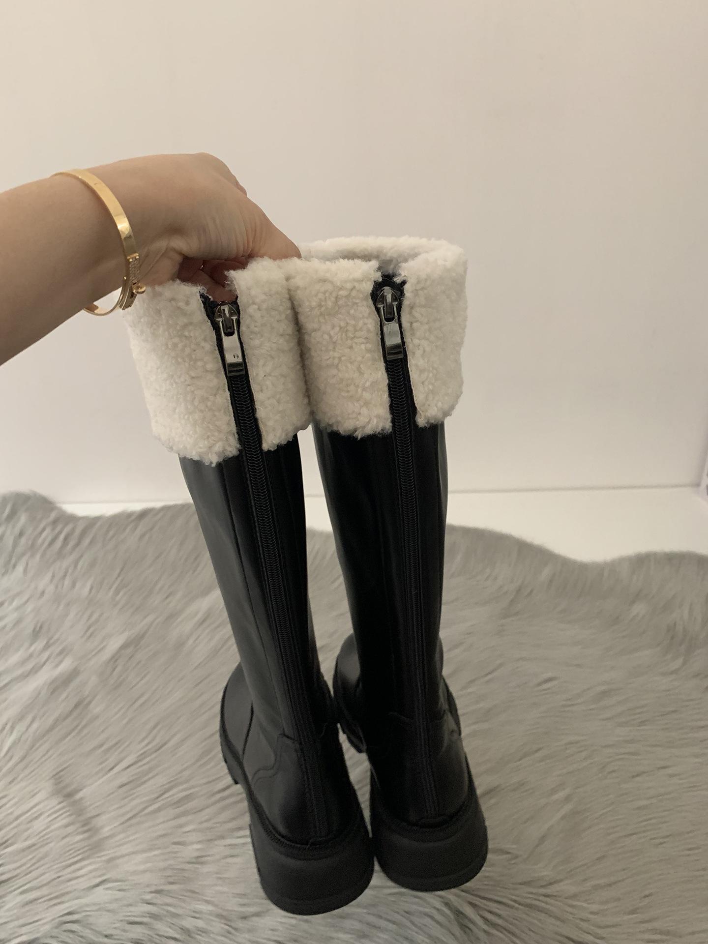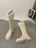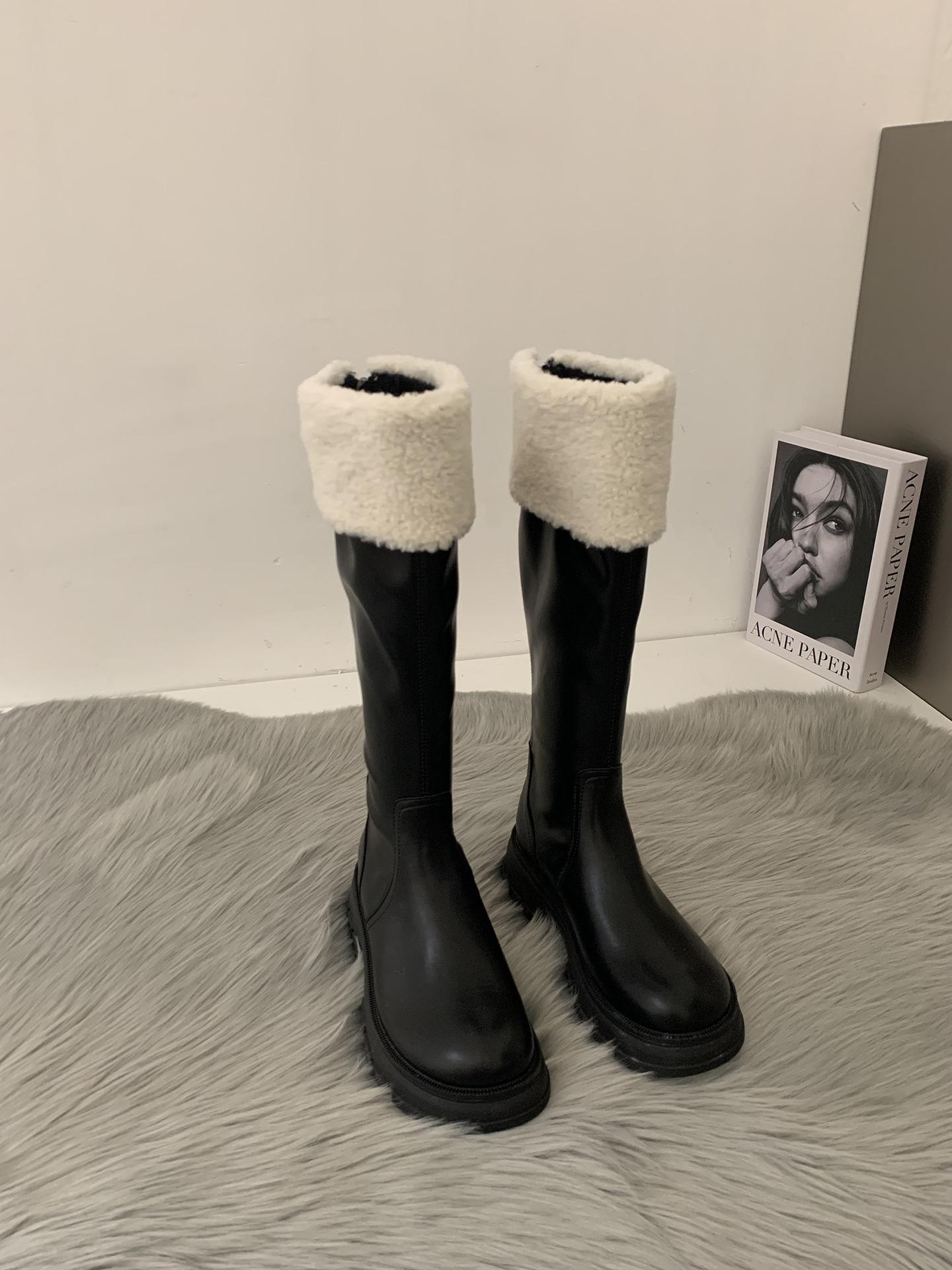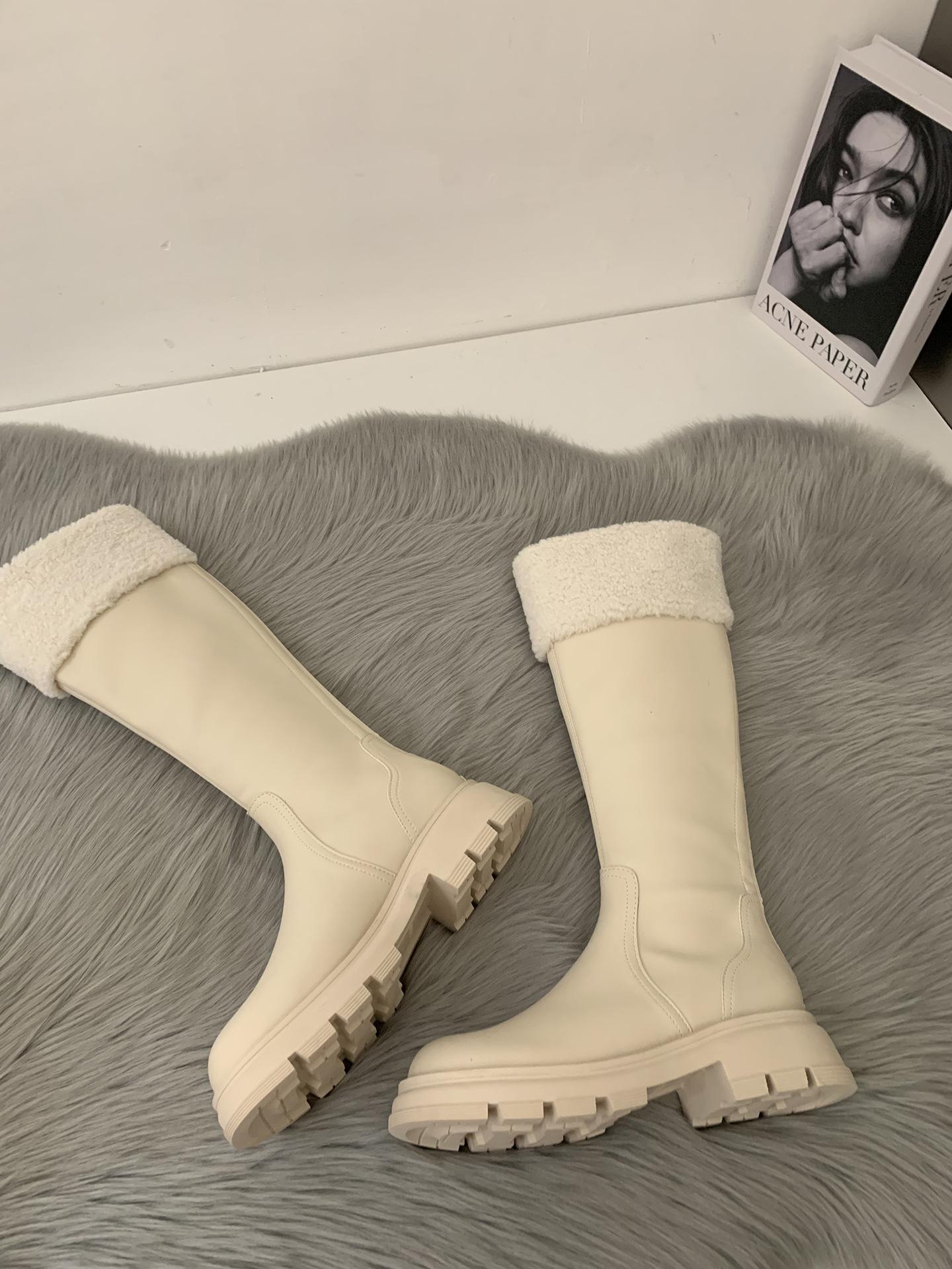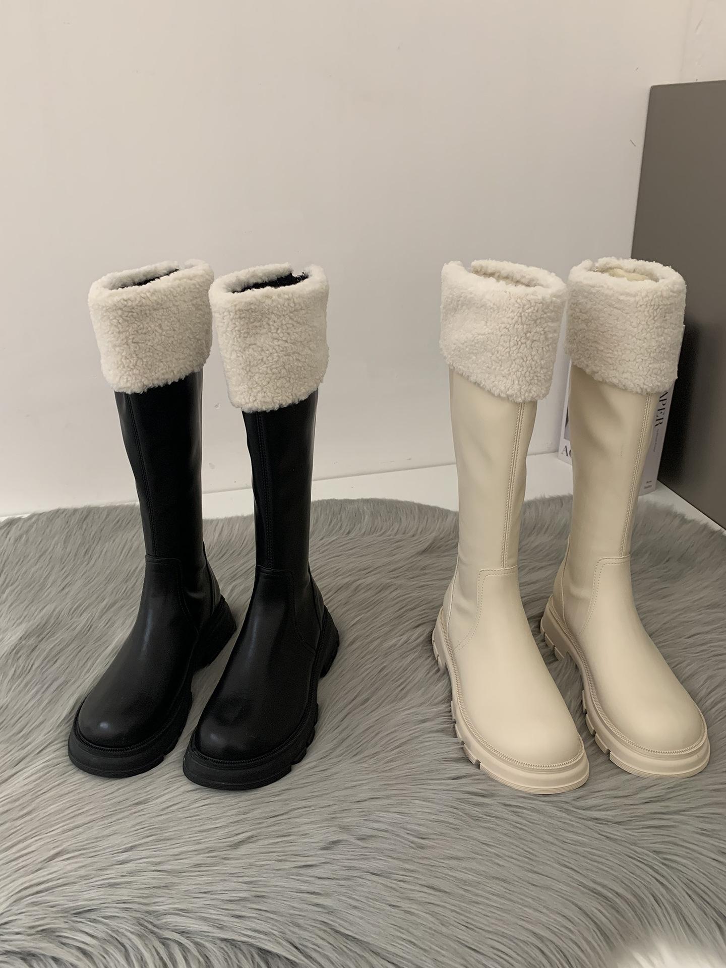 Botas de nieve de suela gruesa, zapatos blancos peludos para mujer, nuevas botas de algodón con forro polar populares de 2023, botas largas, botas Knight Martin