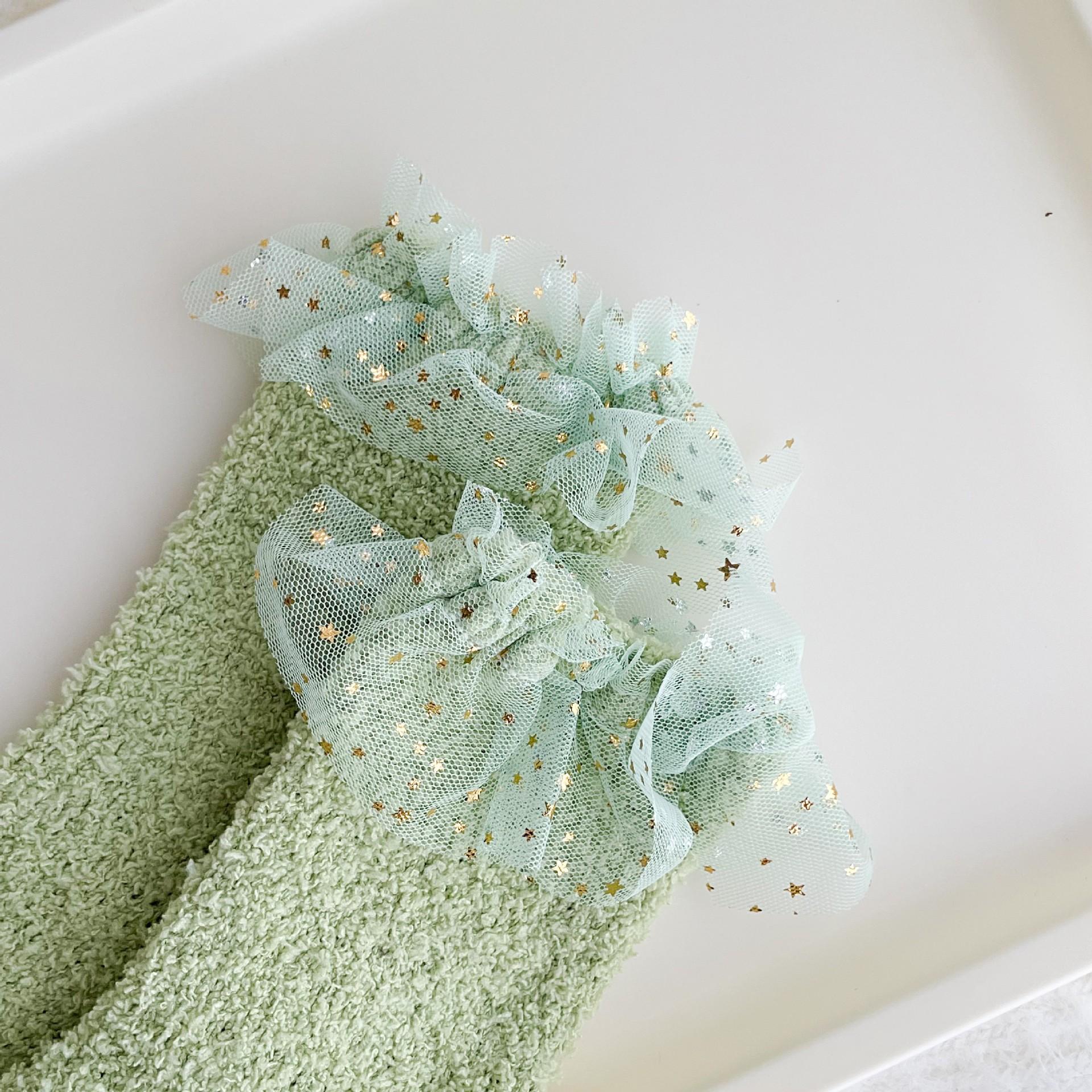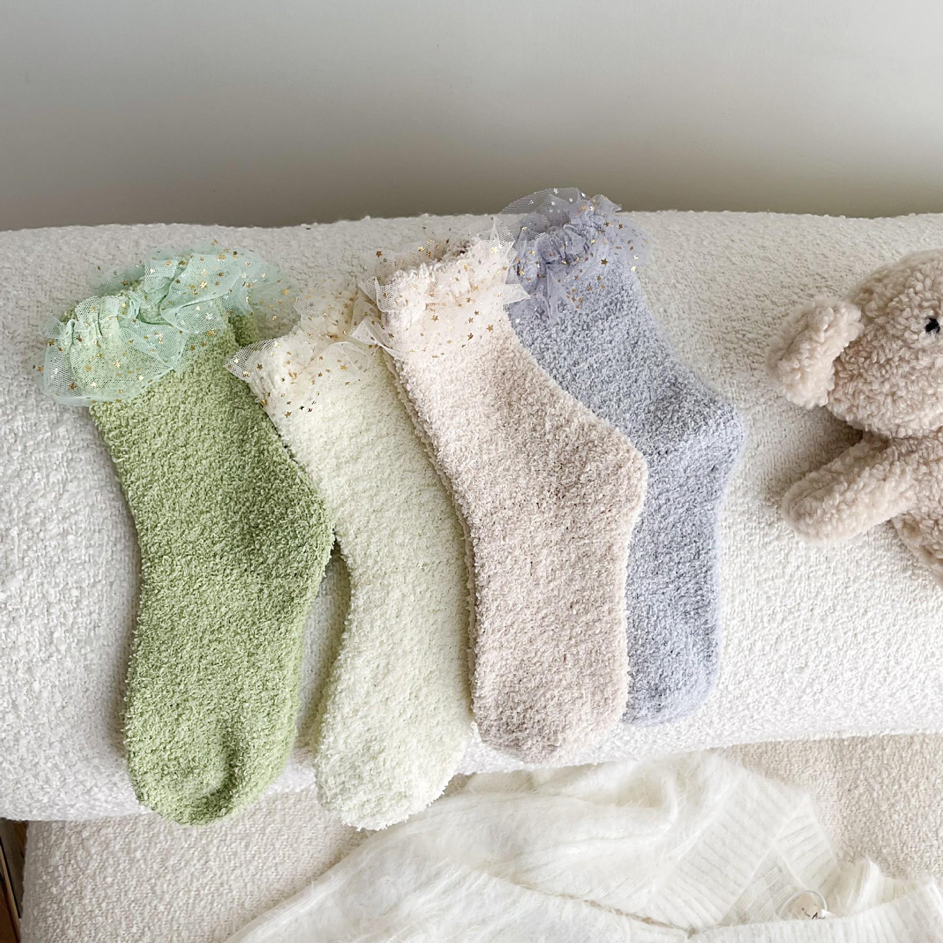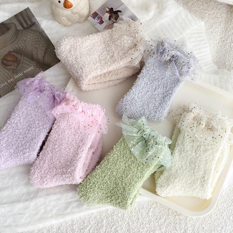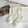 Calcetines cálidos de invierno para mujer, de encaje, bonitos y bonitos, de forro polar coral, hasta la mitad de la pantorrilla, para el hogar, venta al por mayor