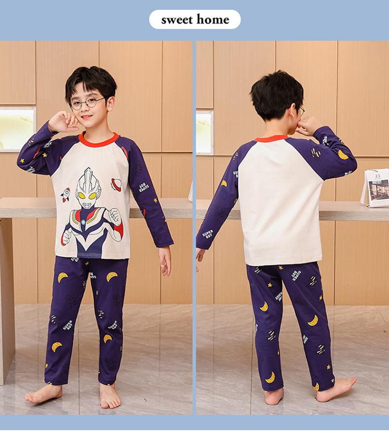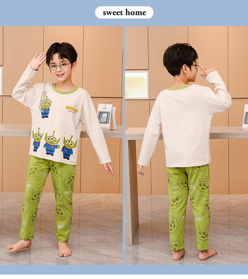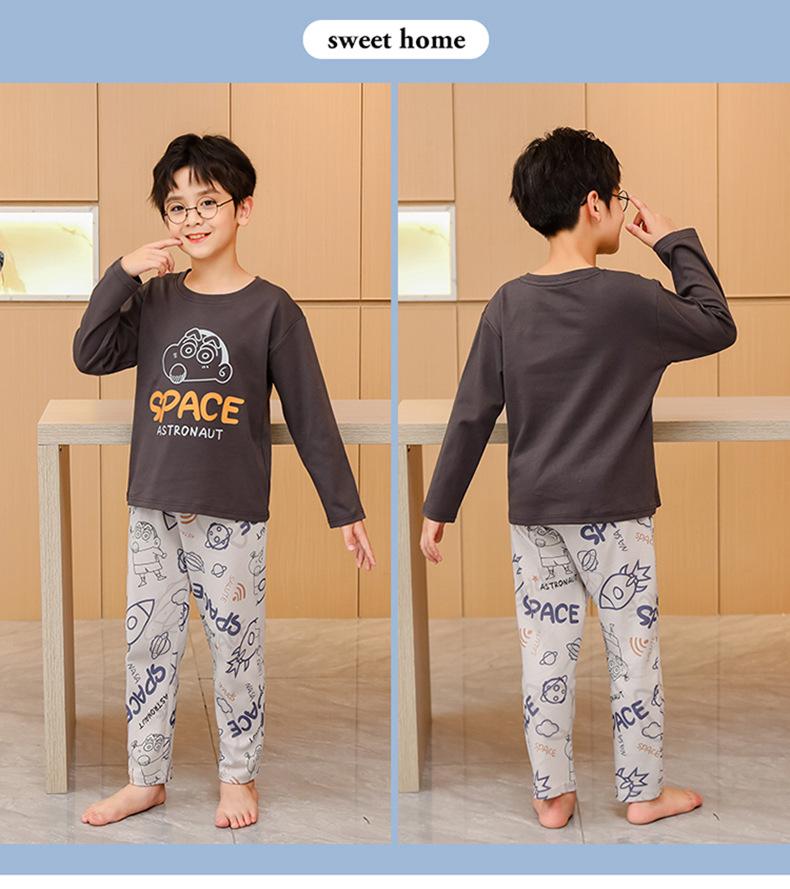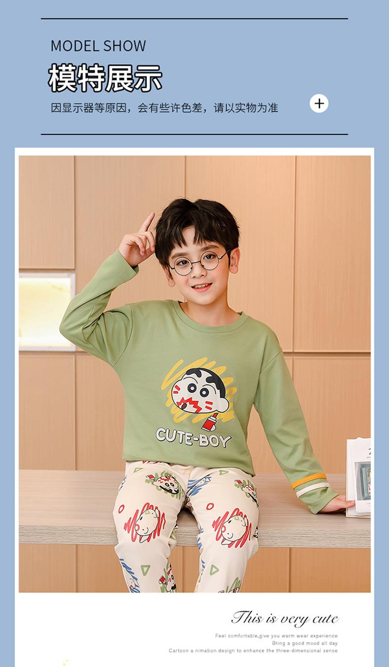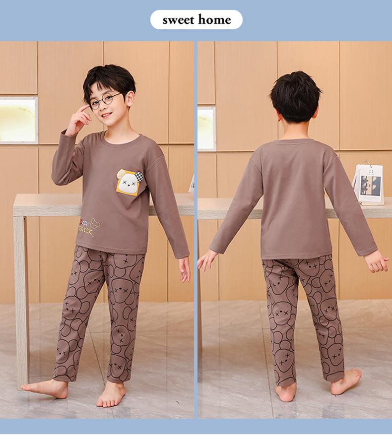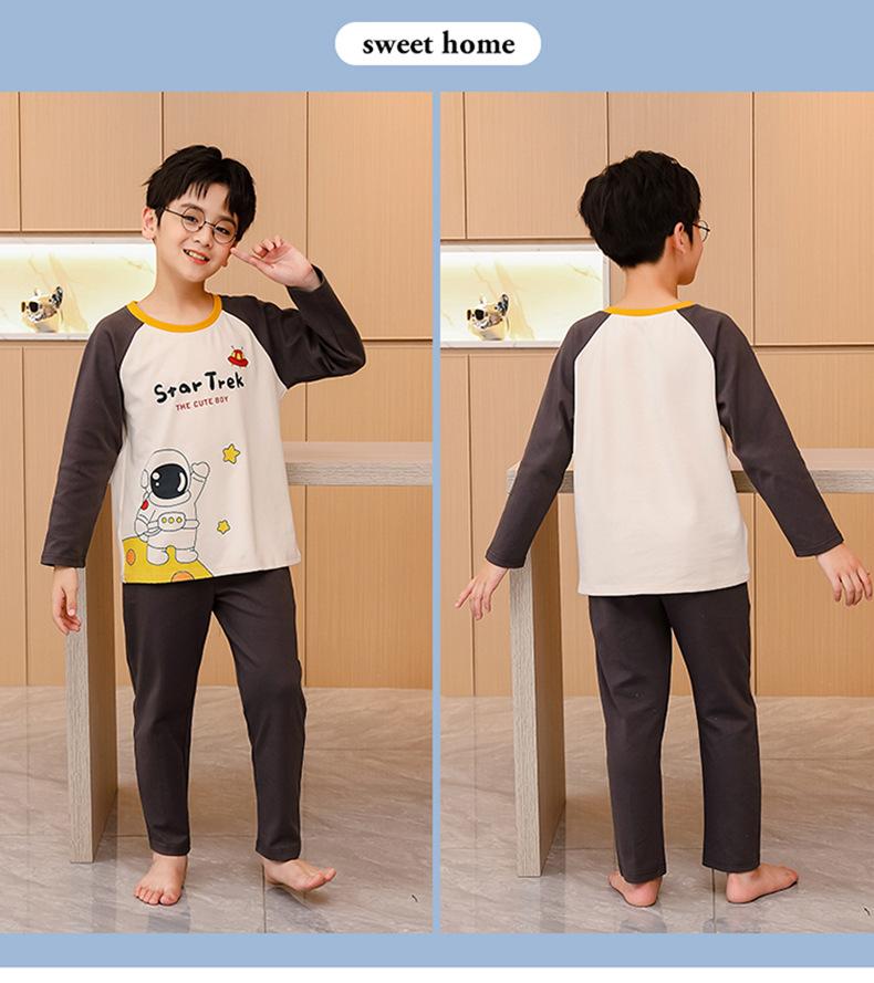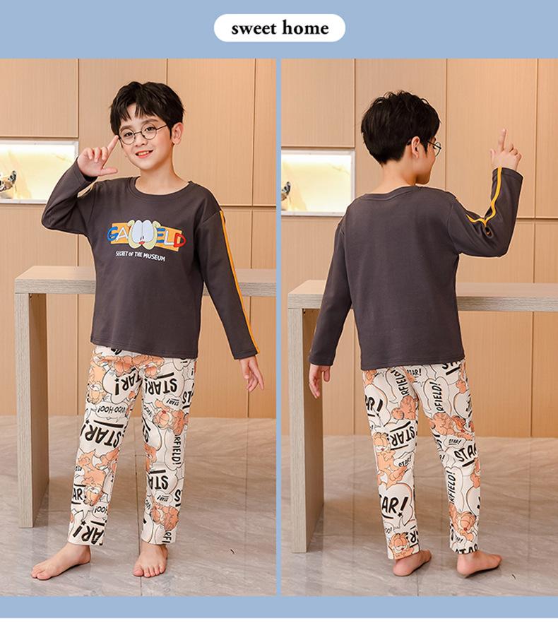 Pijamas para niños de hombre de primavera y otoño de algodón de manga larga tipo jersey lindo de dibujos animados holgado mediano y grande ropa para el hogar para niños se puede usar afuera