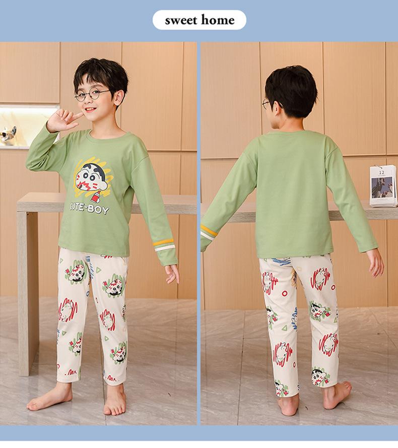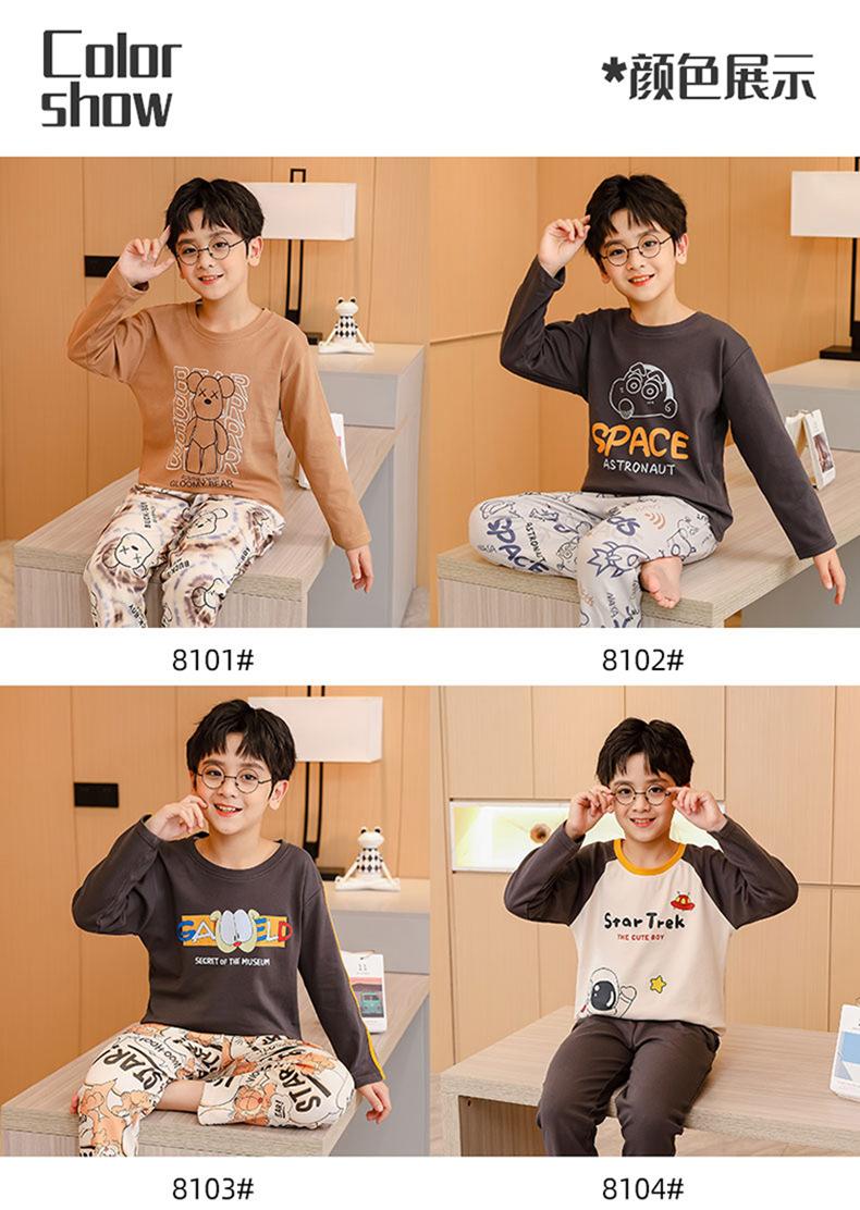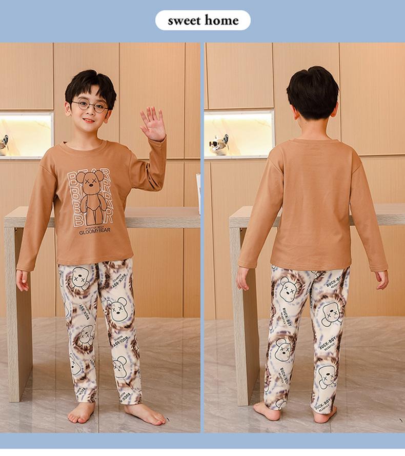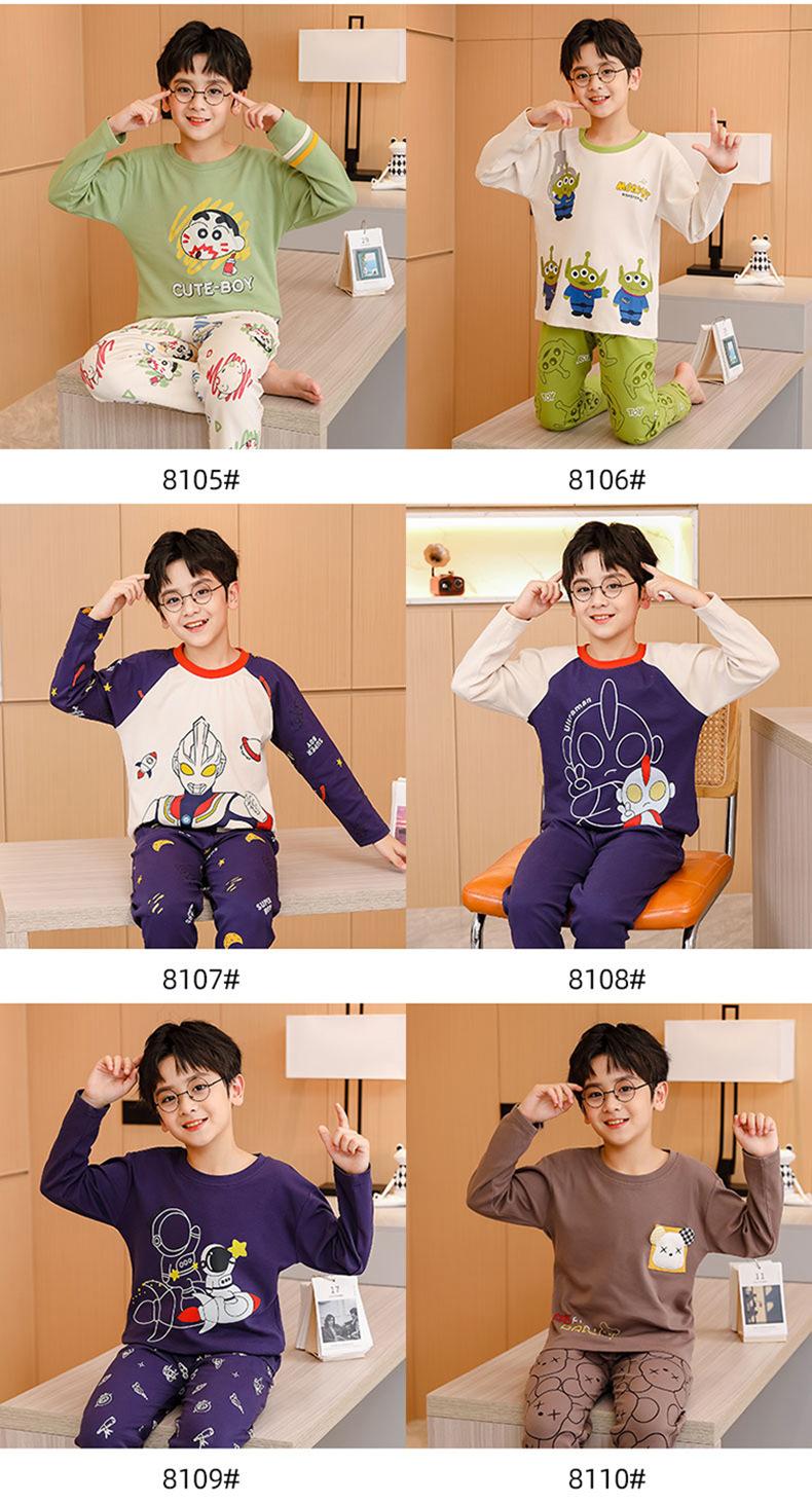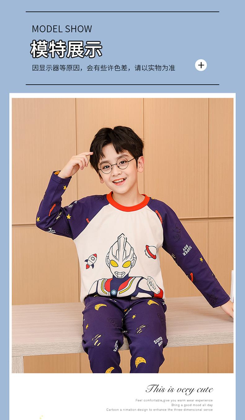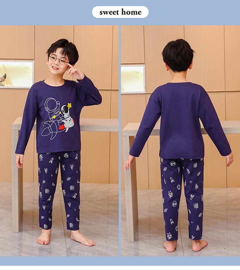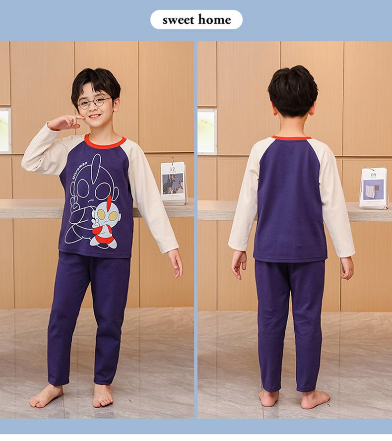Pijamas para niños de hombre de primavera y otoño de algodón de manga larga tipo jersey lindo de dibujos animados holgado mediano y grande ropa para el hogar para niños se puede usar afuera