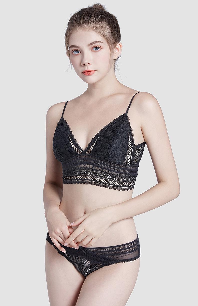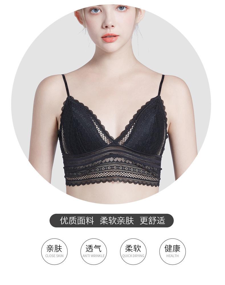 Fabricantes al por mayor de ropa interior de encaje transparente fino y sexy nuevo, sujetador de mujer con escote pequeño fruncido, conjunto de sujetador de talla grande
