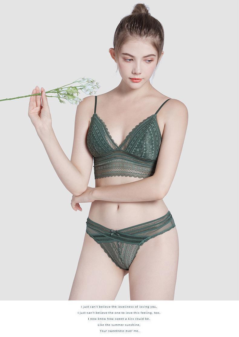 Venta directa de fábrica, nuevo conjunto de sujetador sexy de encaje pequeño con pecho grande y ropa interior hueca ultrafina para mujer