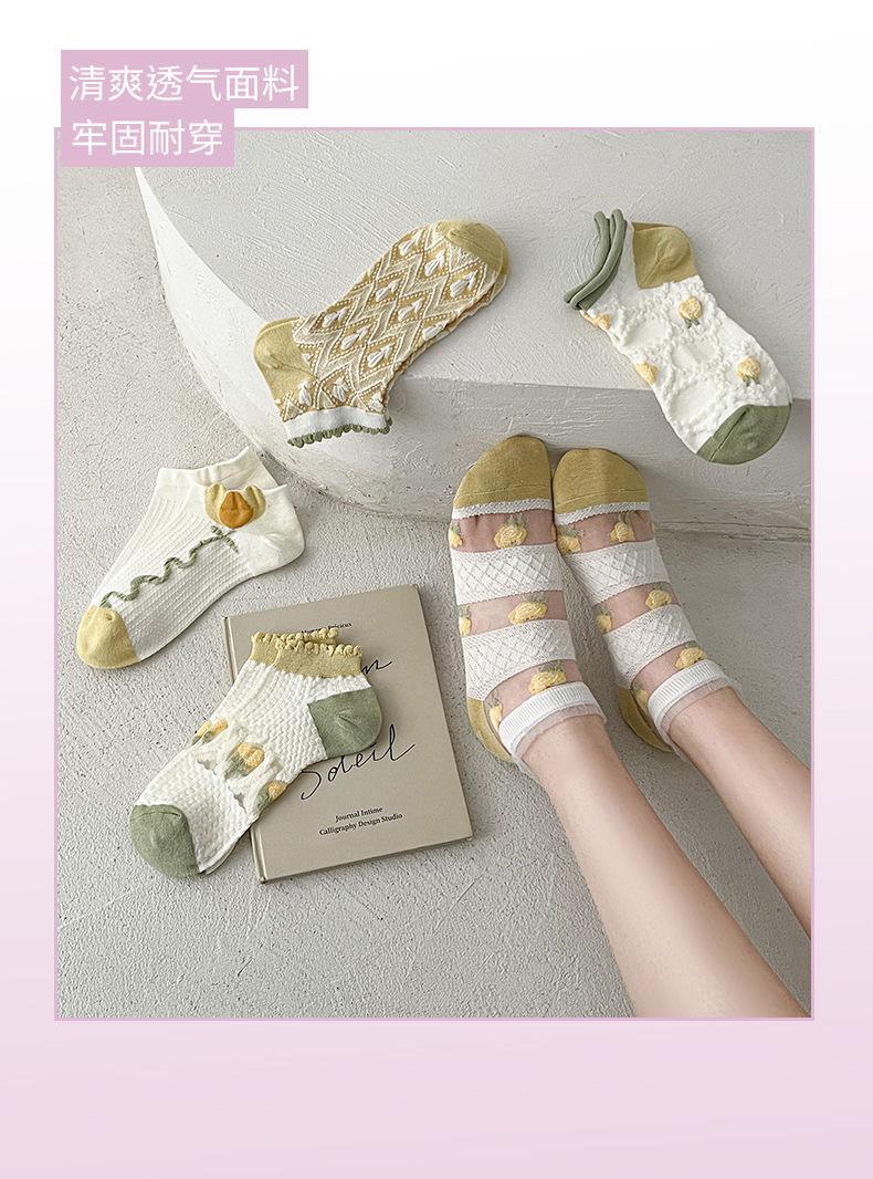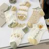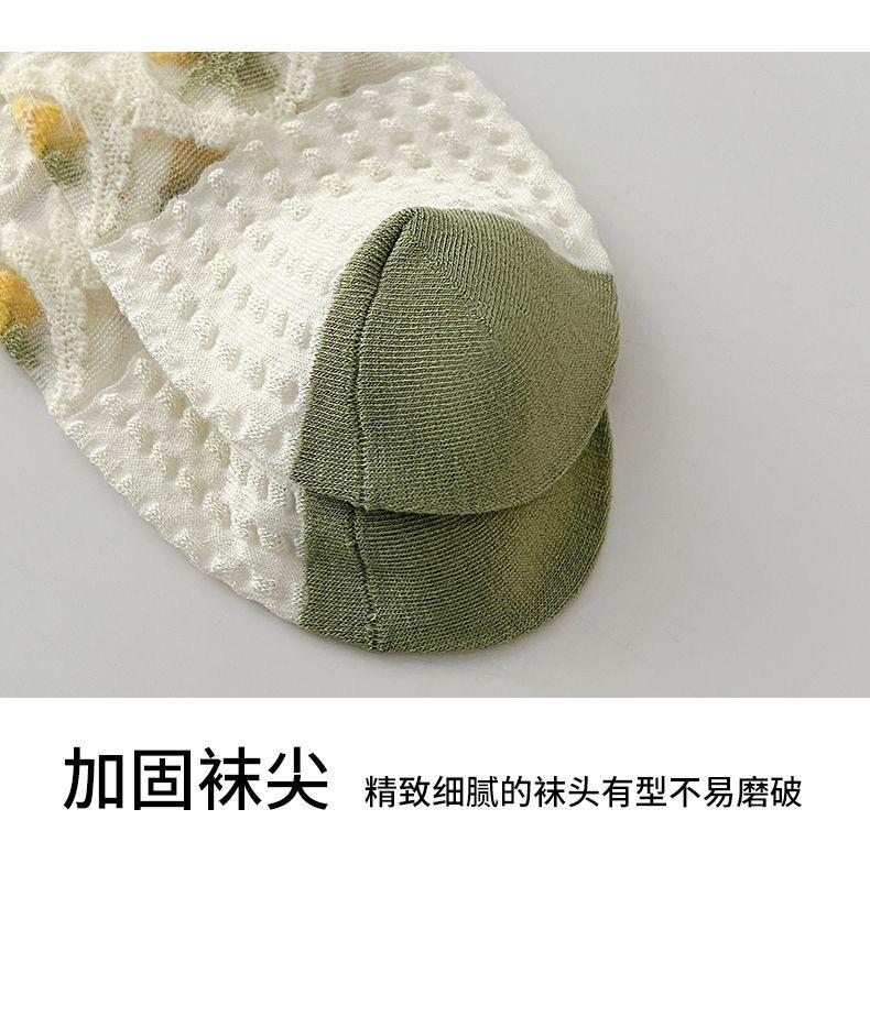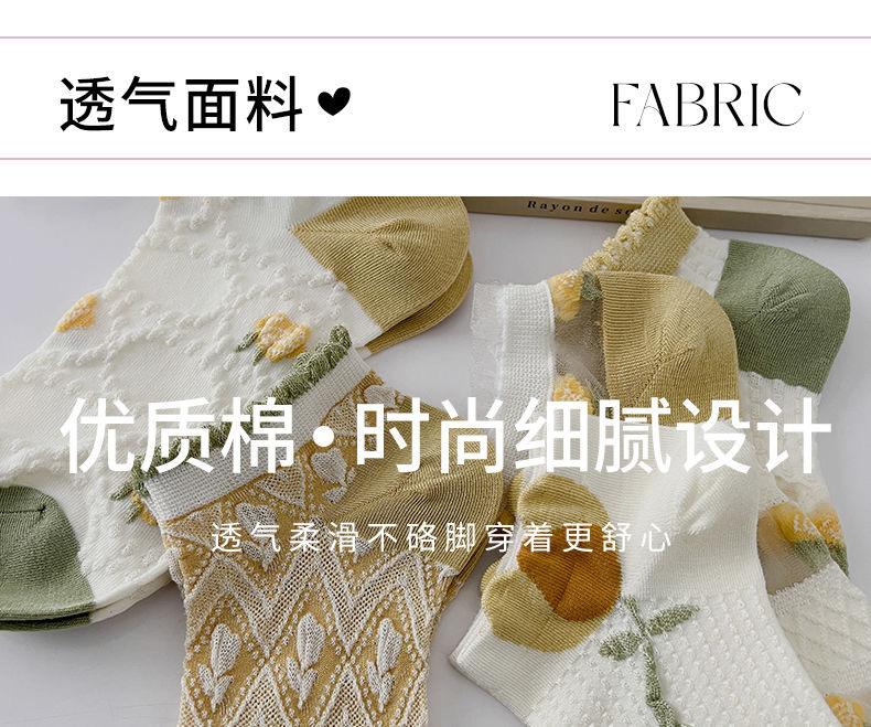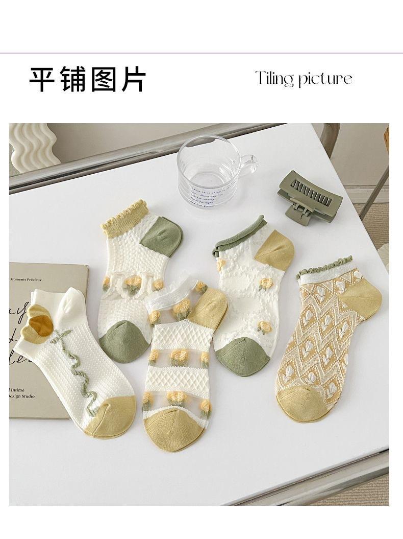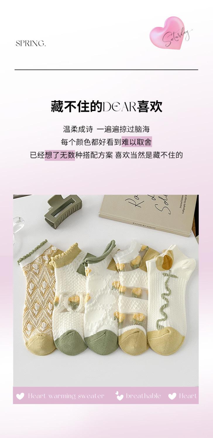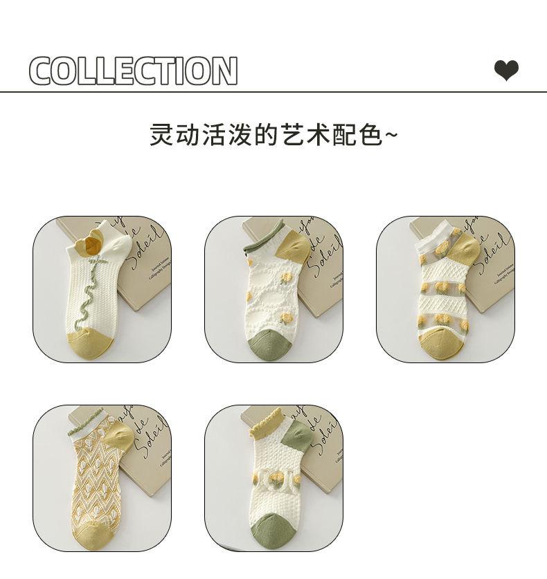 Calcetines para Mujer Primavera y Verano Delgados Flor Damas Estilo Japonés Calcetines Estilo Flor Verde Transpirables Calcetines de Barco Calcetines Estéreo Lindos