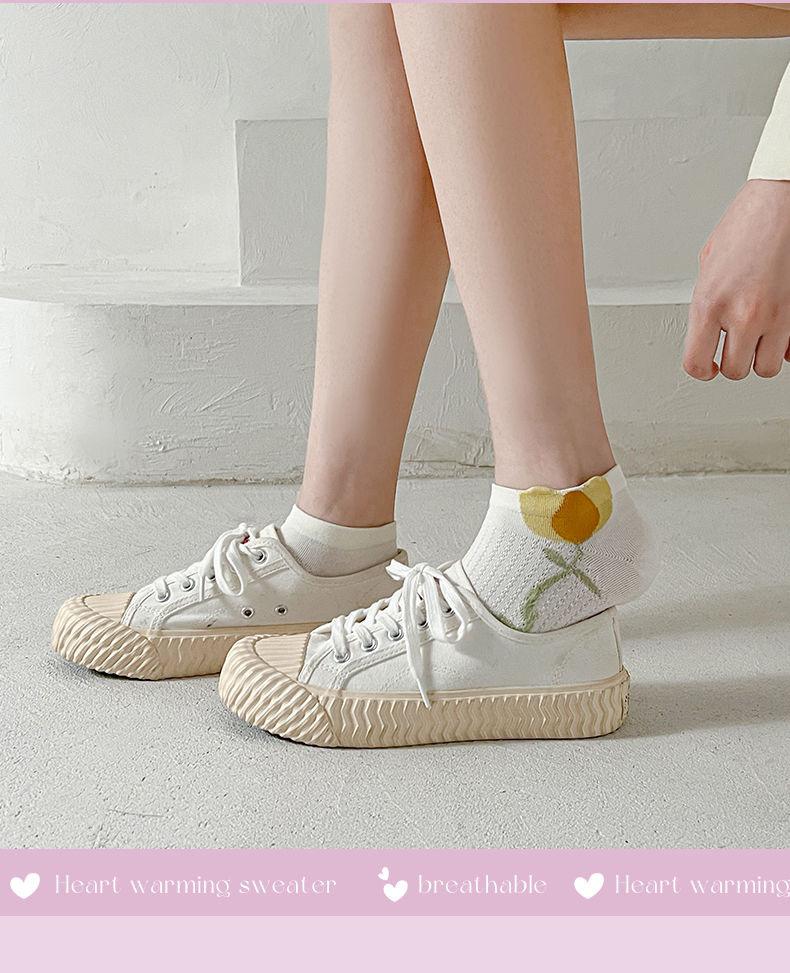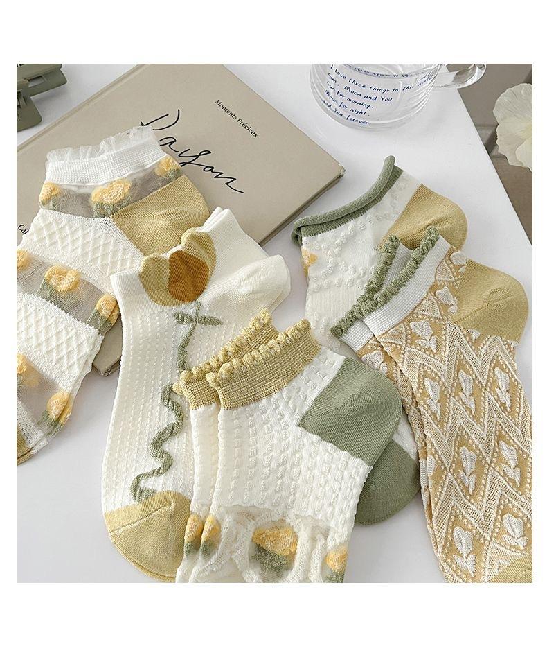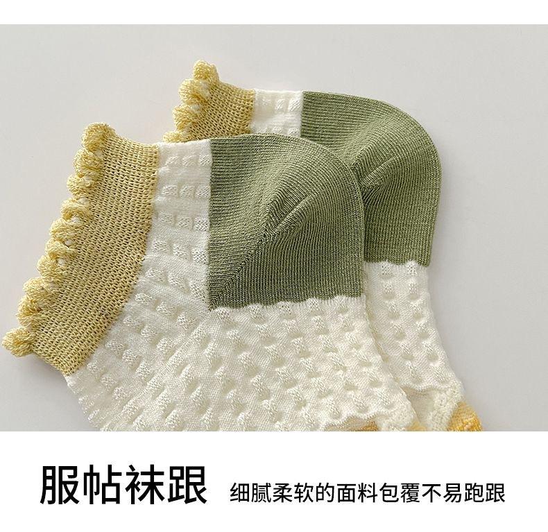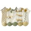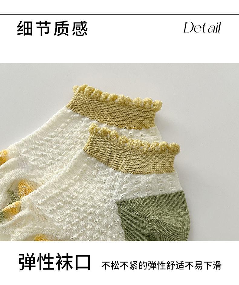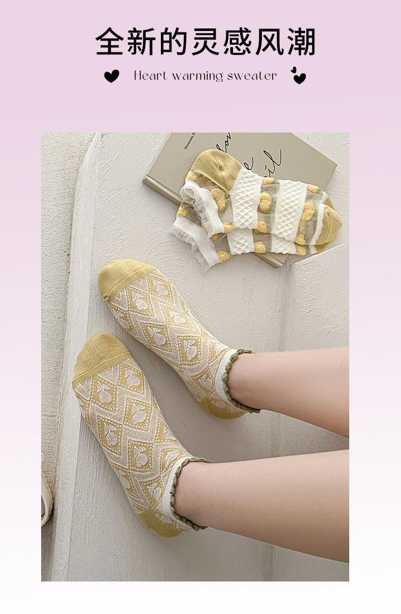 Calcetines para Mujer Primavera y Verano Delgados Flor Damas Estilo Japonés Calcetines Estilo Flor Verde Transpirables Calcetines de Barco Calcetines Estéreo Lindos