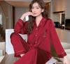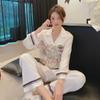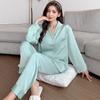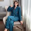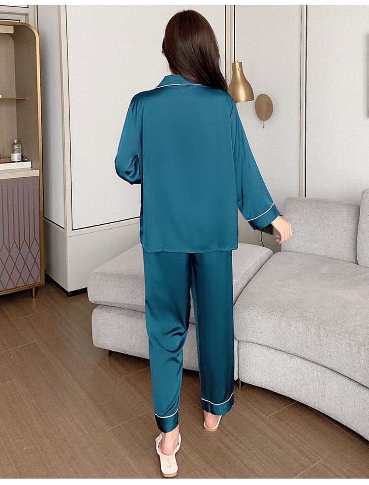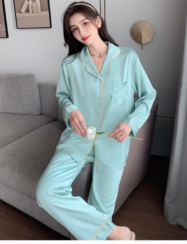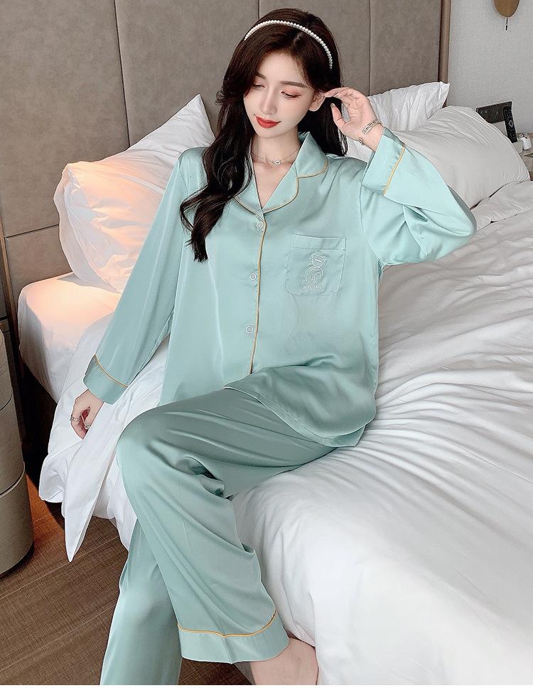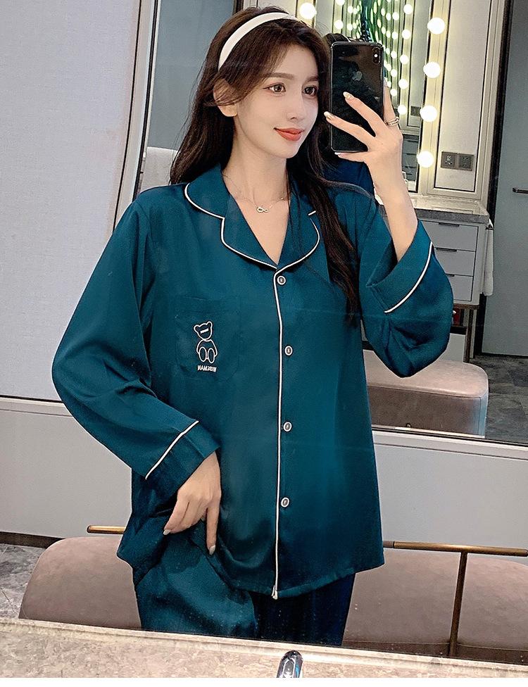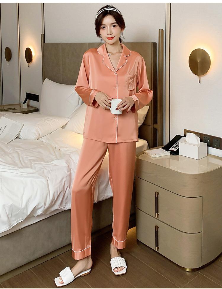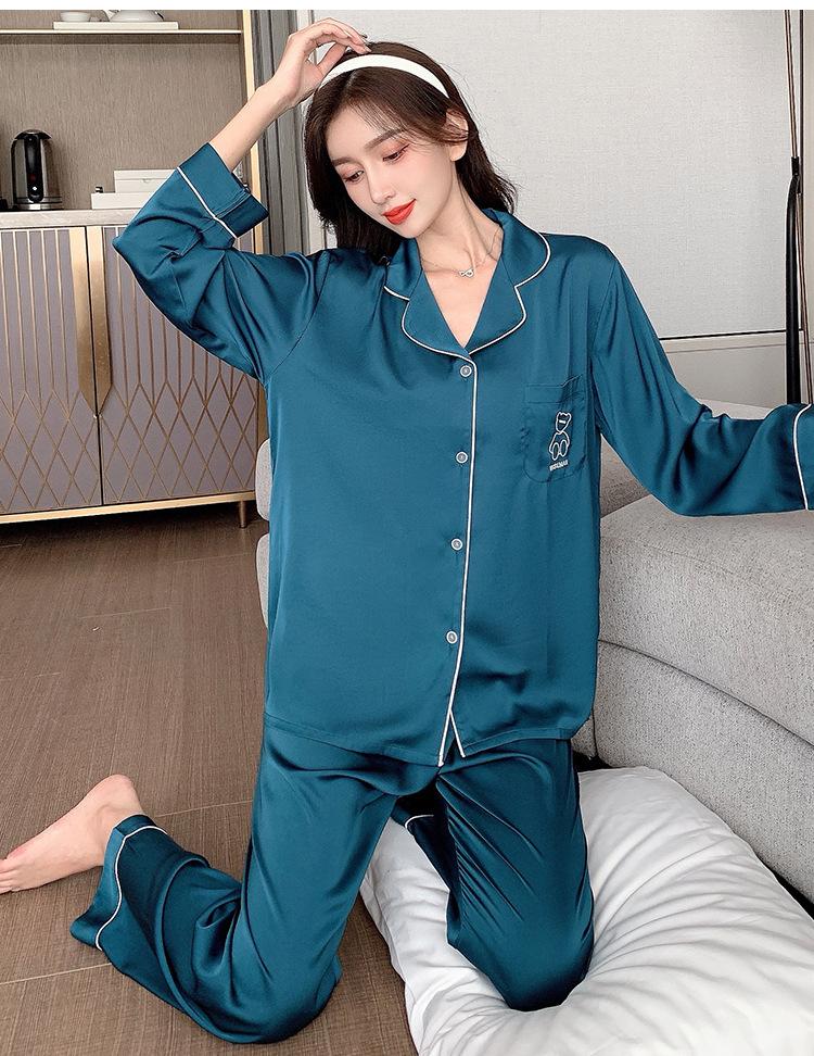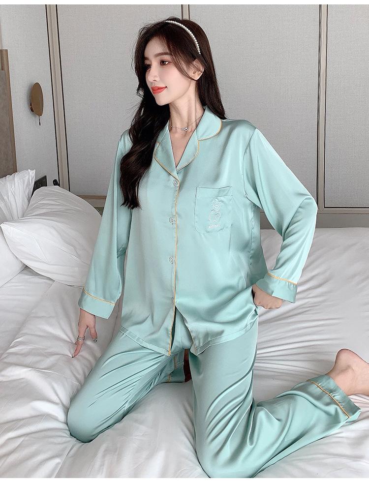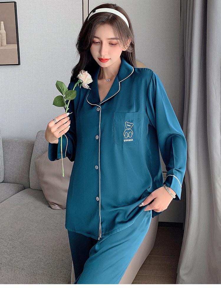 Pijamas de seda de hielo para mujer, ropa de casa de otoño, manga larga, color liso, traje de oso, ropa de casa de primavera y otoño para mujer.
