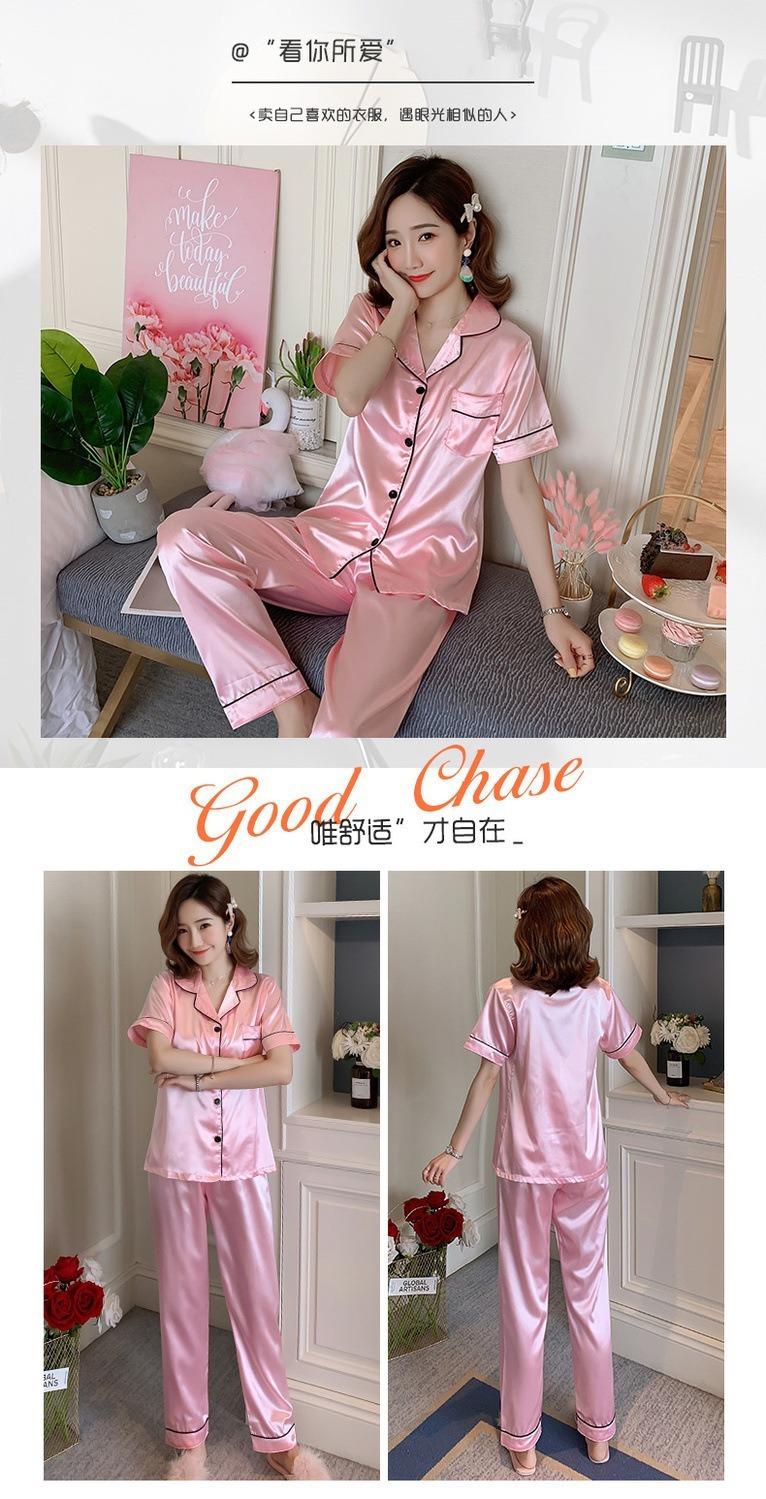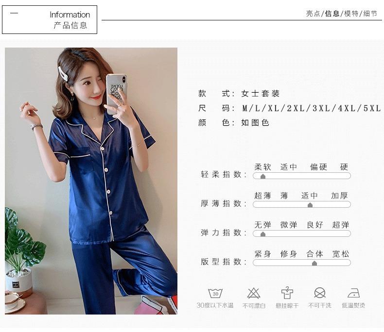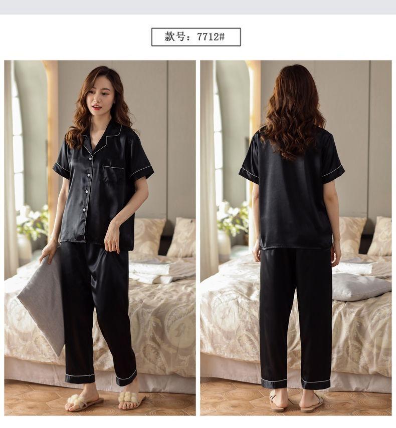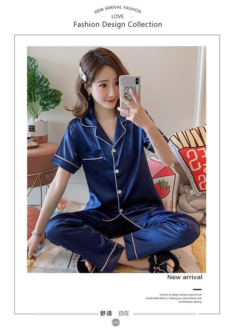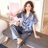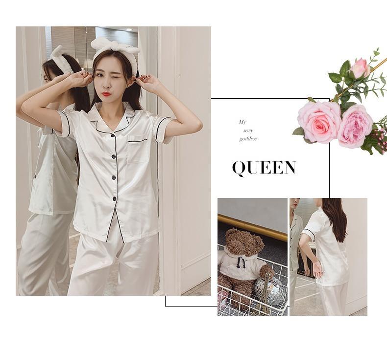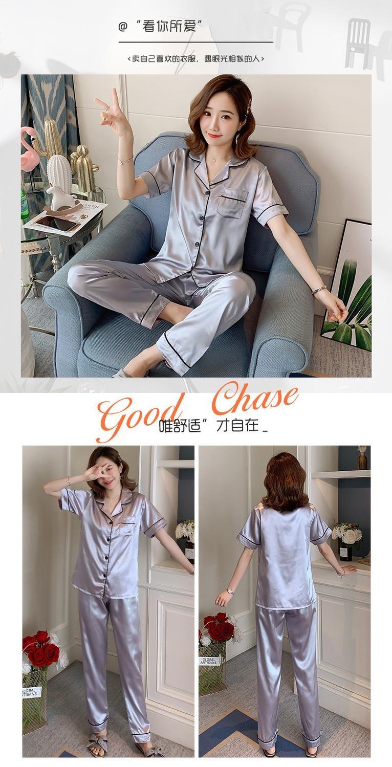 Pantalones de manga corta, cárdigan de verano de color liso con solapa de seda sintética, ropa de casa, pijama sencillo, traje de dos piezas para uso a largo plazo.