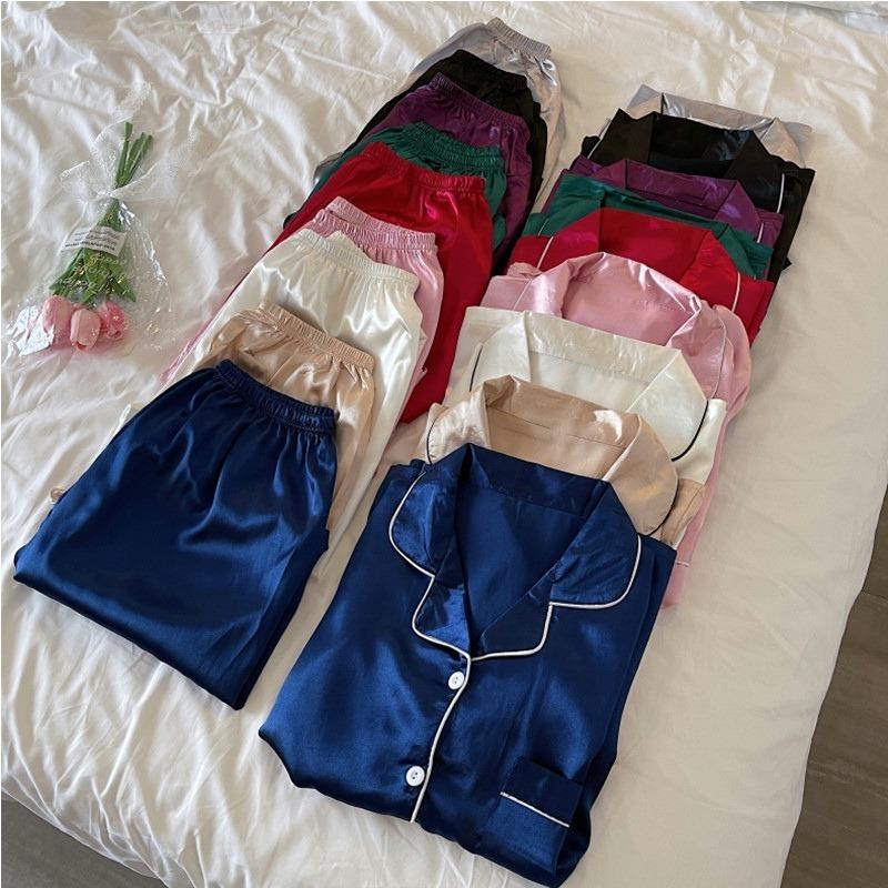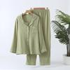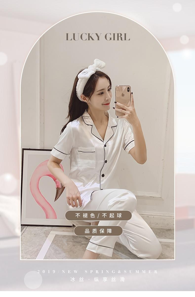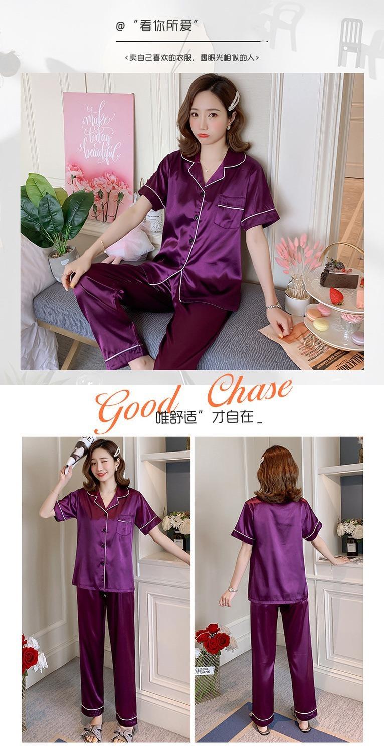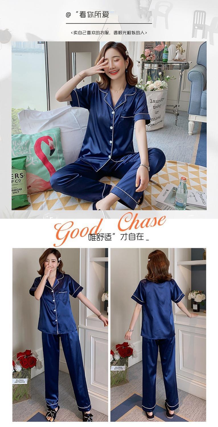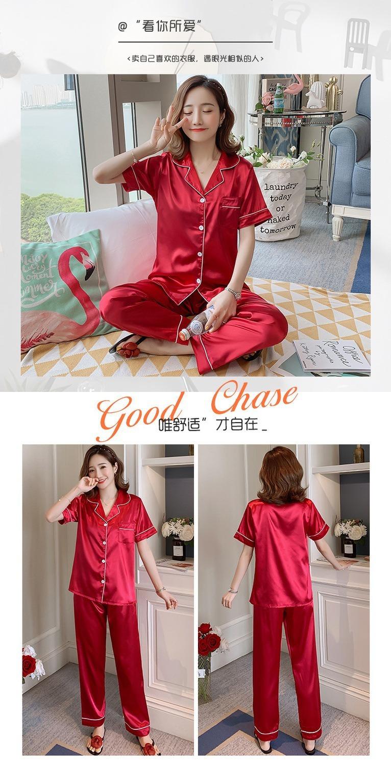 Pantalones de manga corta, cárdigan de verano de color liso con solapa de seda sintética, ropa de casa, pijama sencillo, traje de dos piezas para uso a largo plazo.