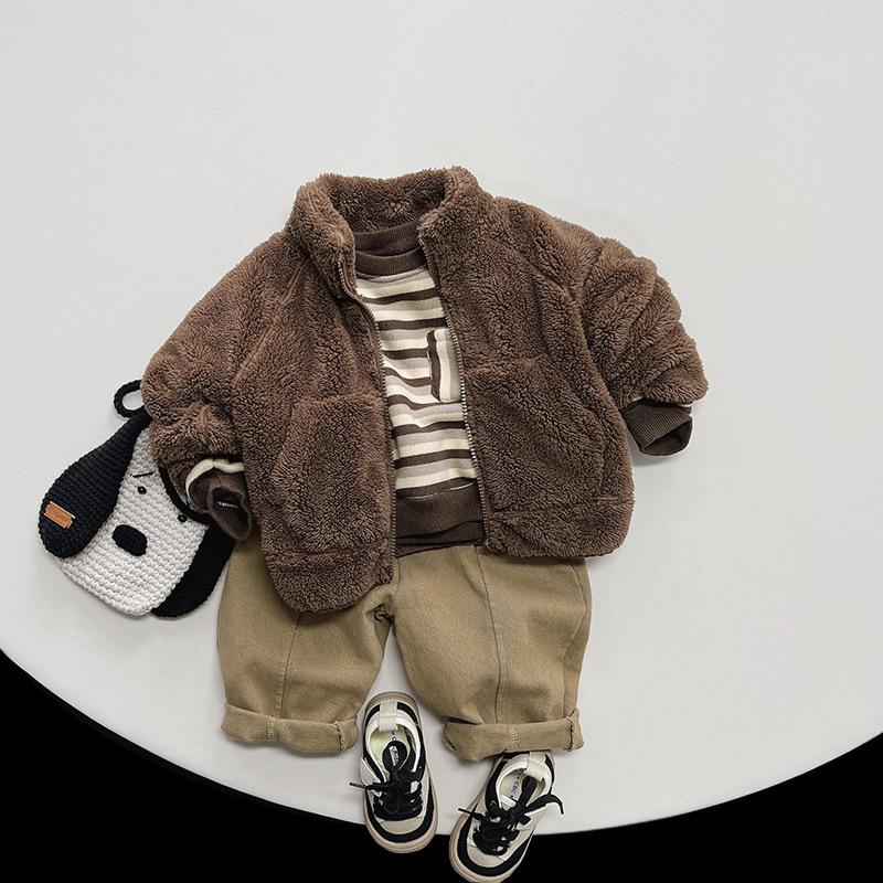 Abrigo de felpa para niños y niñas, invierno 2025, nuevo abrigo ligero para niños, ropa para bebés de estilo coreano Mori, combinable con todo.
