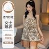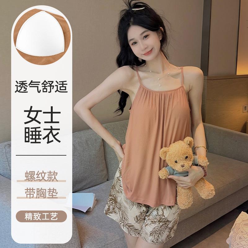 Pijama con almohadilla para el pecho para mujer, de seda fría, con tirantes, ropa de casa, verano, talla grande, chaleco, pantalones cortos florales, conjunto de ropa exterior