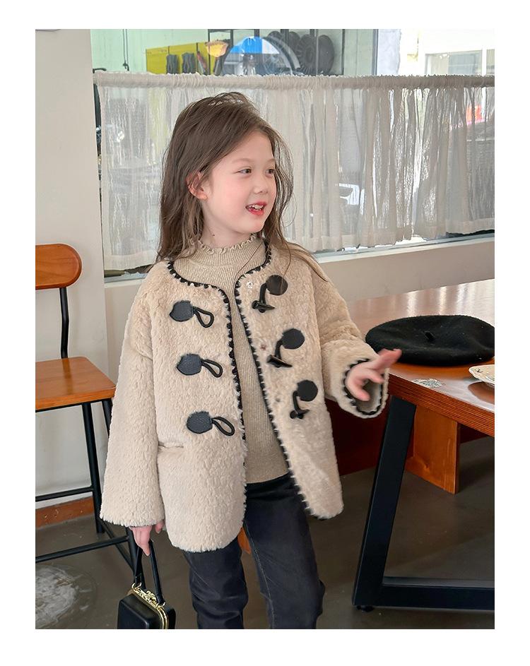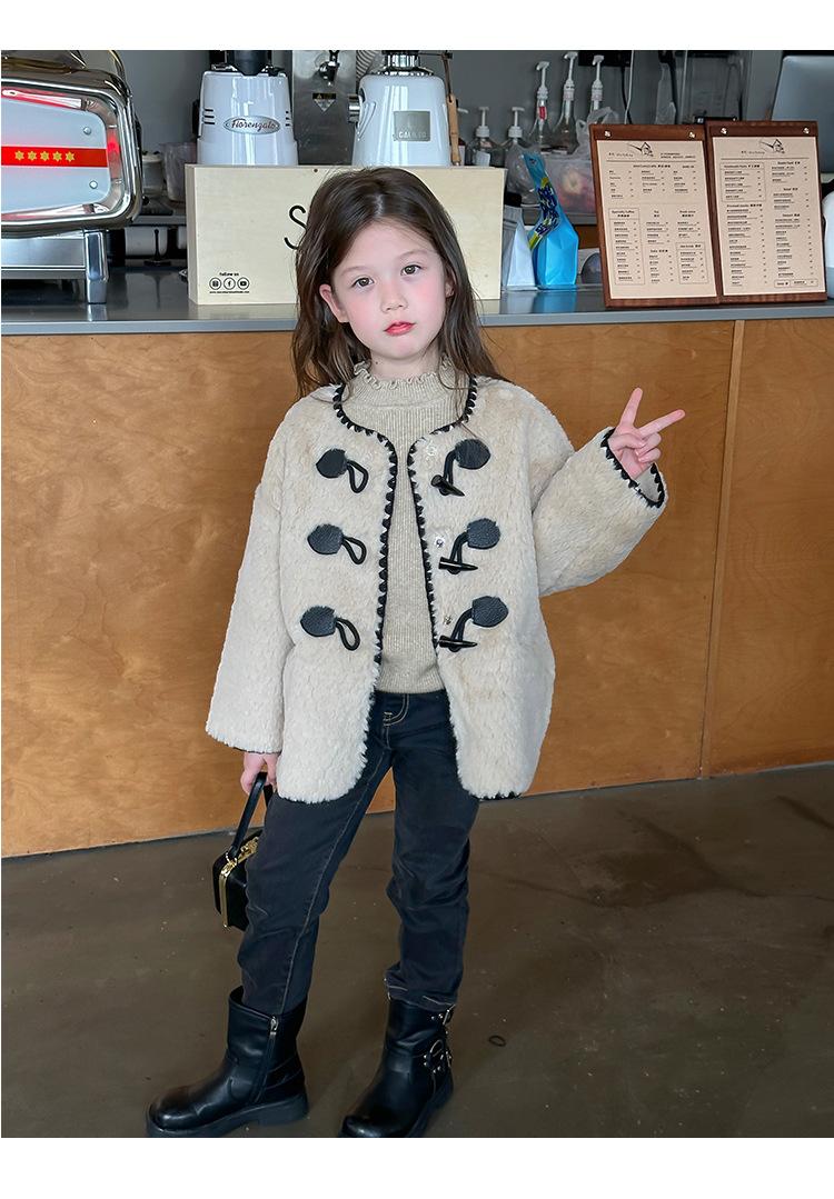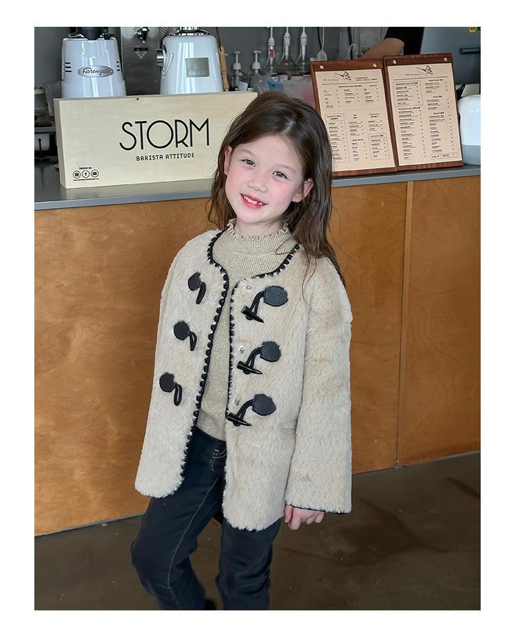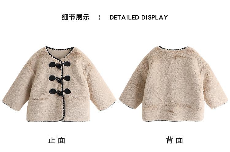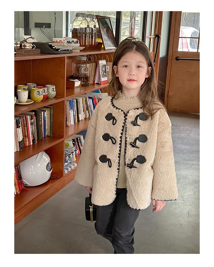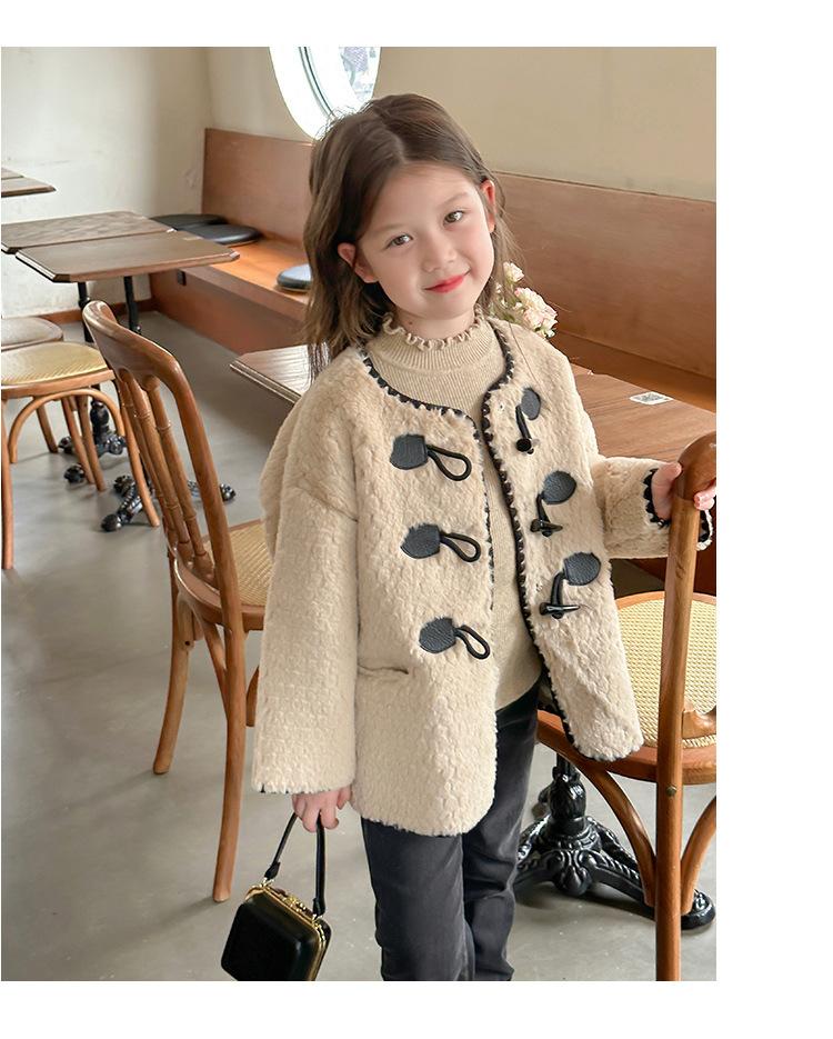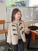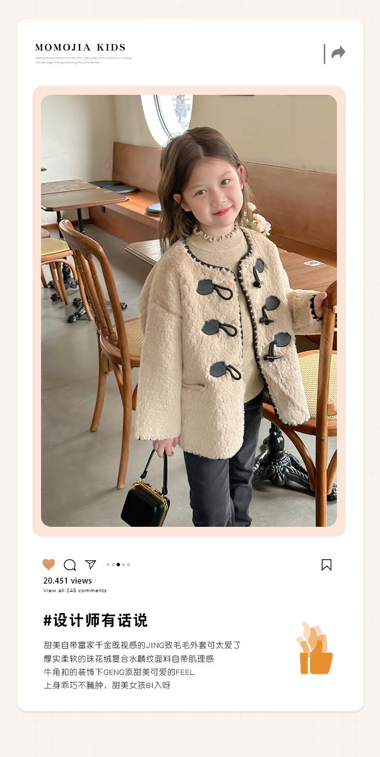 Abrigo de niña Momo, ropa infantil, otoño e invierno 2023, nuevo abrigo de felpa estilo Chanel para niños, hebilla de cuerno de cordero de una sola fila