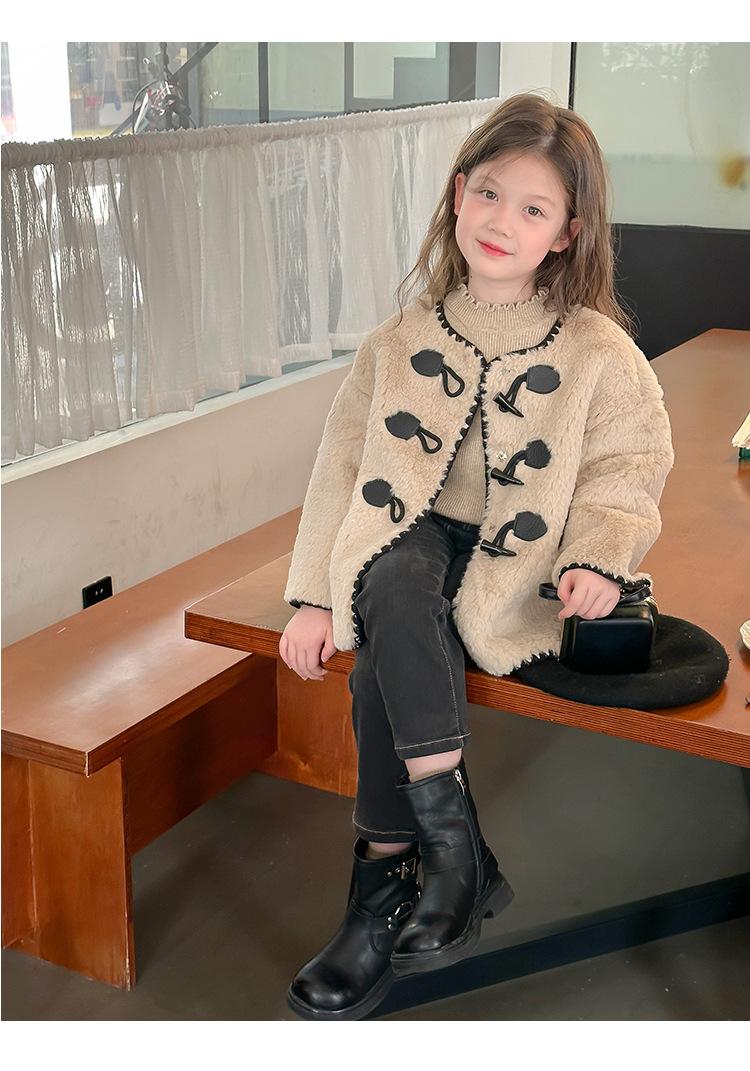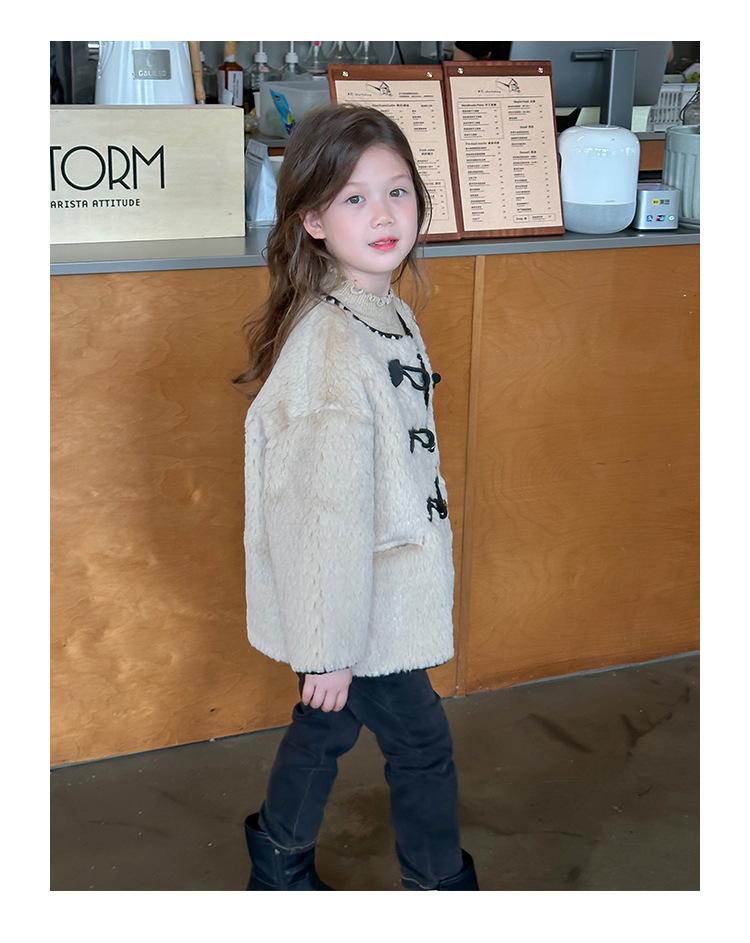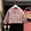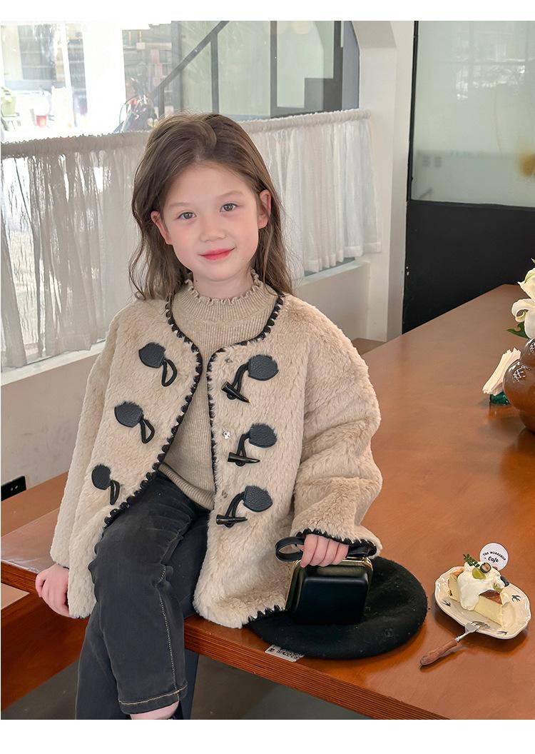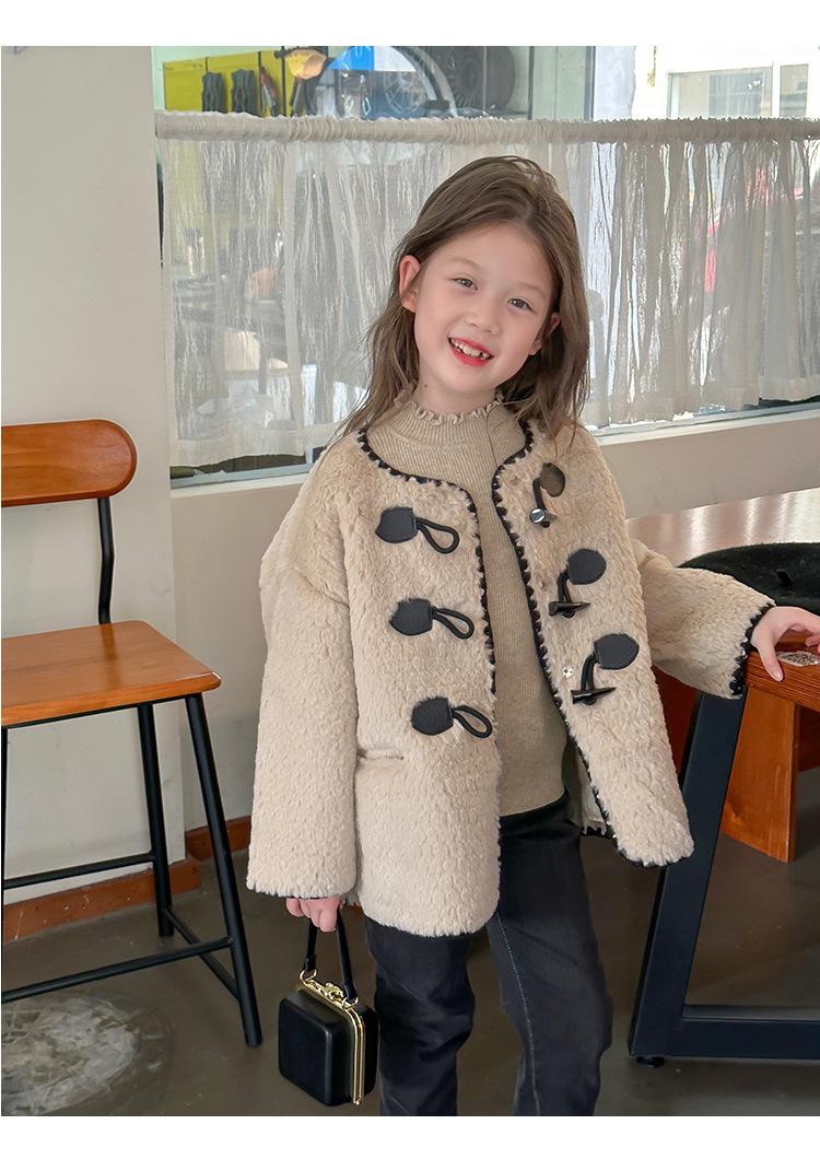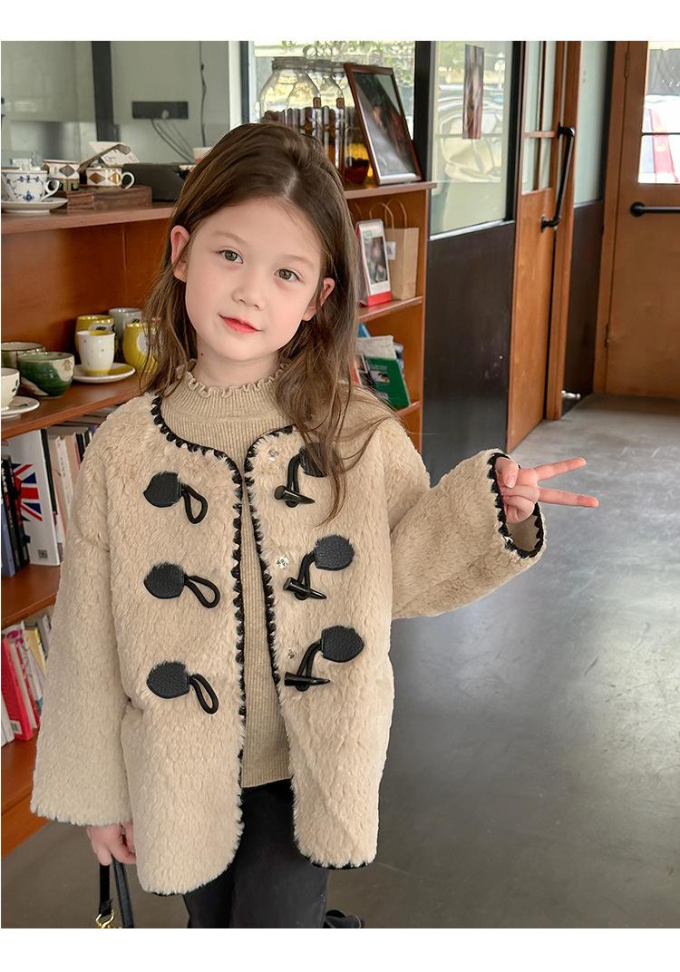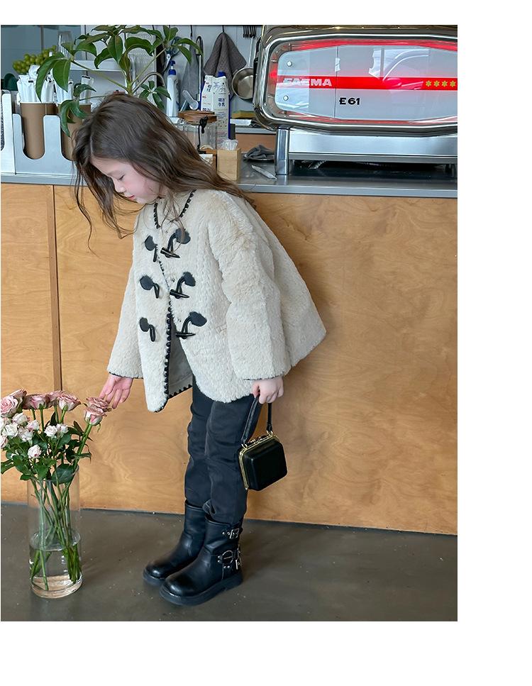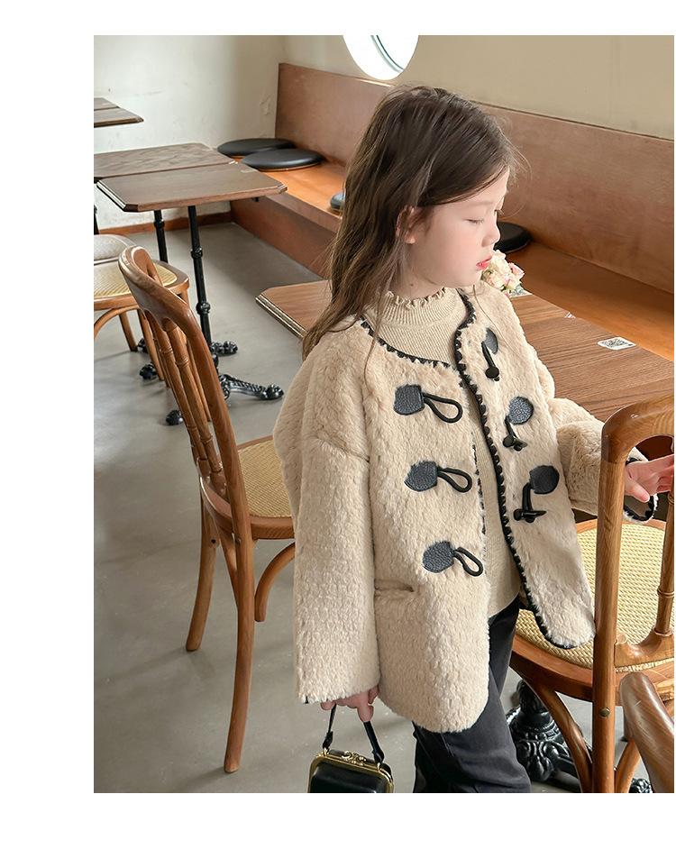 Abrigo de niña Momo, ropa infantil, otoño e invierno 2023, nuevo abrigo de felpa estilo Chanel para niños, hebilla de cuerno de cordero de una sola fila