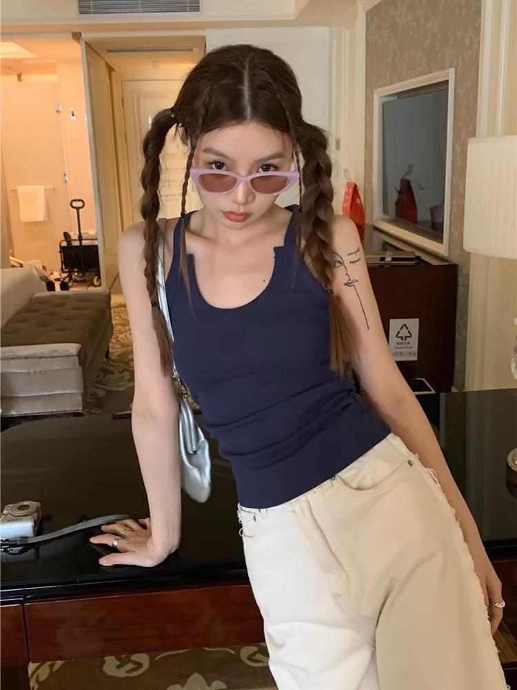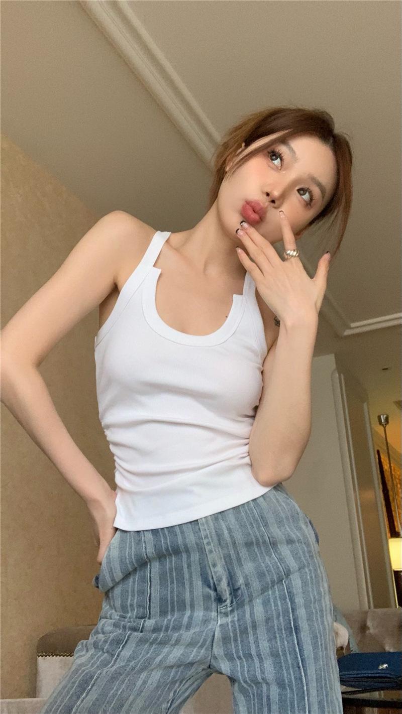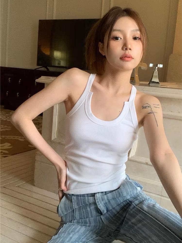 Camisola interior con diseño de sentido del diseño, prenda exterior blanca de verano para mujer, prenda superior adelgazante sin mangas y atractiva a la moda.