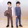 Traje infantil de otoño, nuevo traje a rayas de estilo coreano, conjunto de tres piezas, vestido de presentador para niño, conjunto de vestido de actuación