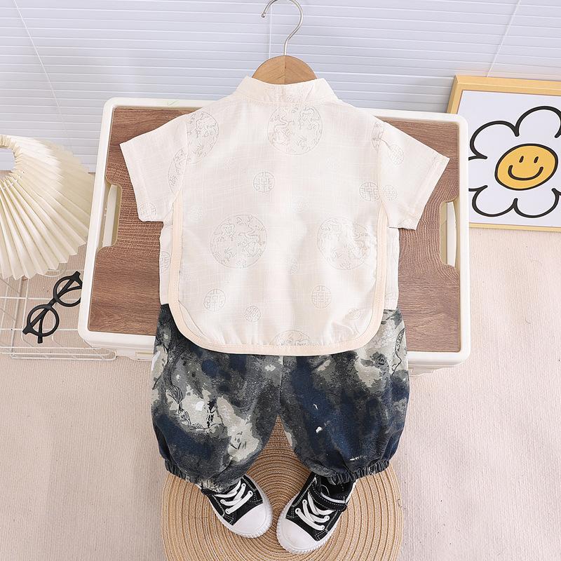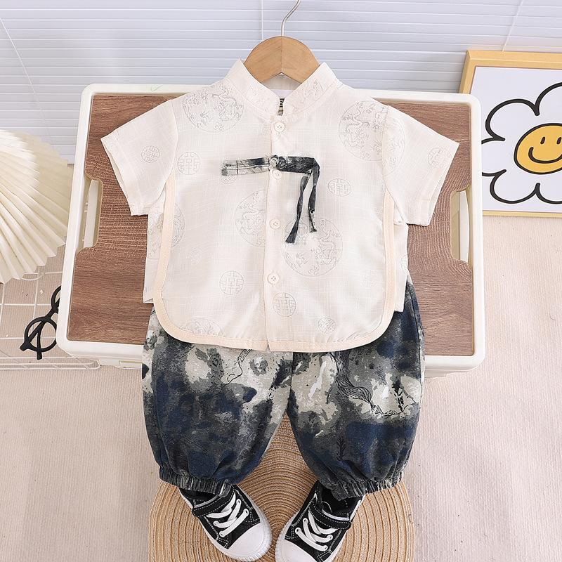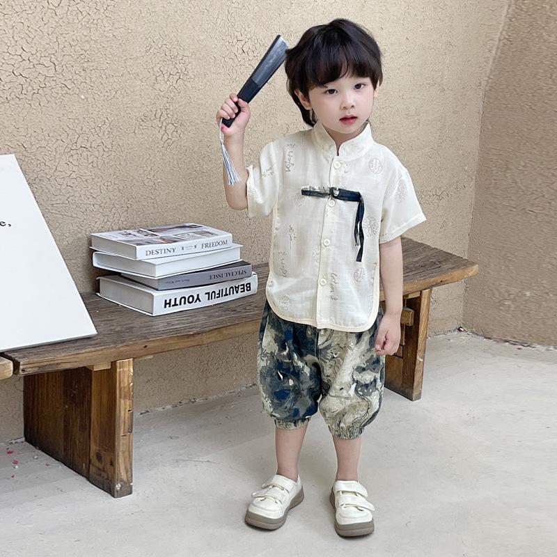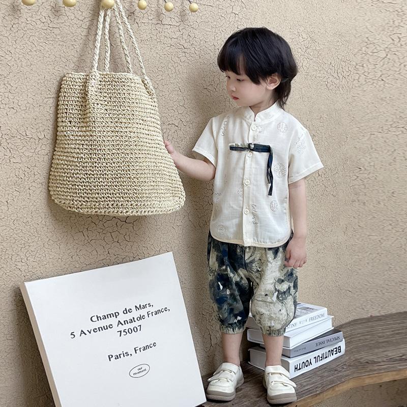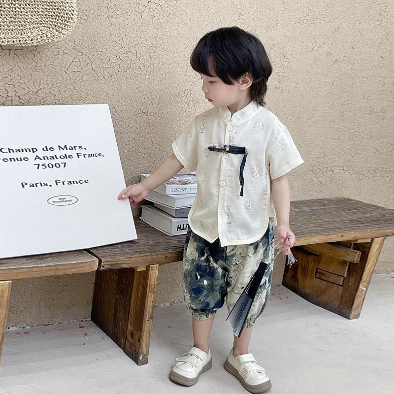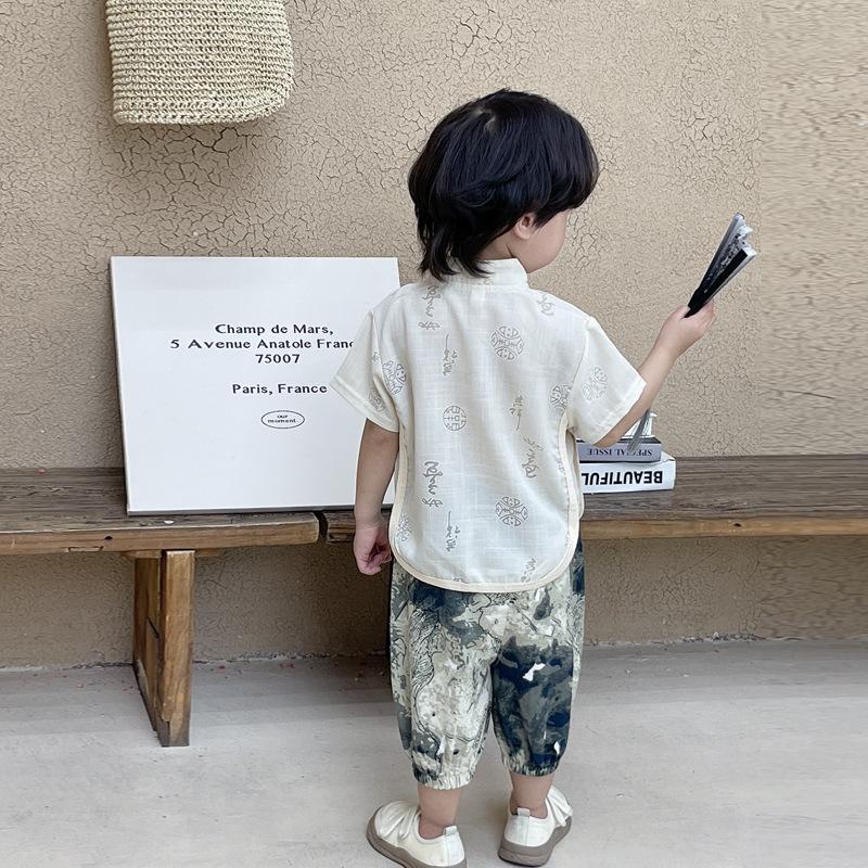 Conjunto de camiseta de manga corta de algodón para niño, verano 2024, nueva ropa china para niños, camisa de moda nacional para verano