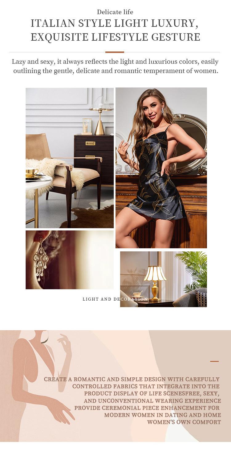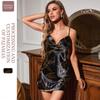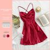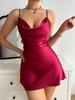 Sexy Camisón Corto sin Espalda para Casa de Verano sin Mangas con Cuello en V Falda Cruzada con Tirantes Vestido Fino de Imitación Seda para Mujer