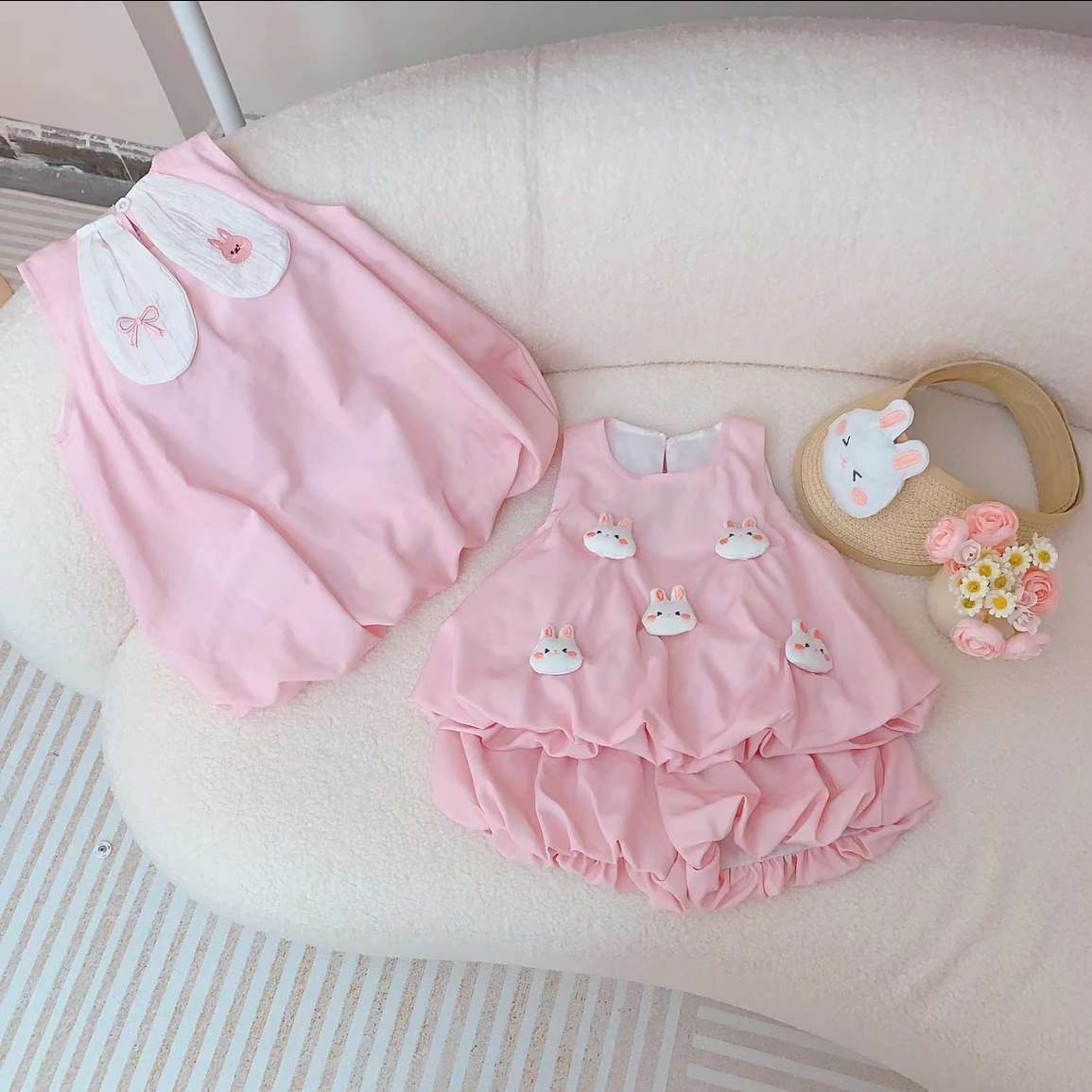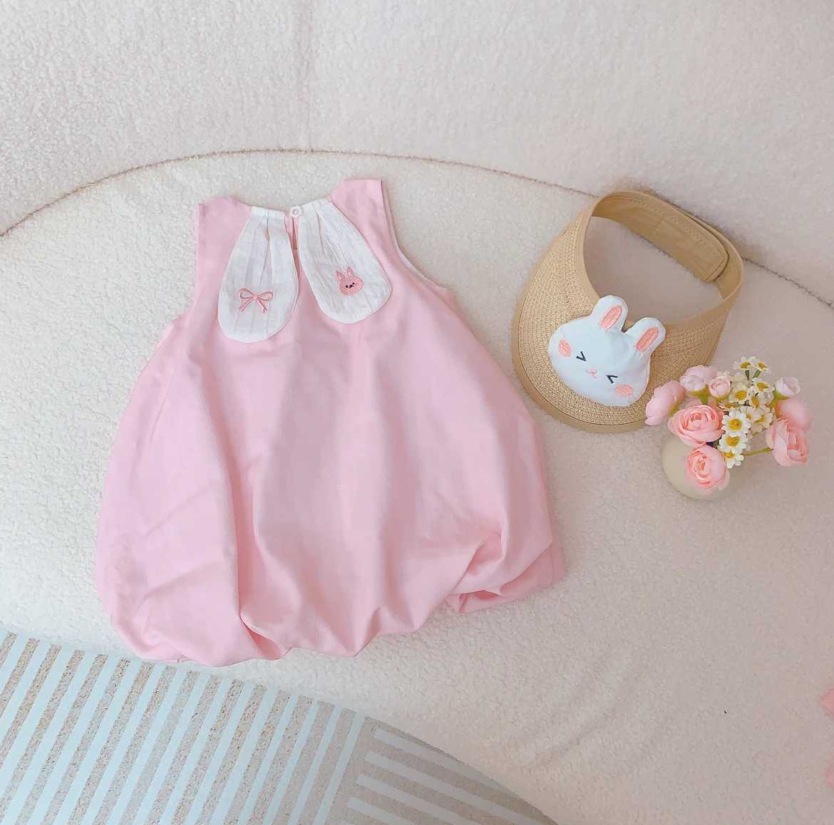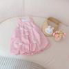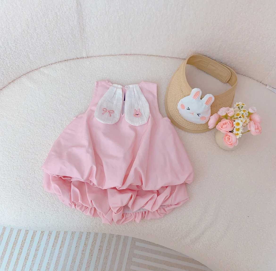 Niñas 2025 Nuevo Estilo de Verano Versátil Rosa Lindo Vestido de Algodón sin Mangas Traje de Falda de Capullo de Flor de Bebé