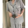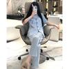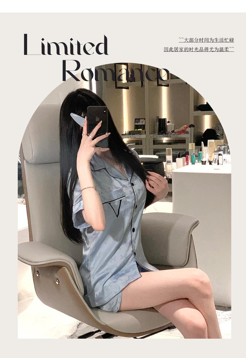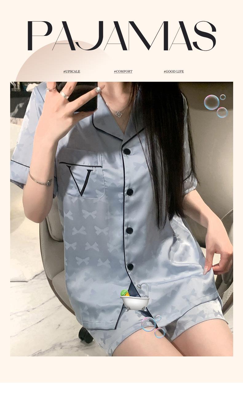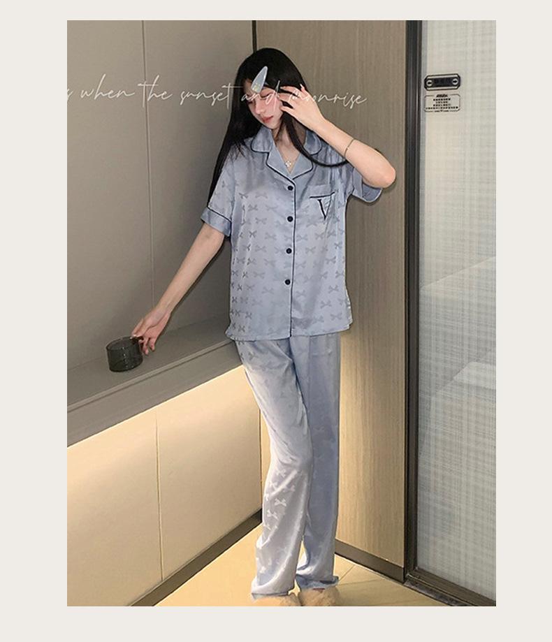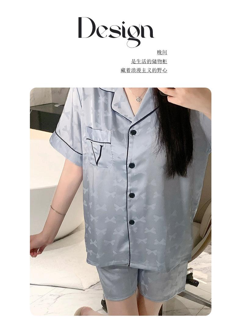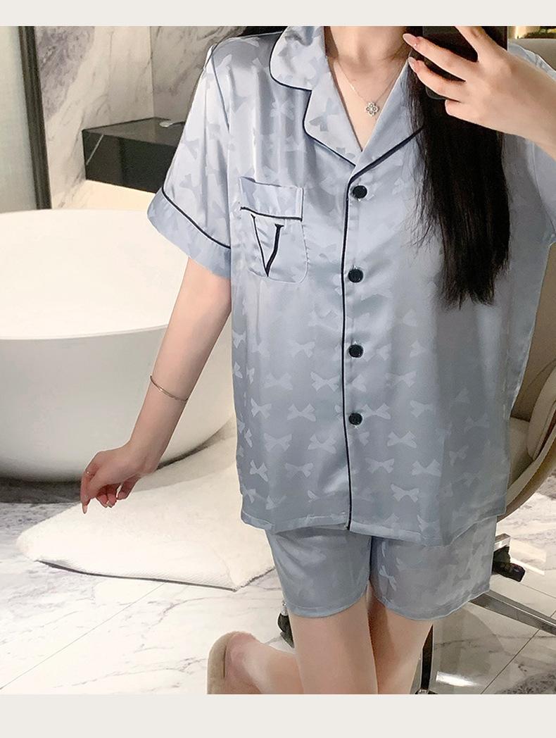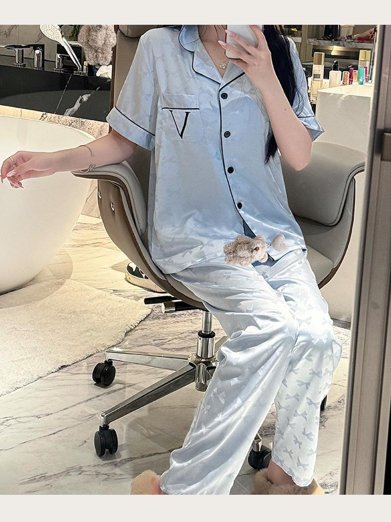 Pijama Coreano de Tres Piezas Estilo Girly de Mariposa para Mujer Primavera y Verano Seda de Hielo Manga Corta Fino Fresco Ropa para el Hogar
