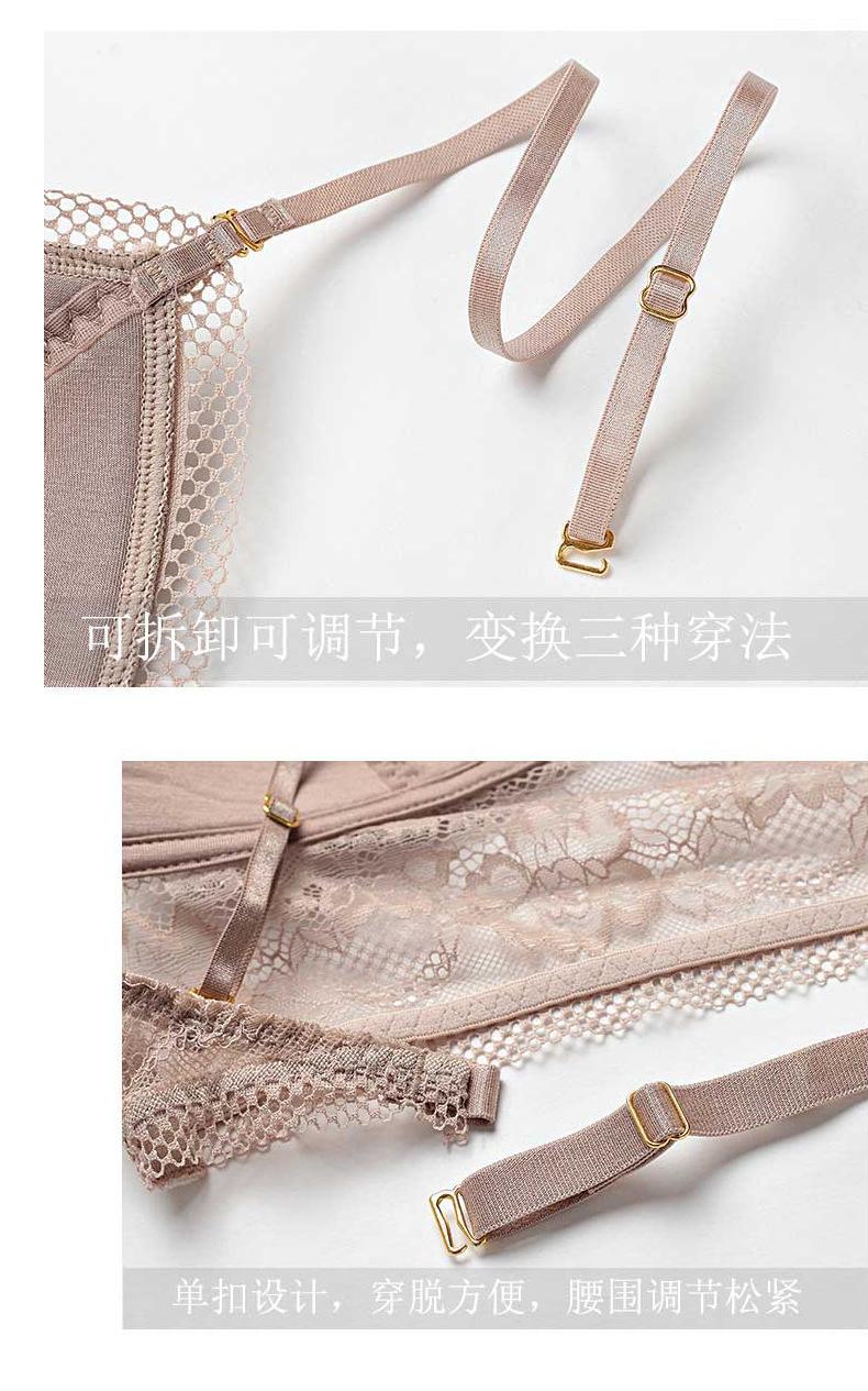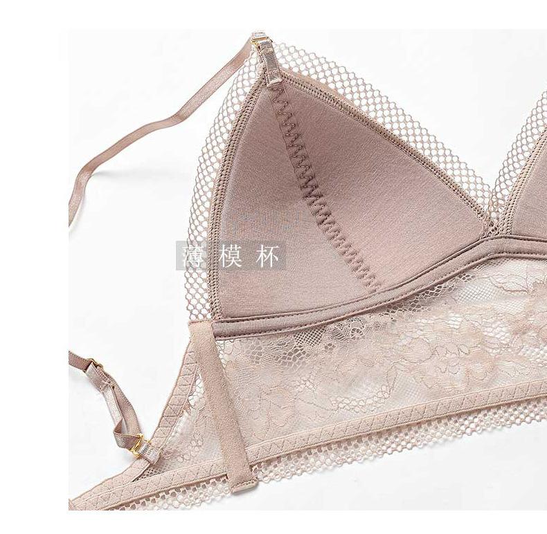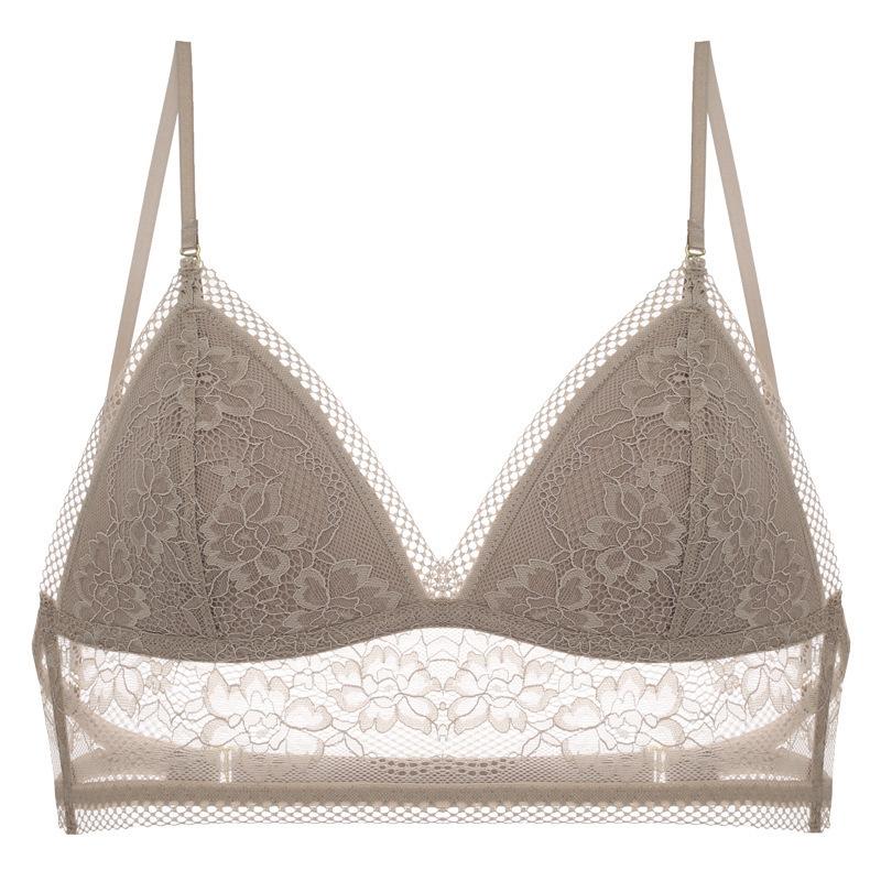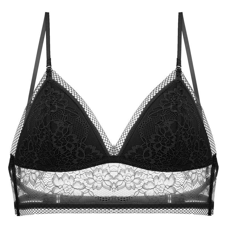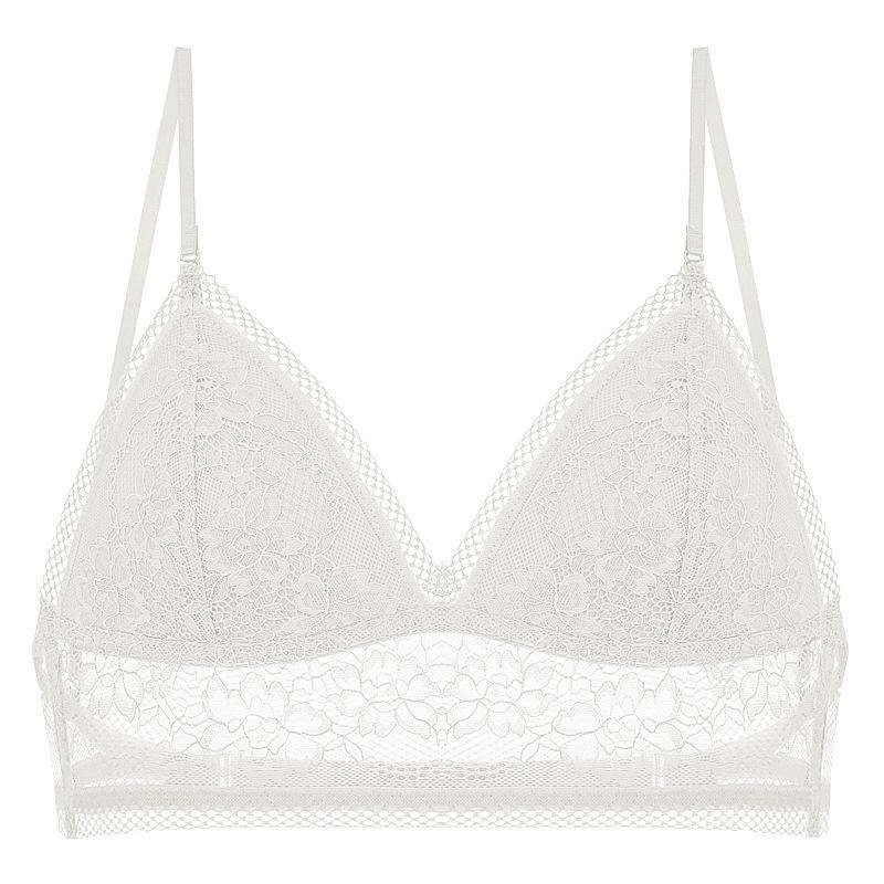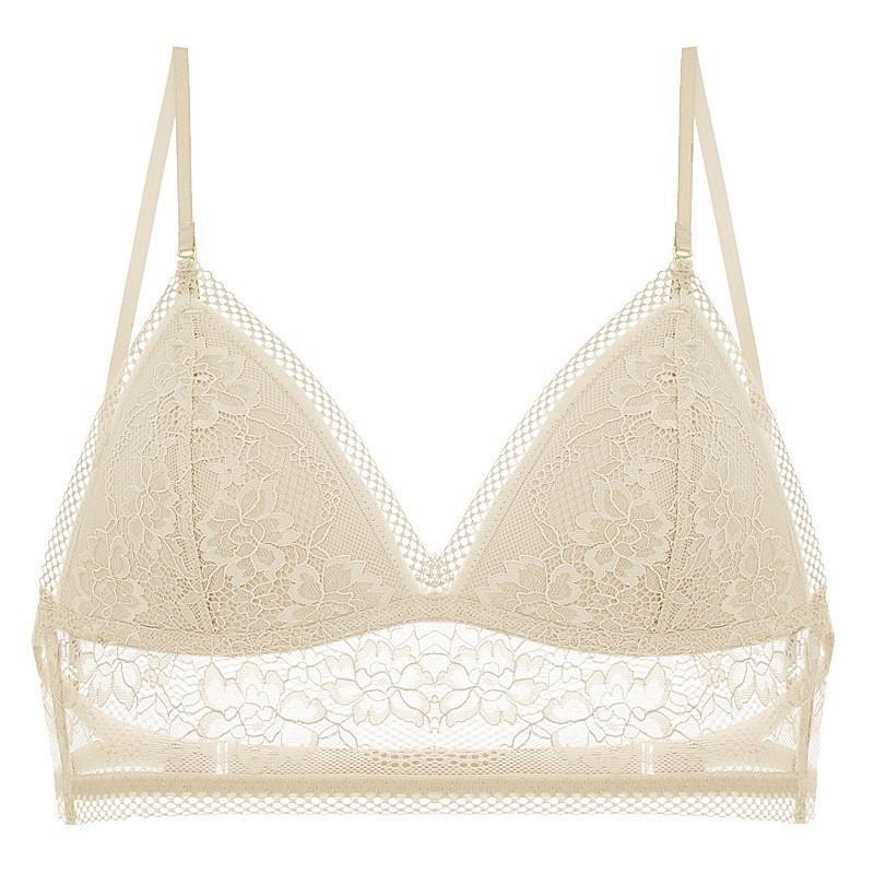 Lencería Sexy de Encaje Estilo Francés, Verano Delgada en Forma de U Grande sin Espalda Hermoso Sujetador de Espalda, Sujetador Inalámbrico Copa Triángulo