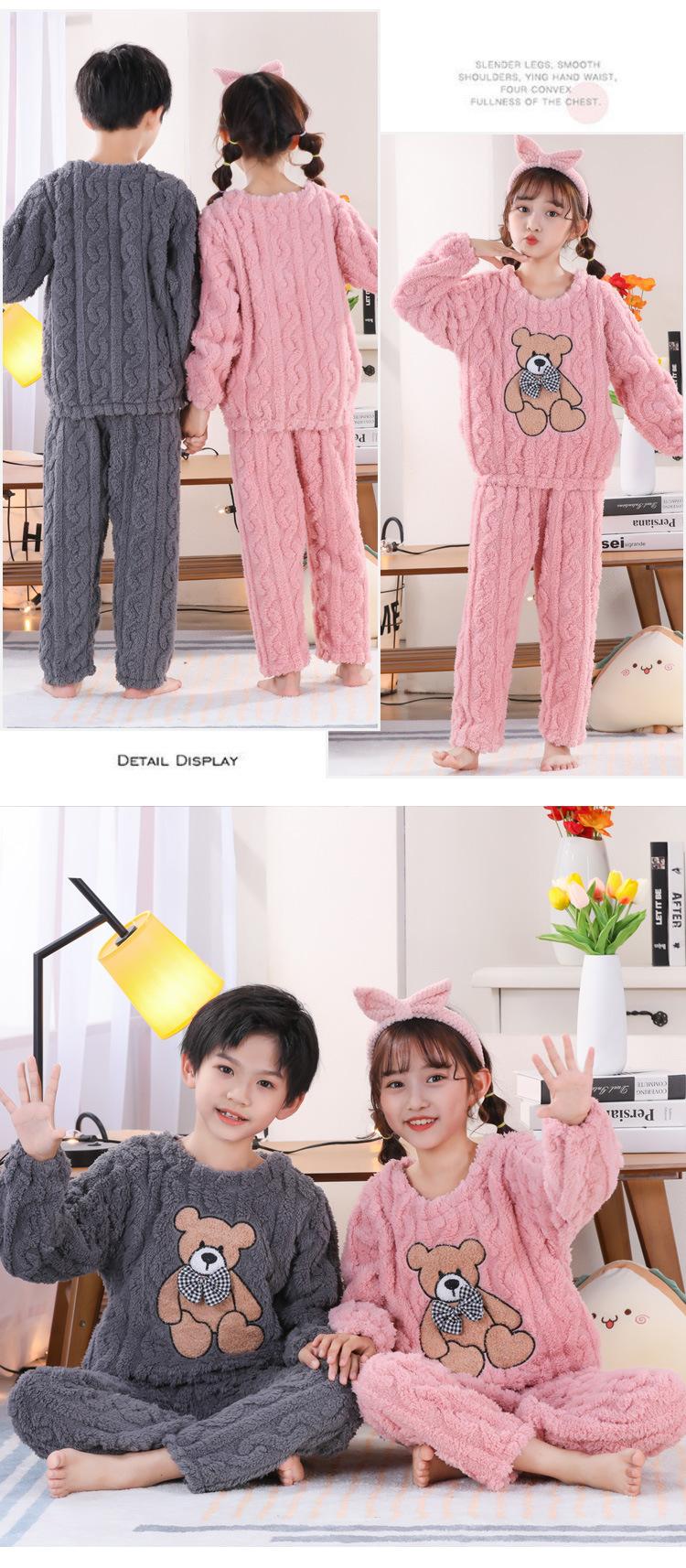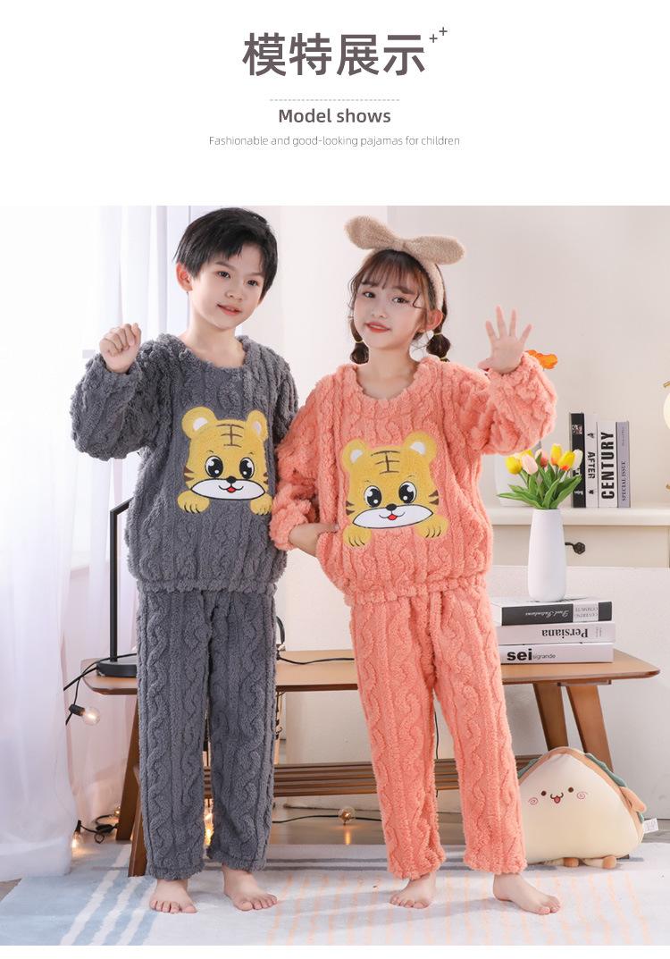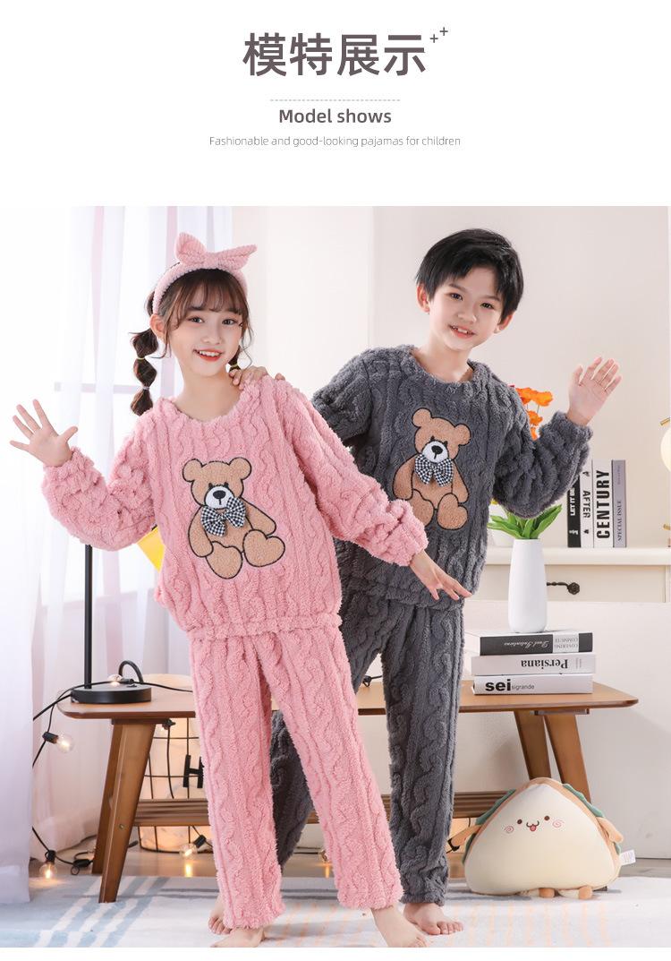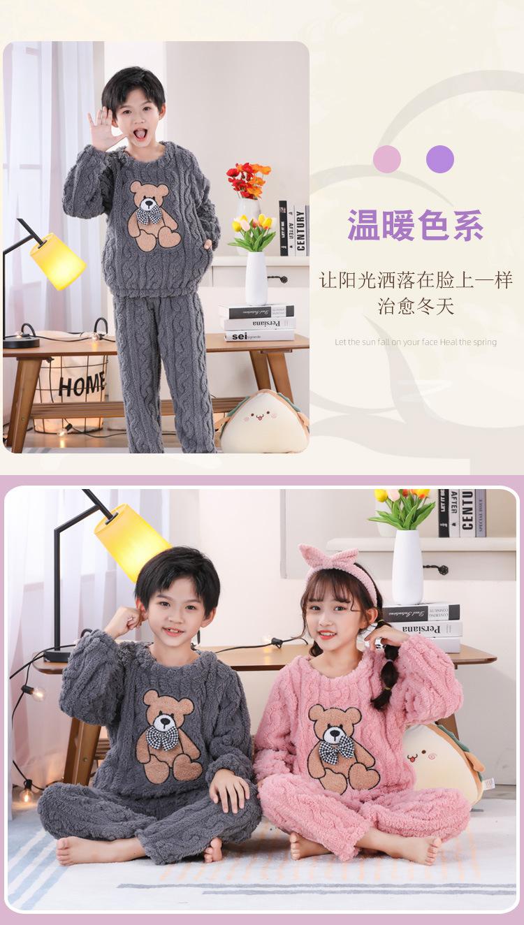 Pijama de Invierno para Niños Jacquard Franela Jersey Lindo Dibujo Animado Engrosado Forro Polar Coral Cálido Ropa de Casa para Niños y Niñas