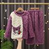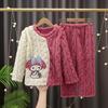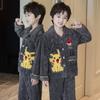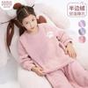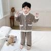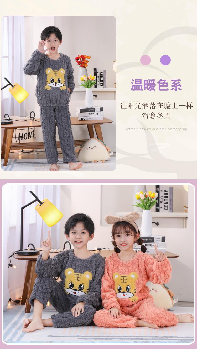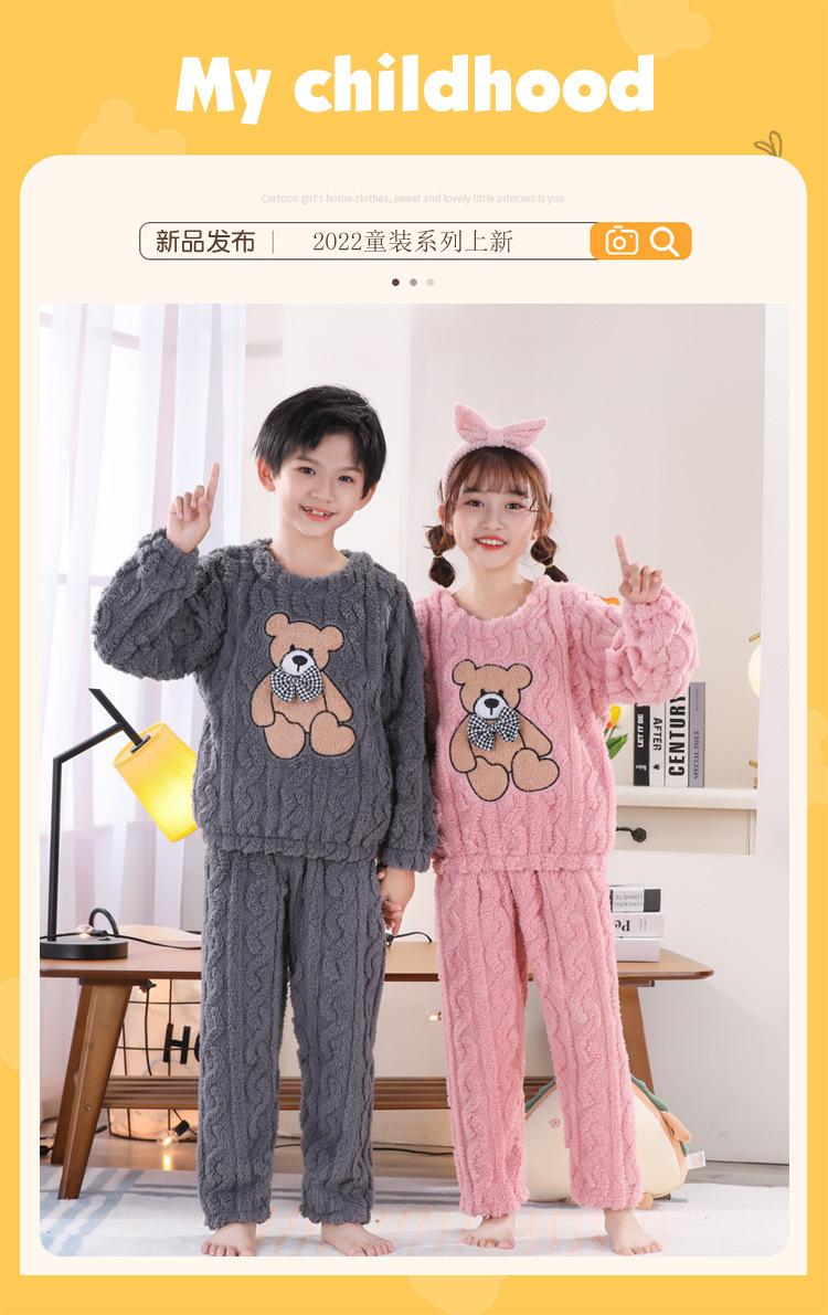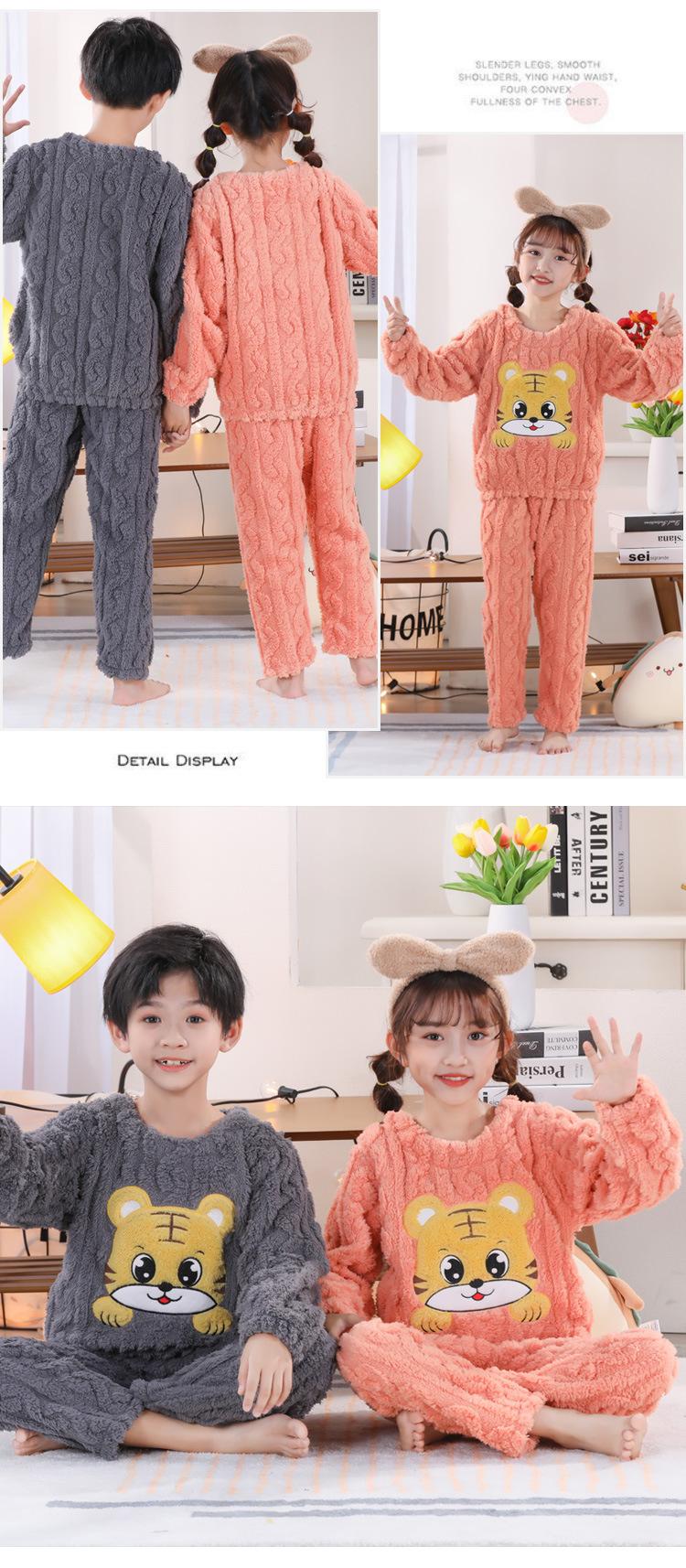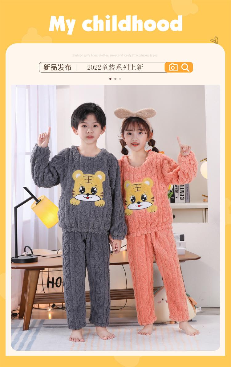 Pijama de Invierno para Niños Jacquard Franela Jersey Lindo Dibujo Animado Engrosado Forro Polar Coral Cálido Ropa de Casa para Niños y Niñas