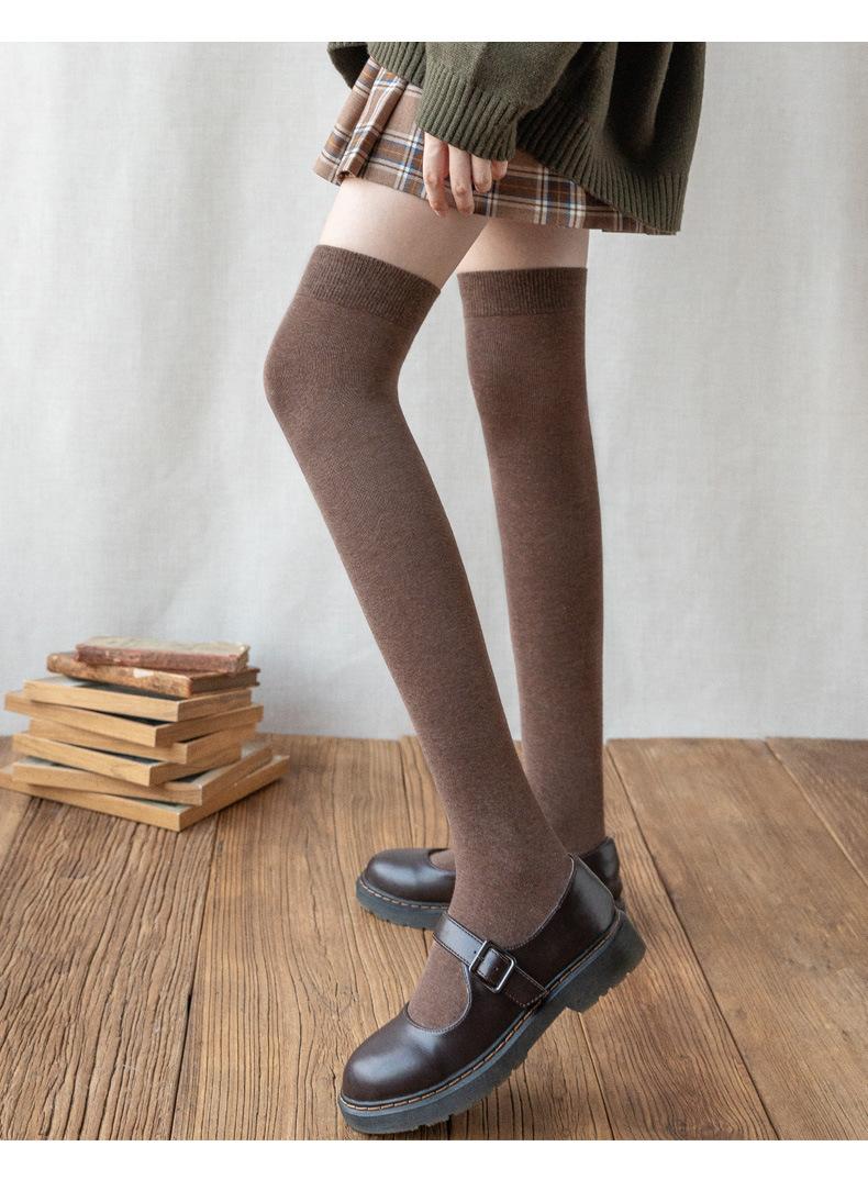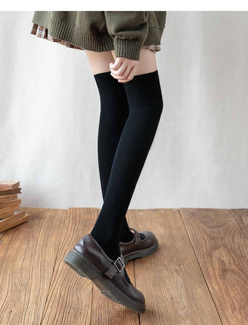 Calcetines de Algodón Primavera y Otoño Calcetines de Algodón Puro hasta la Rodilla para Mujer Calcetines de Presión Tipo Bota para Mujer Medias Negras Calcetines de Pantorrilla Jk