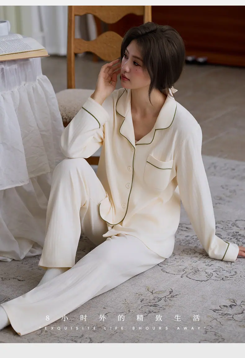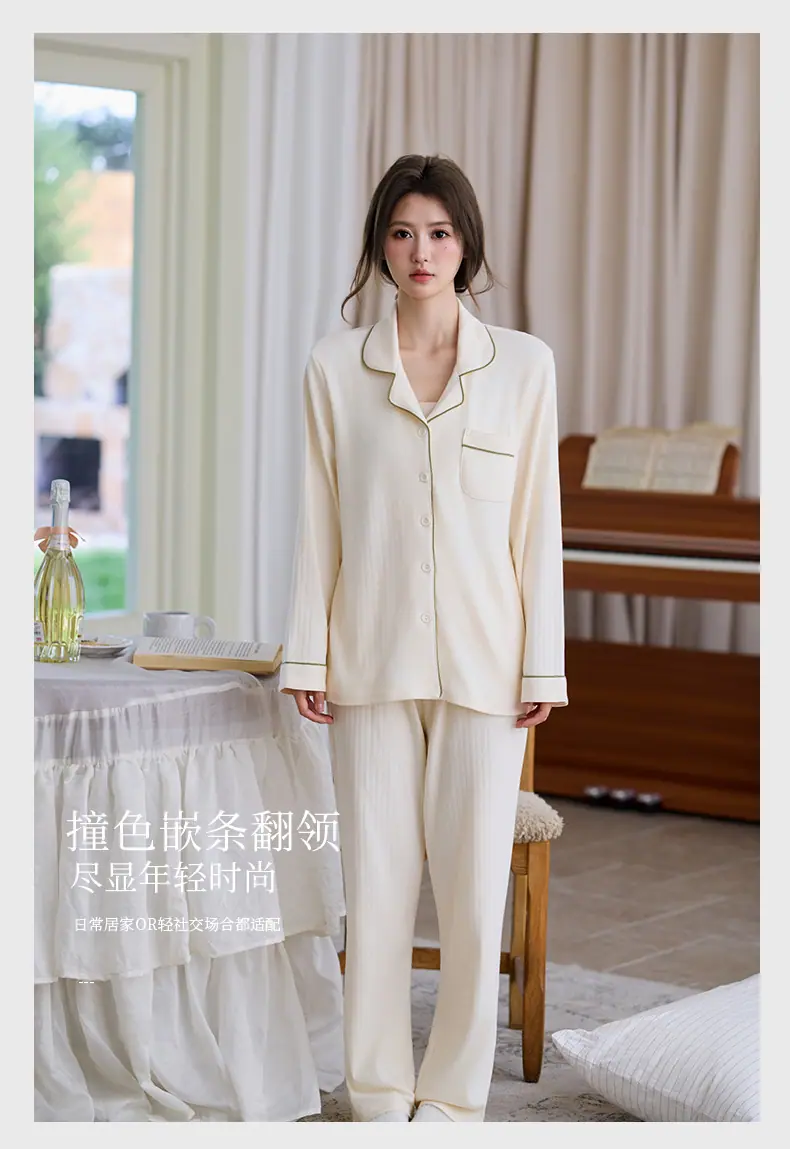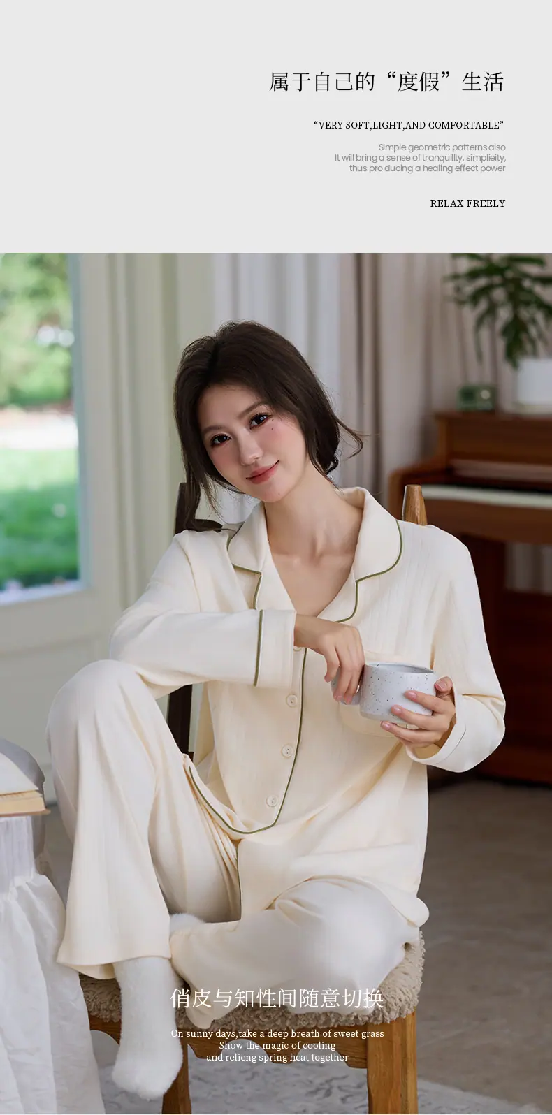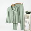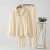 Pijama de manga larga de punto de algodón puro sencillo para mujer, cárdigan informal con solapa, ropa de abrigo, traje para el hogar, primavera y otoño