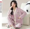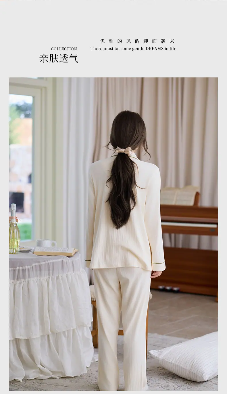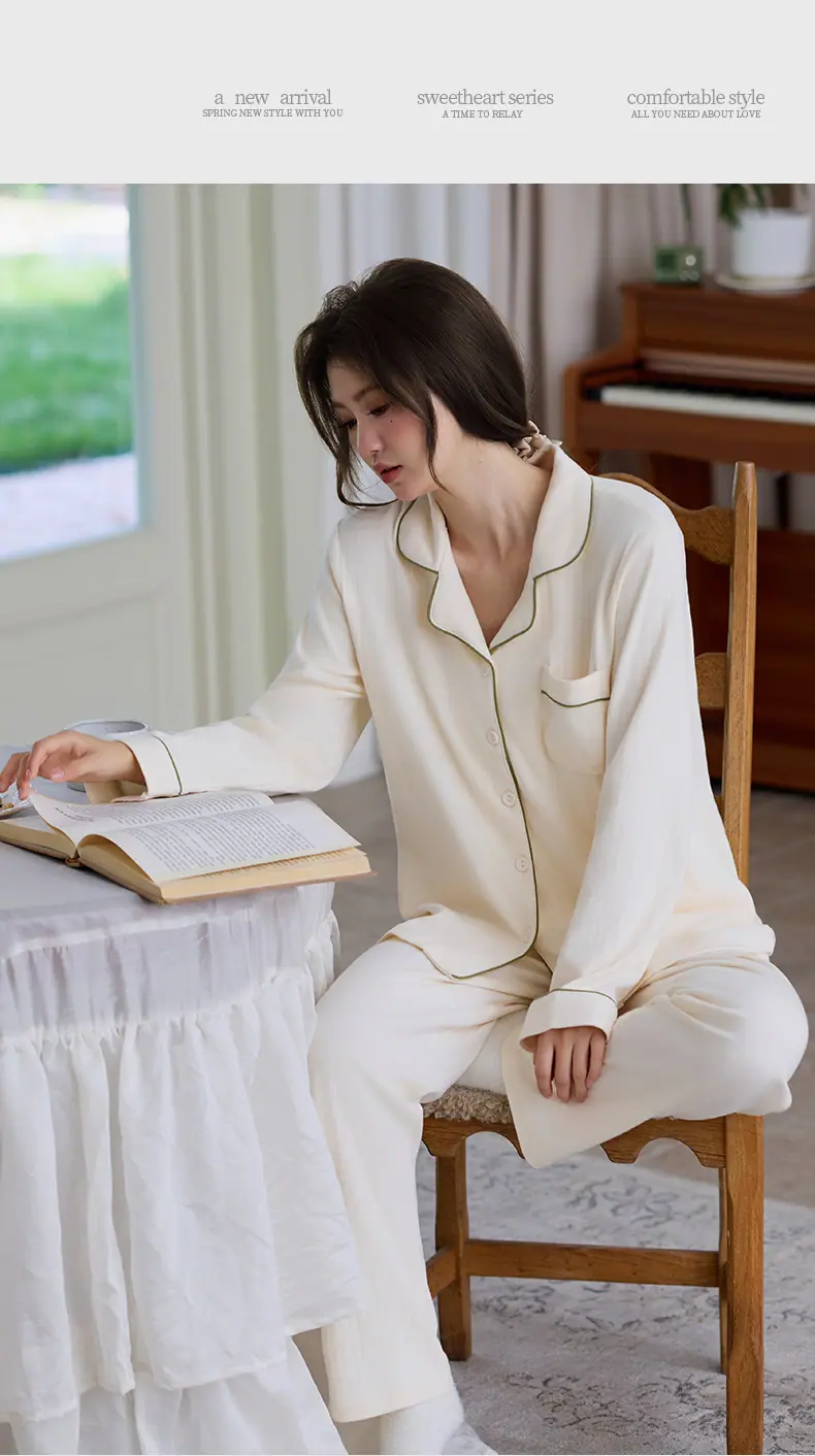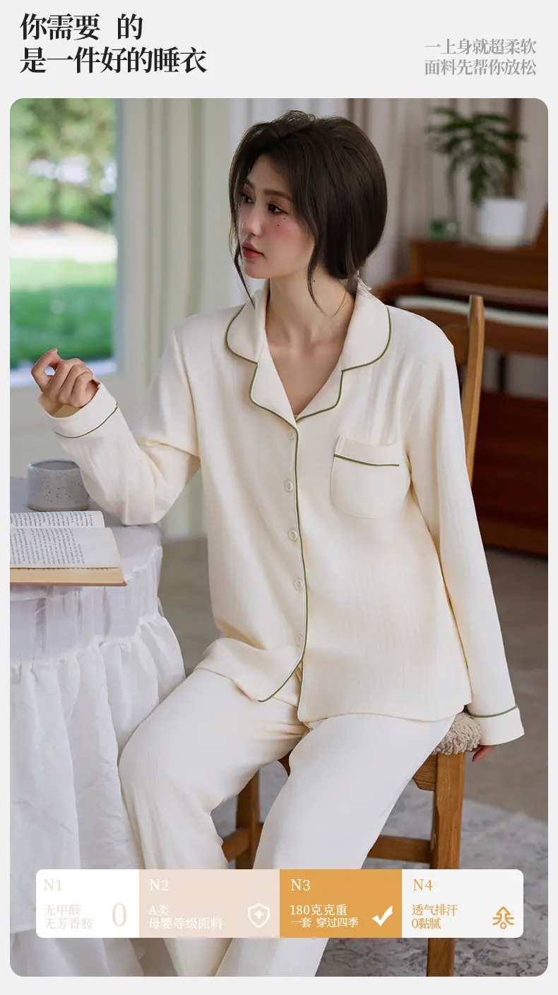 Pijama de manga larga de punto de algodón puro sencillo para mujer, cárdigan informal con solapa, ropa de abrigo, traje para el hogar, primavera y otoño