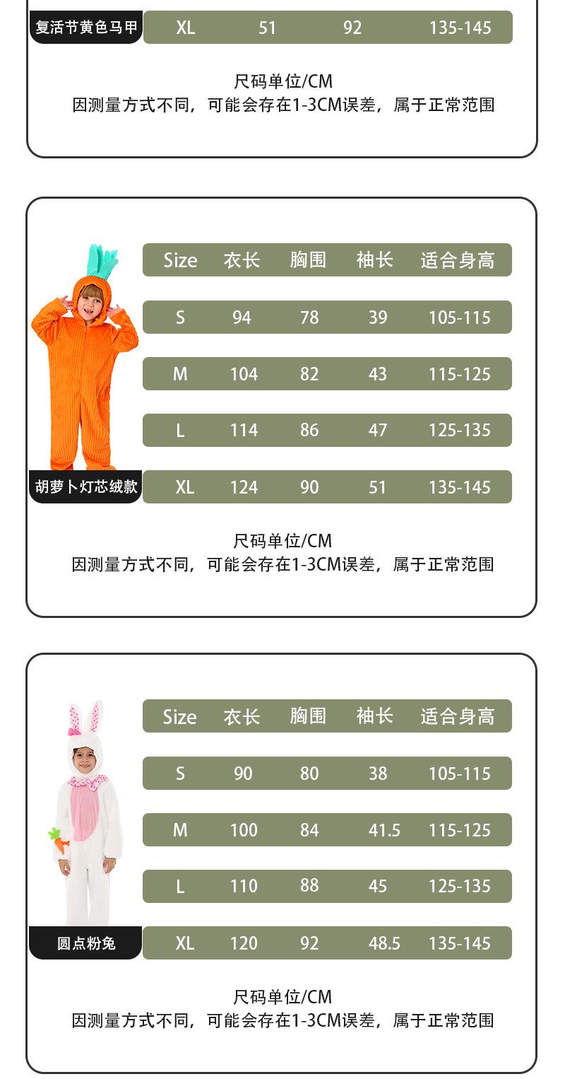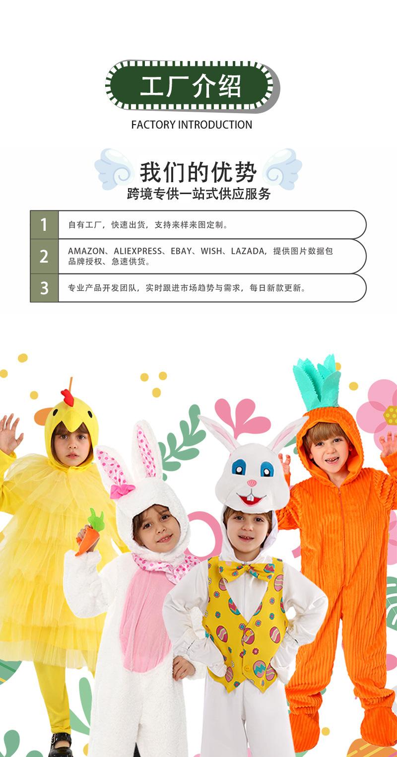 ¿Todavía te preocupa elegir qué estilo de ropa para Pascua? La Pascua es uno de los festivales más importantes del calendario cristiano, y también uno de los festivales más difíciles para elegir ropa. Porque la Pascua no solo significa renacimiento religioso, sino que también es una señal de que la primavera está llegando, y pronto experimentaremos la naturaleza, el renacimiento (¡y conseguiremos chocolate!). Este disfraz de conejito se adapta al estilo clásico de Pascua, combinado con un traje de chaleco vivo y brillante, y también hay un disfraz de huevo de Pascua, un disfraz de súper girasol, que marca el nuevo nacimiento. Con tantos estilos para elegir este año, viste rápidamente a tu hijo con un disfraz de Pascua extravagante para celebrar la primavera~