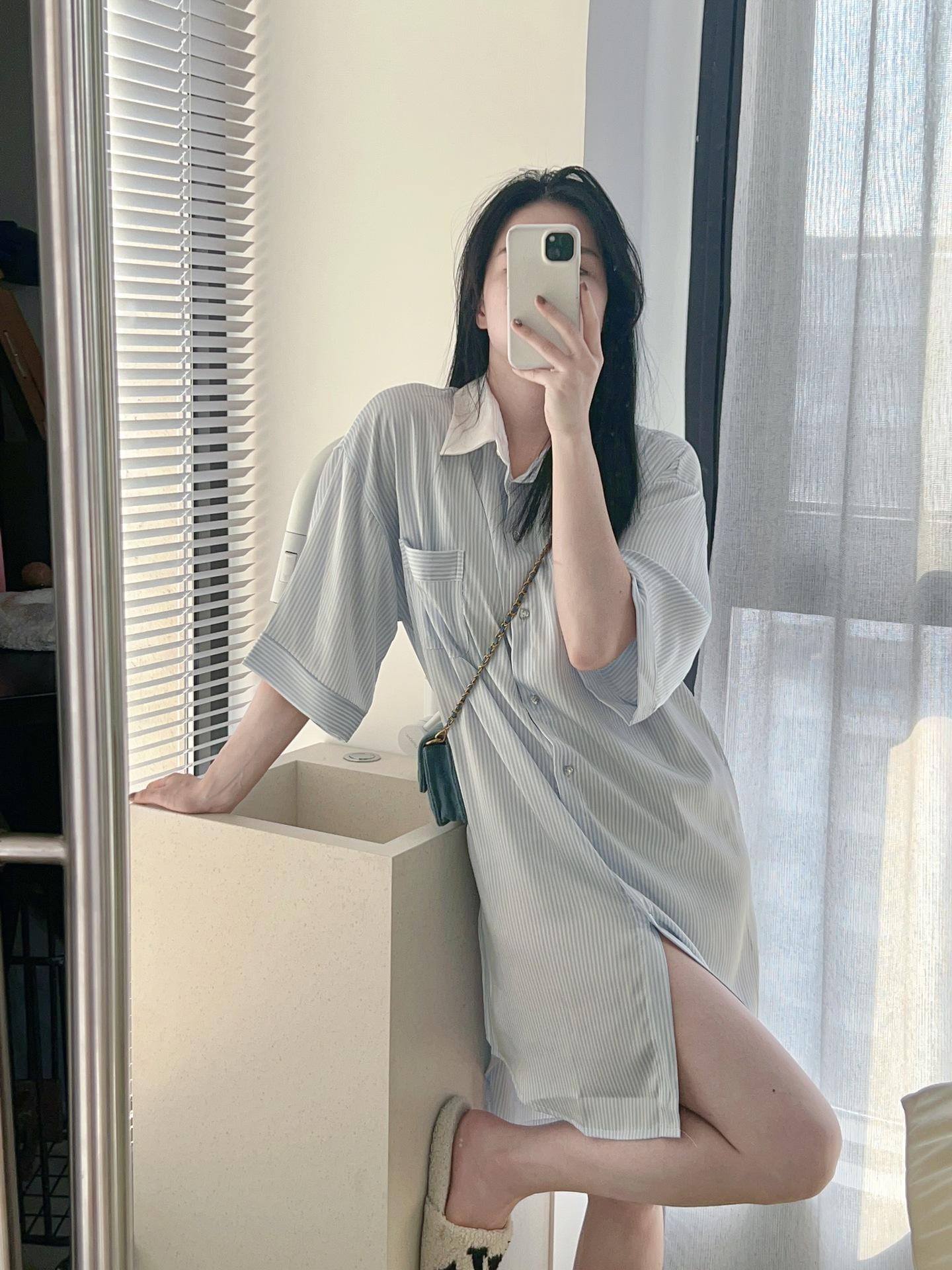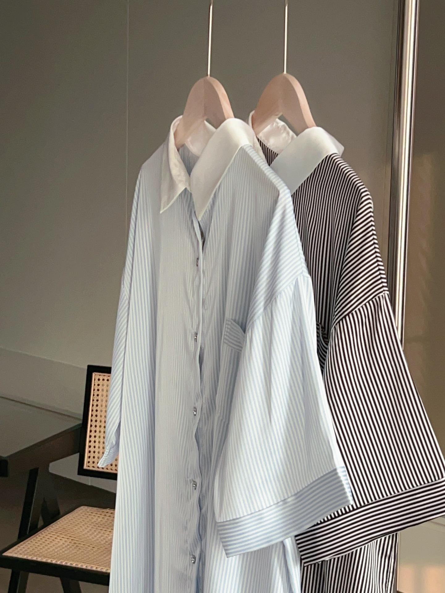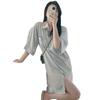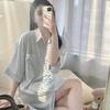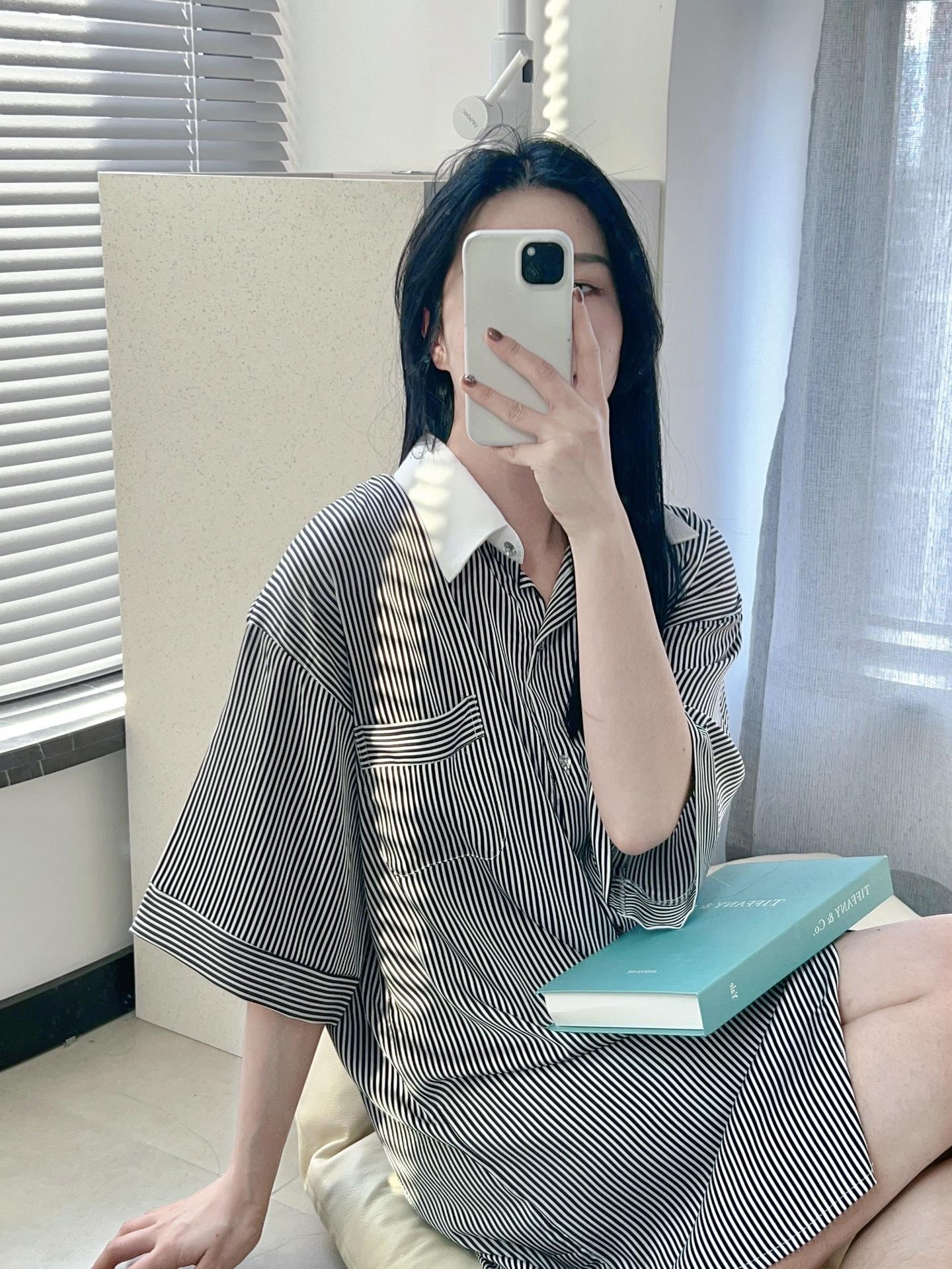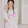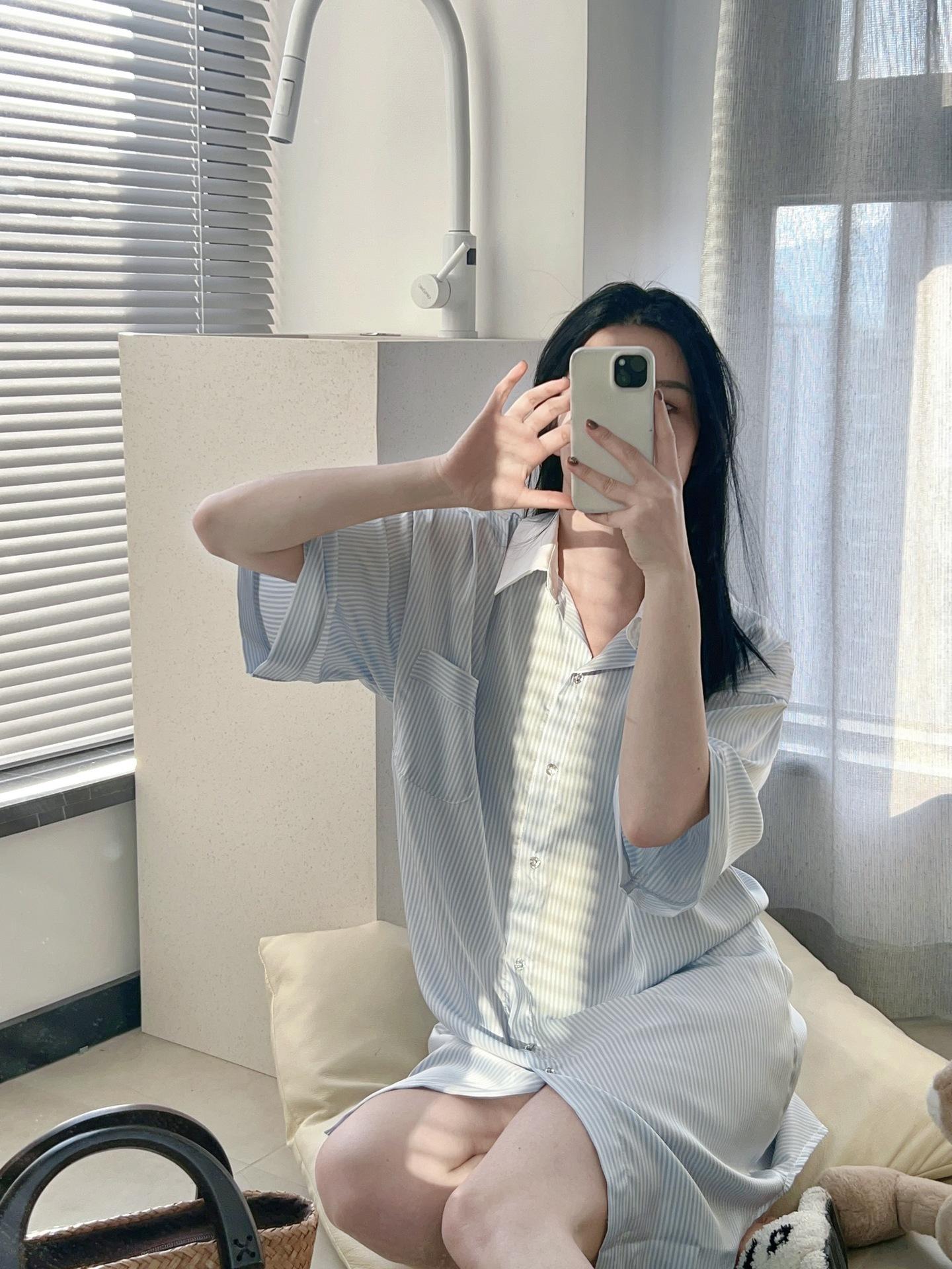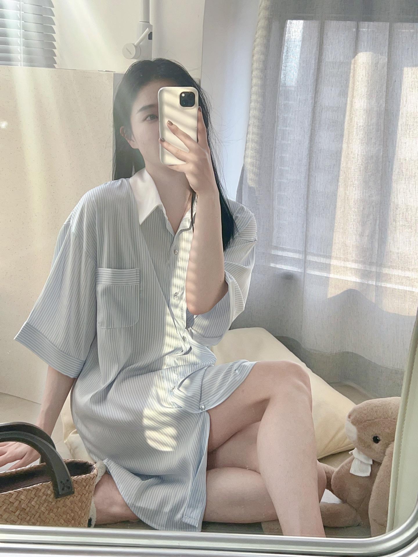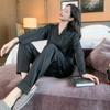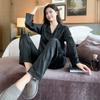 Pijama de seda helada de manga larga con rayas sueltas de alta gama para mujer, traje informal para el hogar de primavera y otoño, venta al por mayor