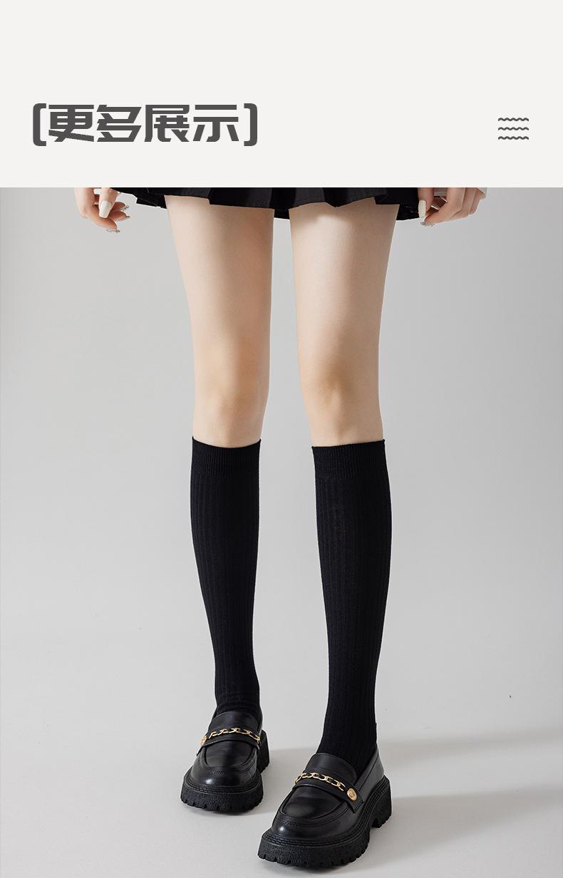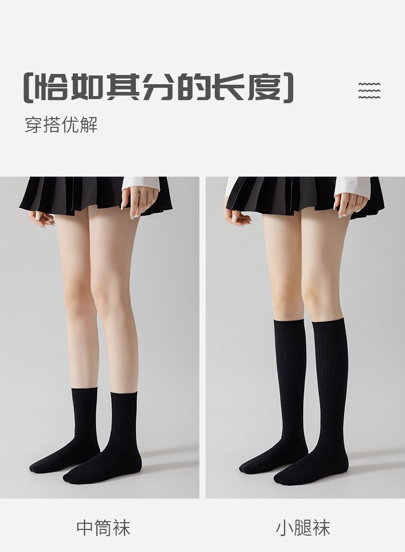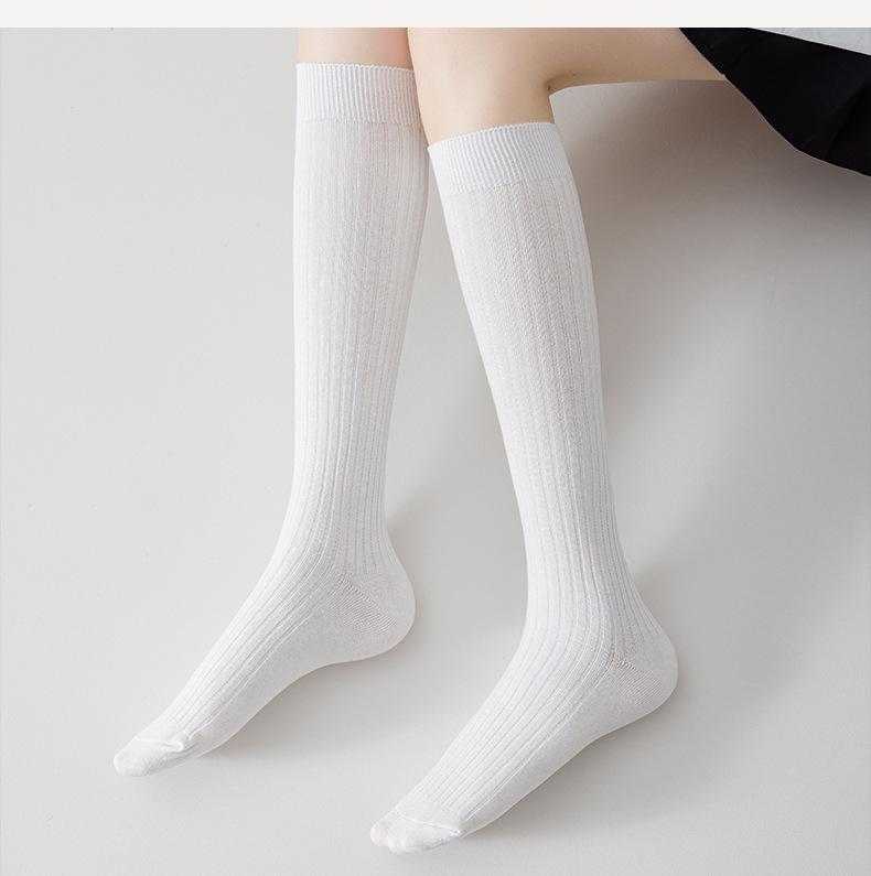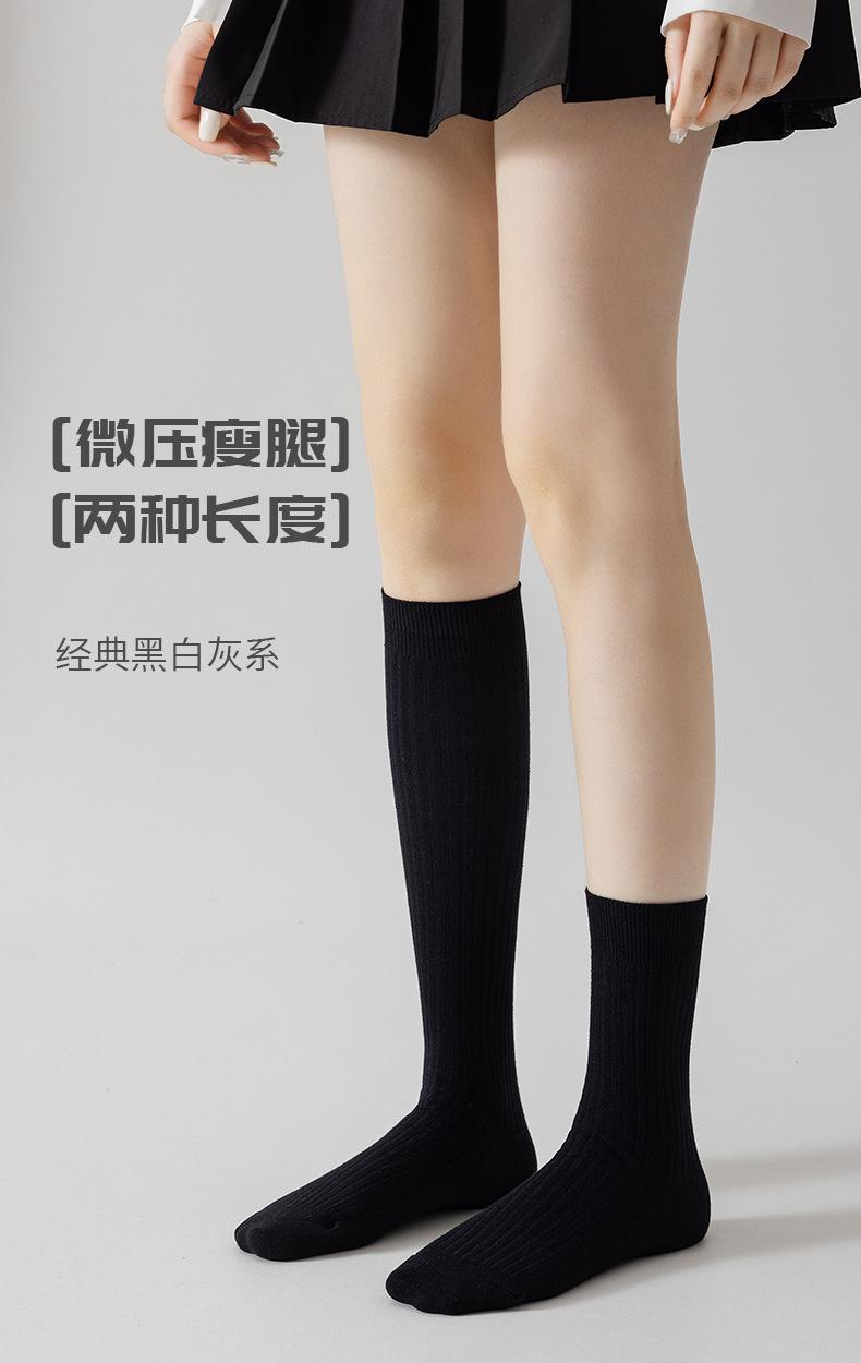 Calcetines de punto doble para mujer, calcetines negros, blancos y grises hasta la mitad de la pantorrilla, calcetines anchos de rayas de color liso jk, calcetines de primavera y otoño y hasta la rodilla que no se caen del tubo.