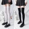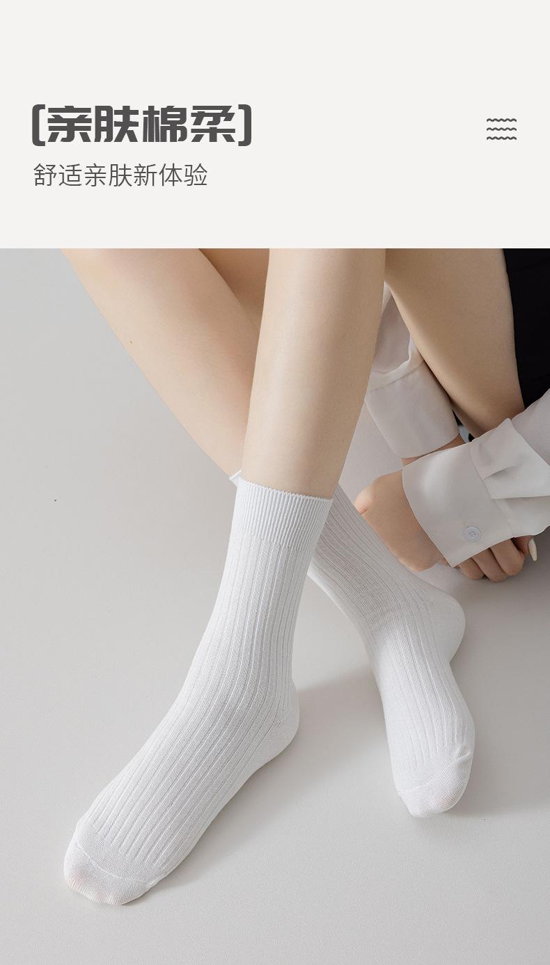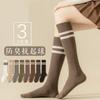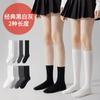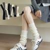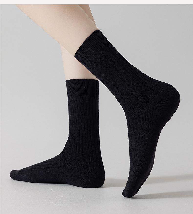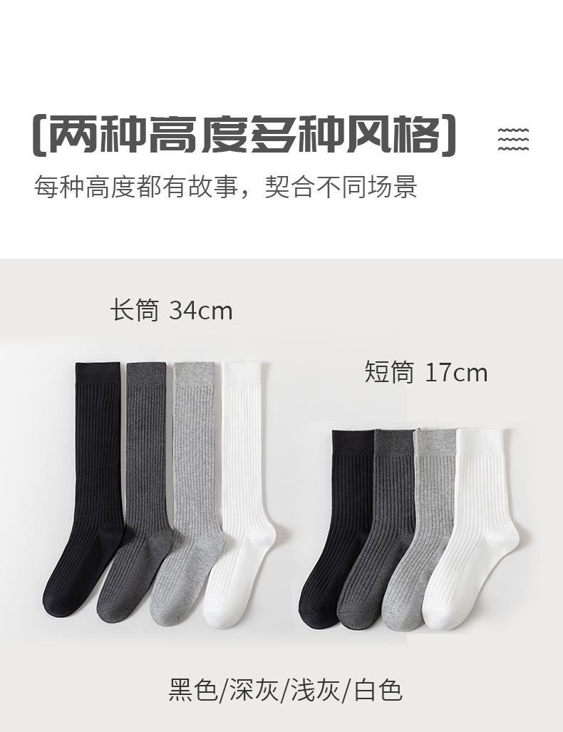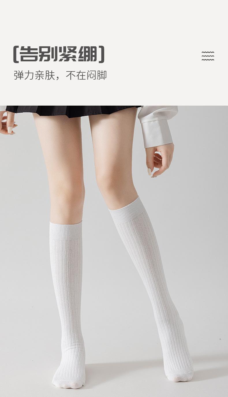 Calcetines de punto doble para mujer, calcetines negros, blancos y grises hasta la mitad de la pantorrilla, calcetines anchos de rayas de color liso jk, calcetines de primavera y otoño y hasta la rodilla que no se caen del tubo.