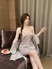 Pijama sexy para mujer con cinta de hielo, almohadilla para el pecho de encaje, espalda hermosa, camisón de tirantes Pure Desire, ropa de abrigo, ropa para el hogar