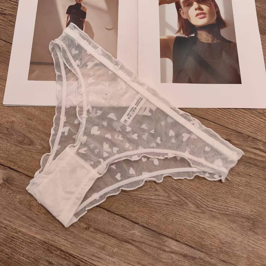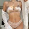 Lencería Sexy de Encaje Transfronteriza Super Delgada Transparente Estampado de Corazones Ropa Interior para Mujer Pecho Grande Luce Pequeño Cómodo Conjunto de Brasier