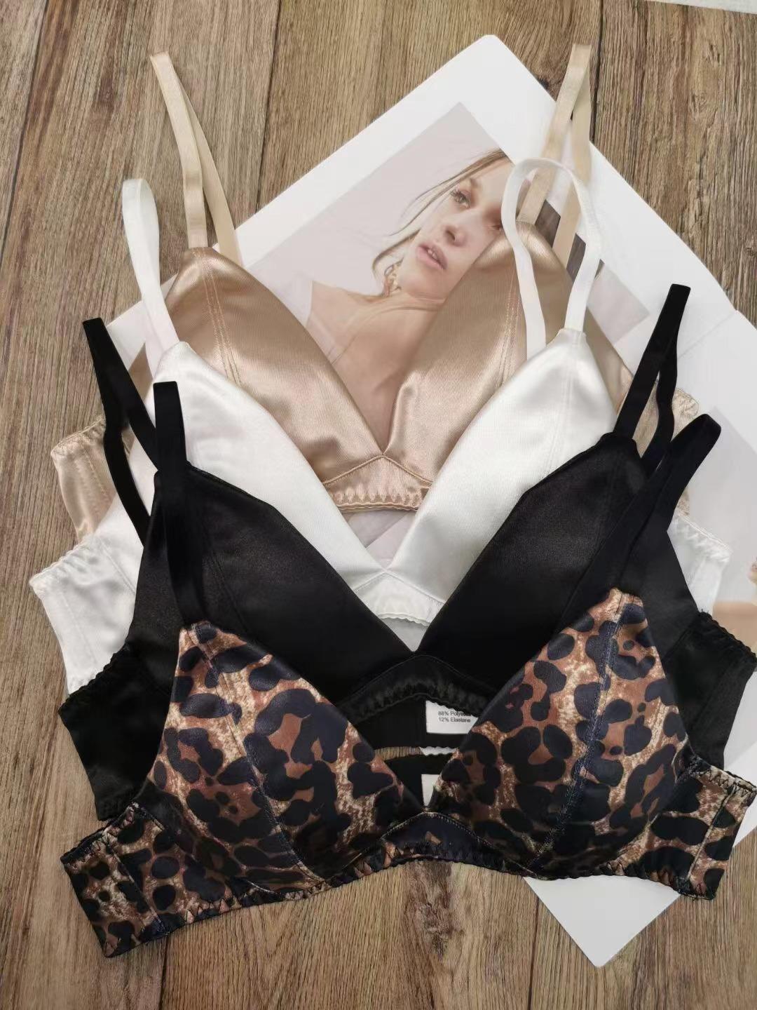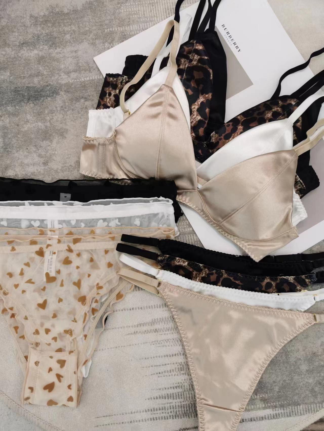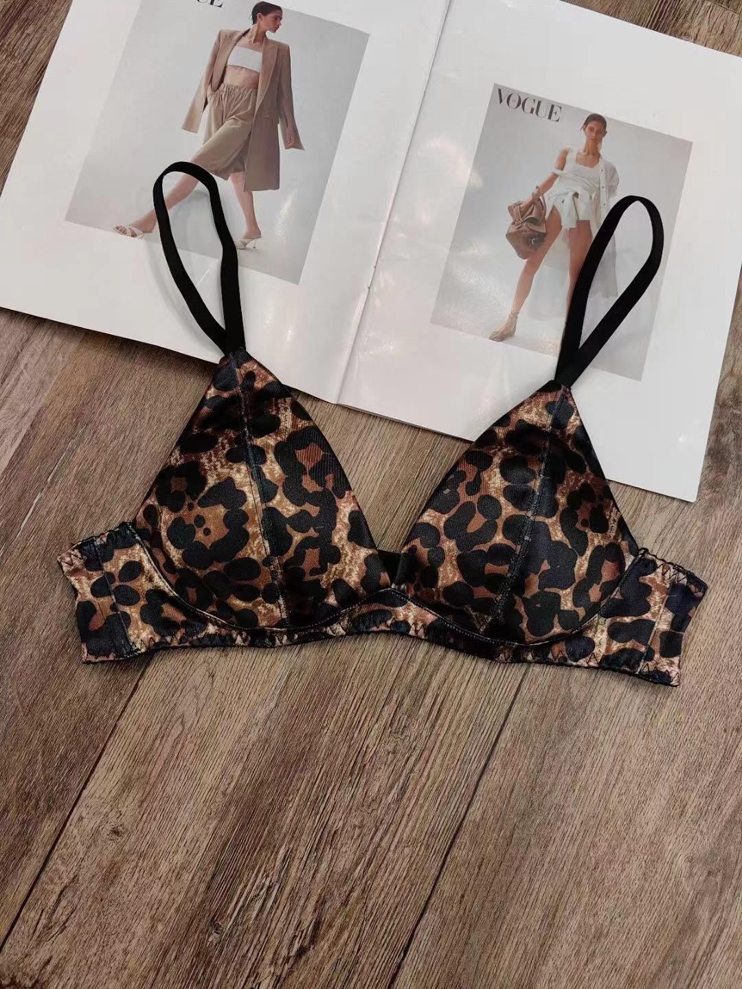 Lencería Sexy de Comercio Exterior Super Delgada Estampado de Leopardo Encaje Bordado Conjunto de Brasier Pecho Grande Luce Pequeño Brasier Anticaída