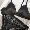 Lencería francesa transfronteriza súper delgada de malla con encaje y estampado flocado, lencería sexy con lazo sexy para niña