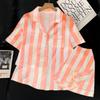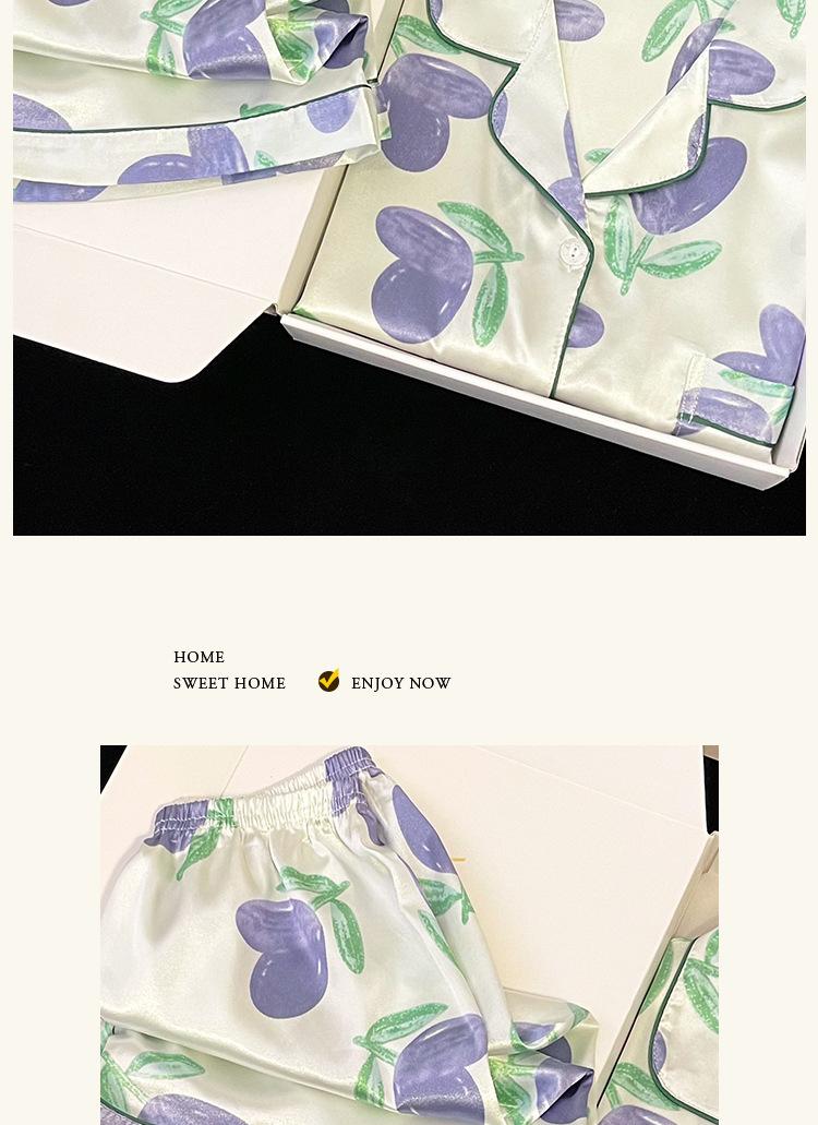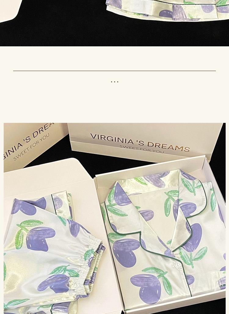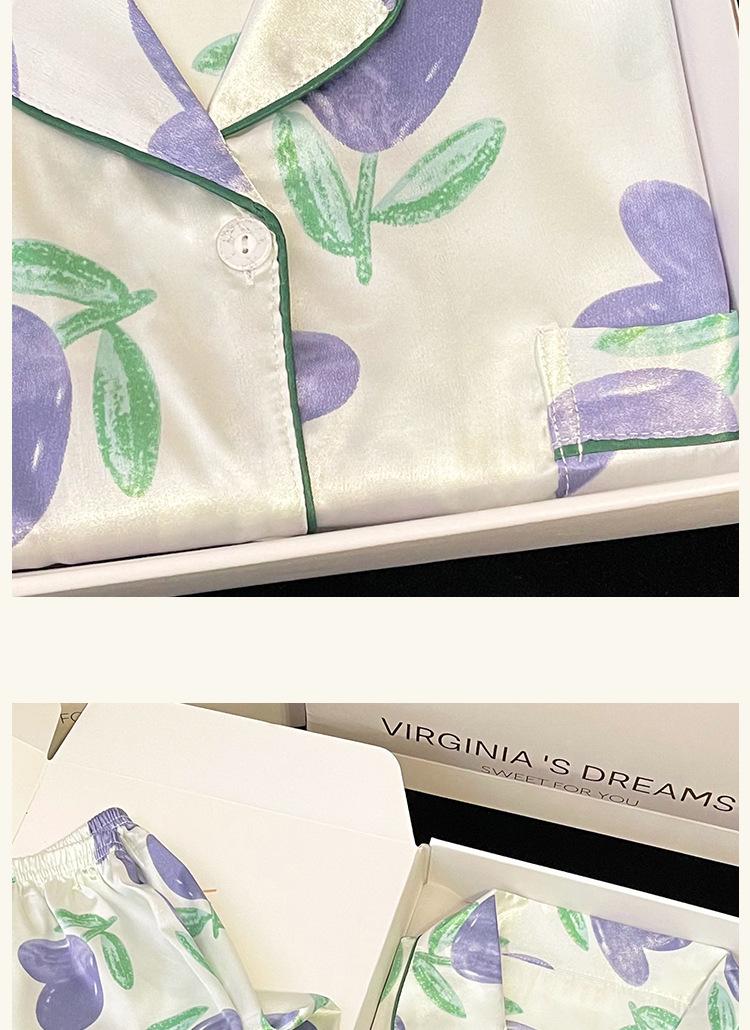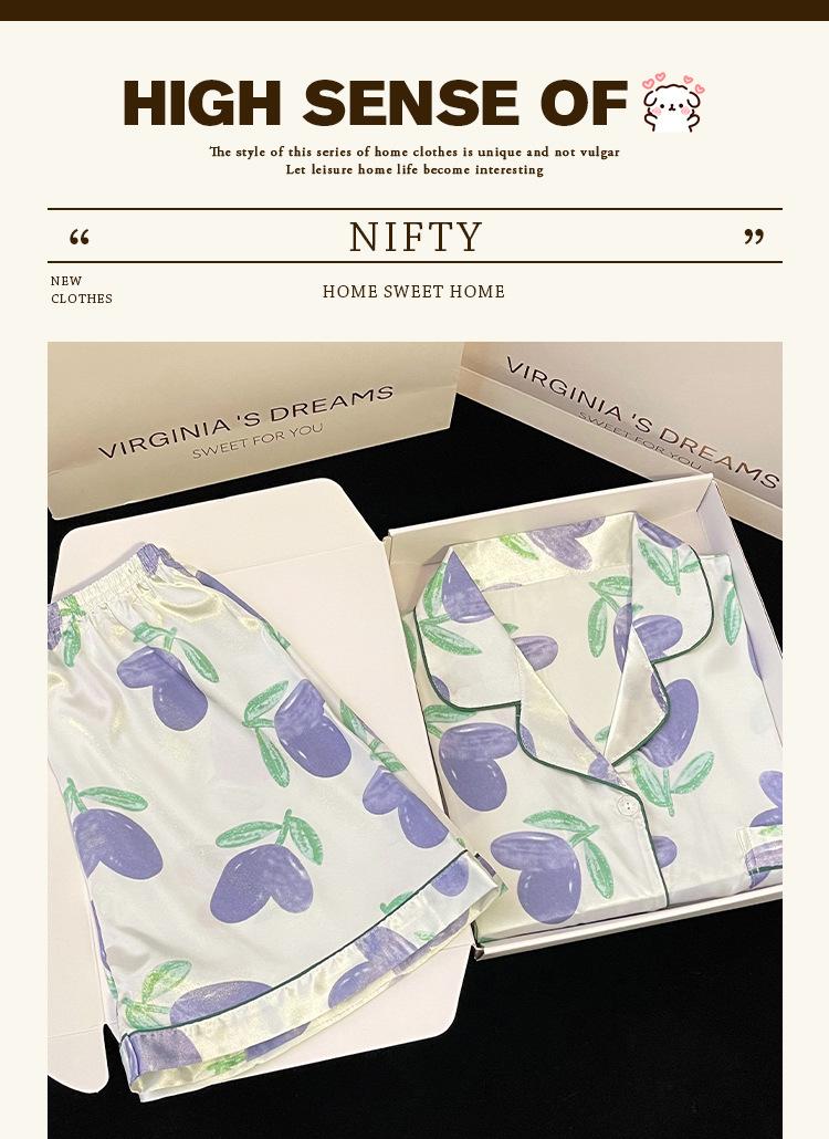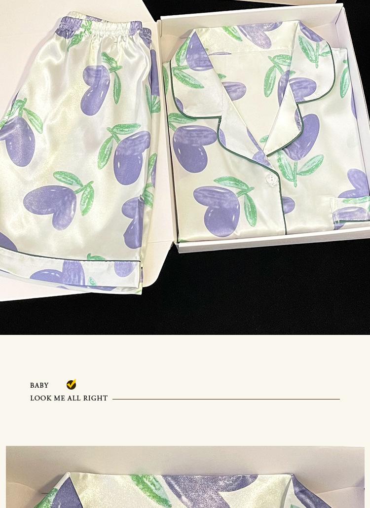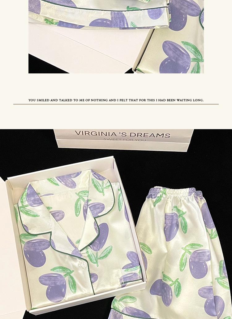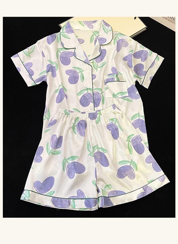 Pijamas de seda de hielo coreanos para mujer, ropa de verano de alta gama con estampado de tulipanes, dulce, de manga corta, para el hogar, venta al por mayor.