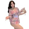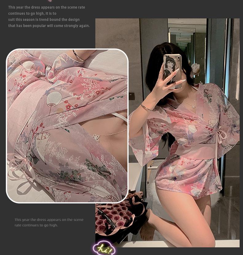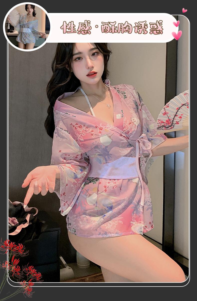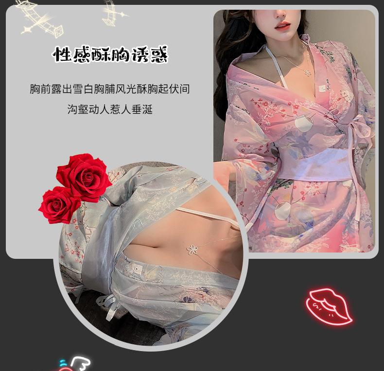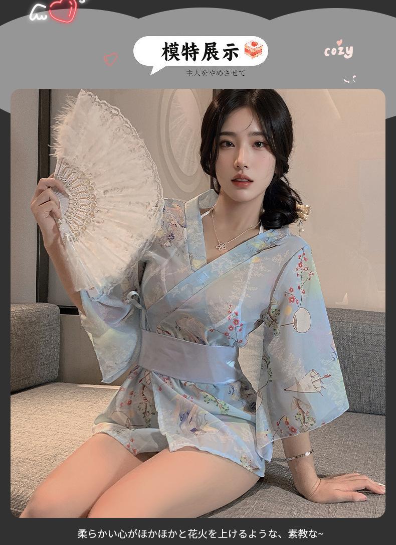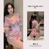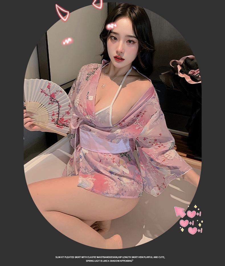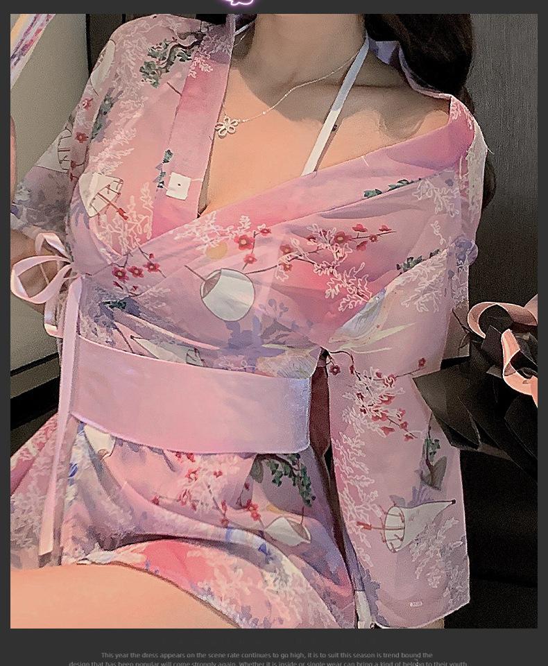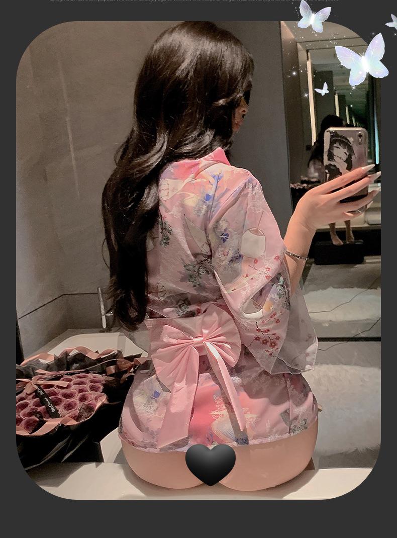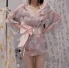 Lencería Sexy Kimono Bata para Mujer Traje Uniforme Tentación Estampado Bordado Lazo Japonés Pijama Japonés Sexy
