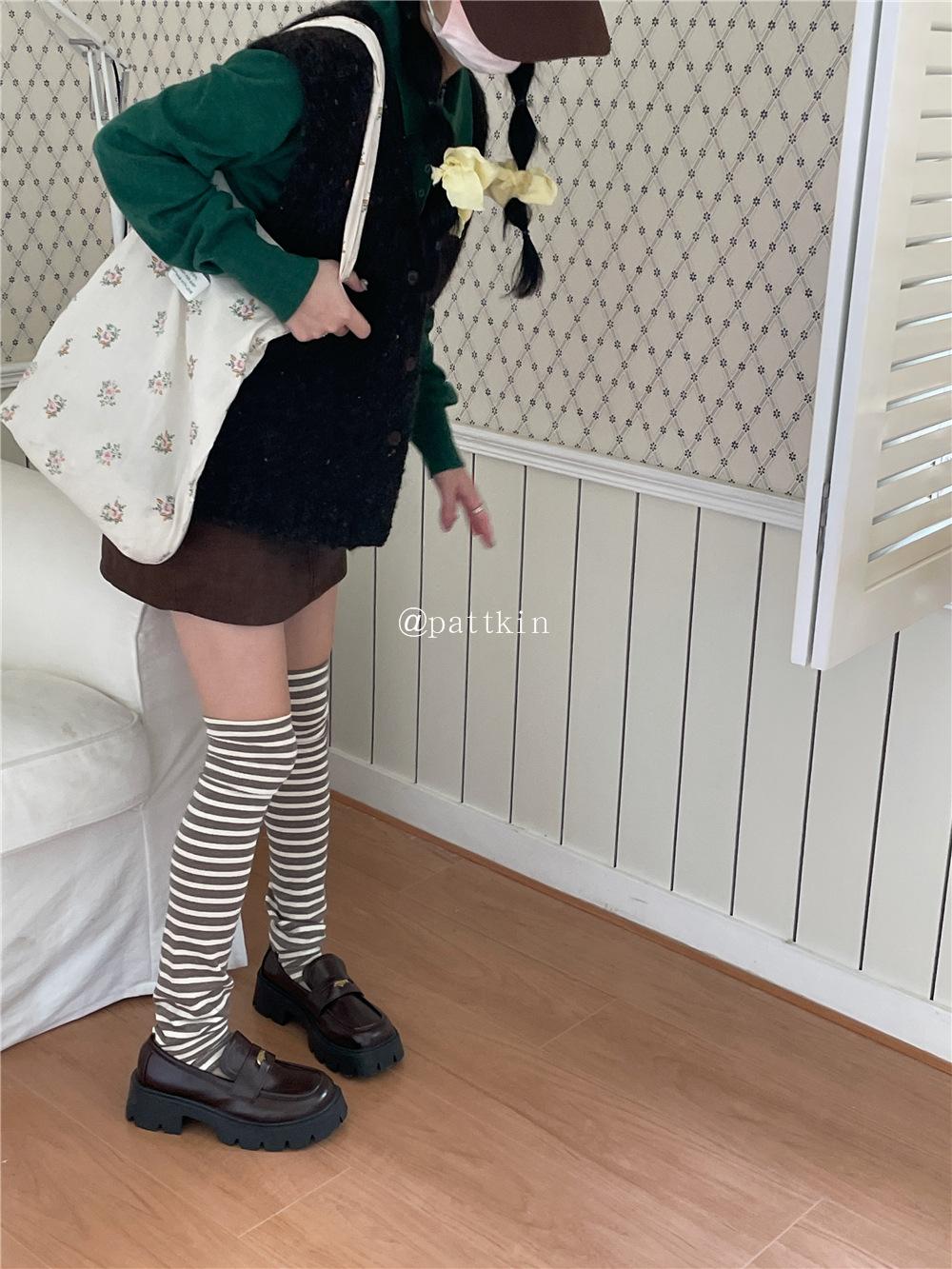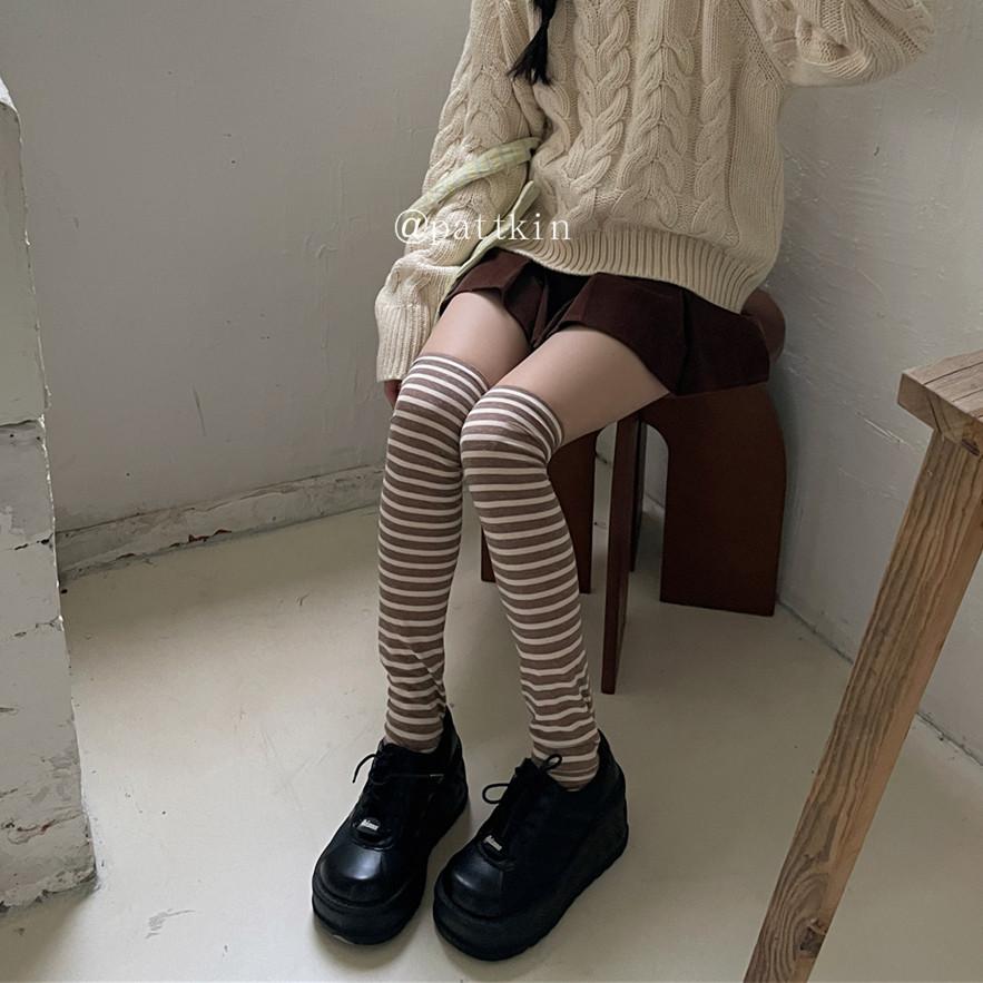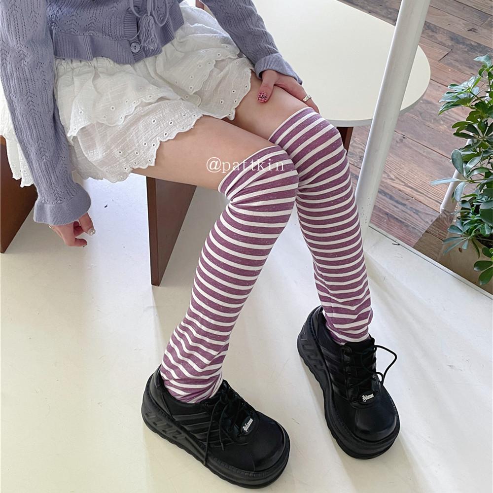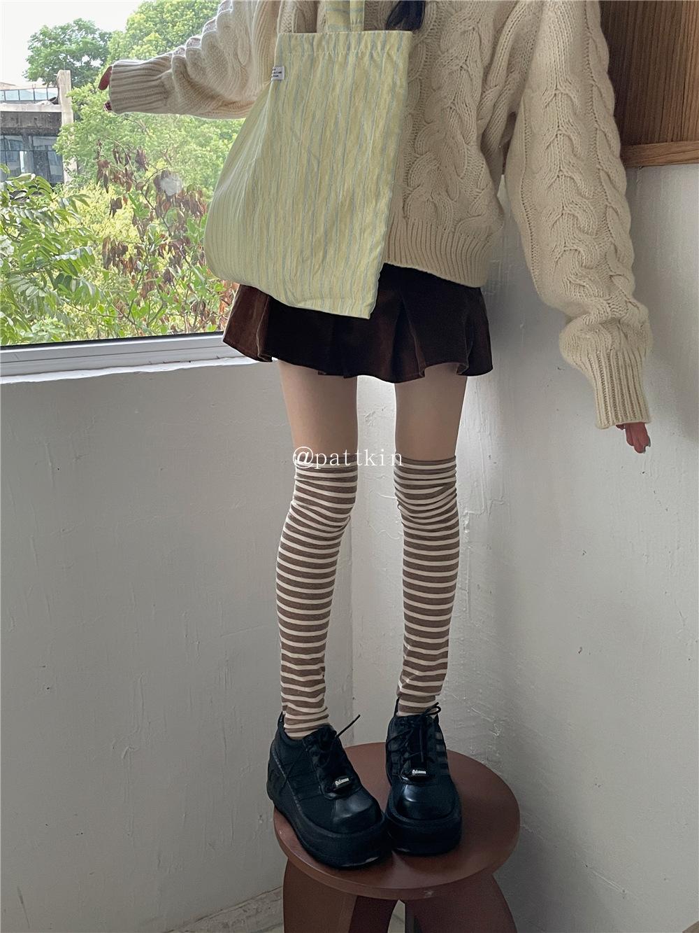Calcetines nuevos delgados transpirables de felpa hasta la rodilla rectos a rayas que combinan con todo calcetines de pantorrilla cubierta de pierna para mujer