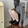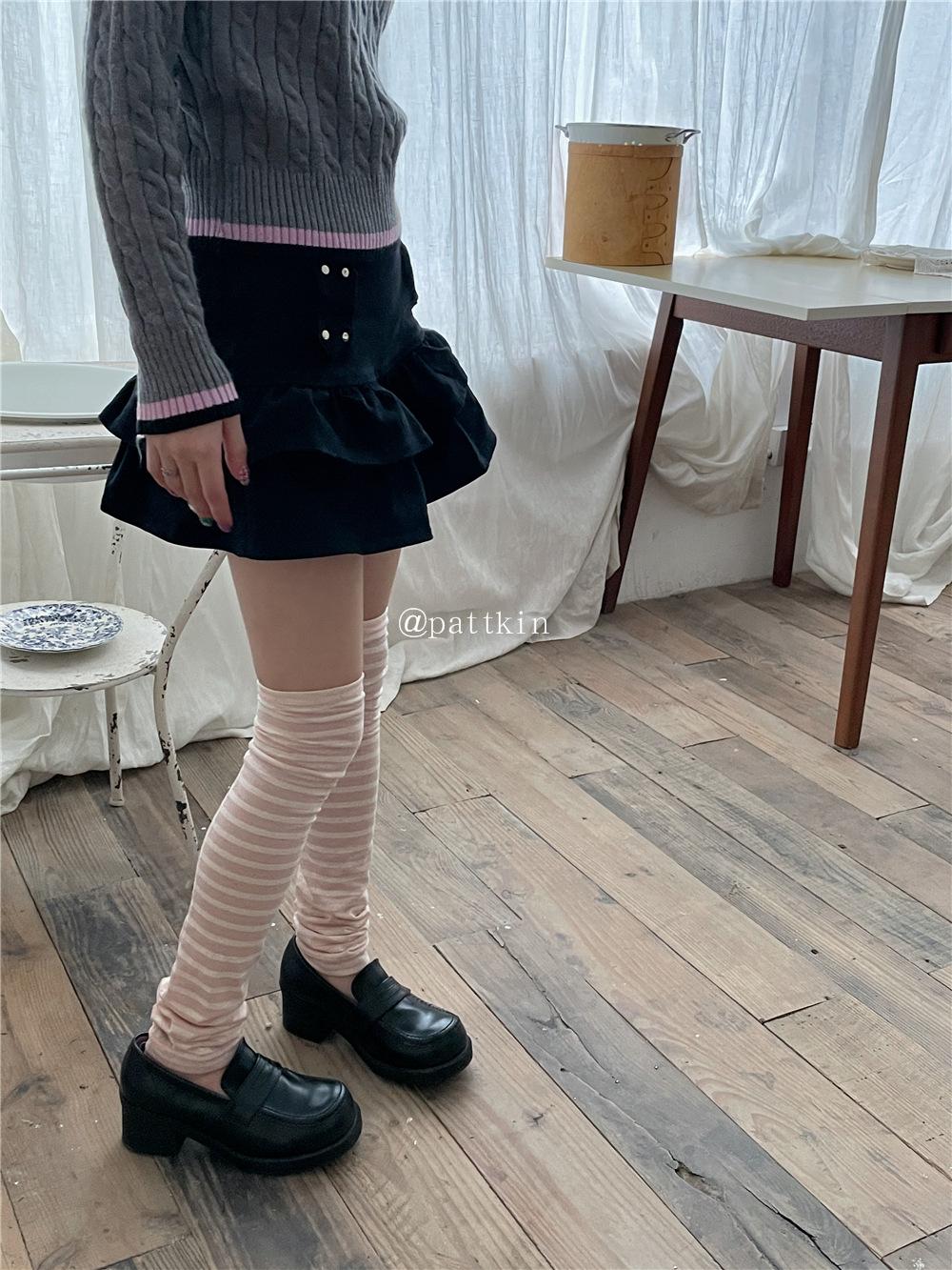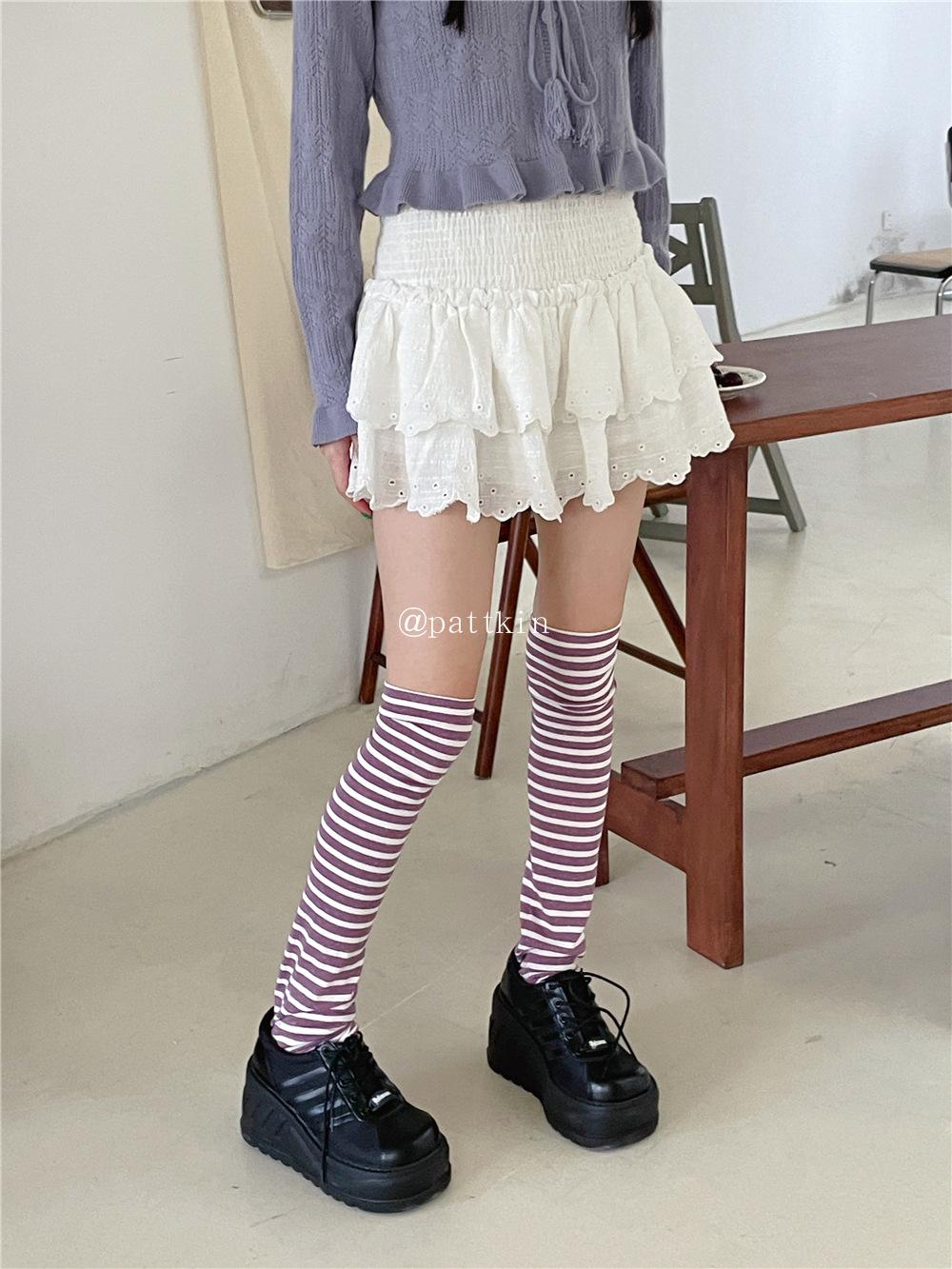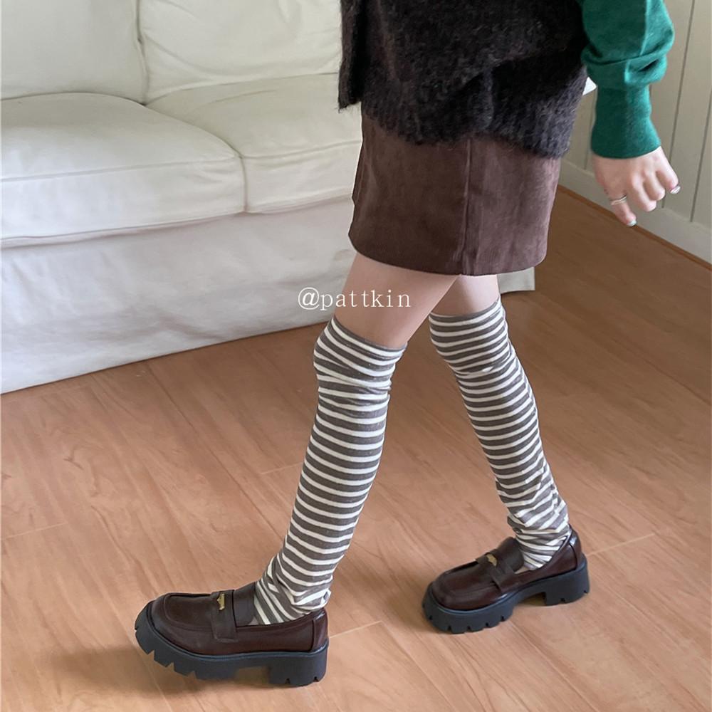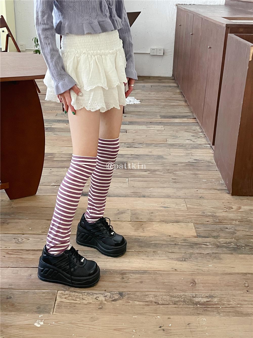 Calcetines nuevos delgados transpirables de felpa hasta la rodilla rectos a rayas que combinan con todo calcetines de pantorrilla cubierta de pierna para mujer