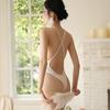 Vida nocturna Agua Abierto Sexy Ropa interior Traje de baño bikini de una pieza Ajustado Exterior Ahuecado Forma de T Seda de hielo 9101