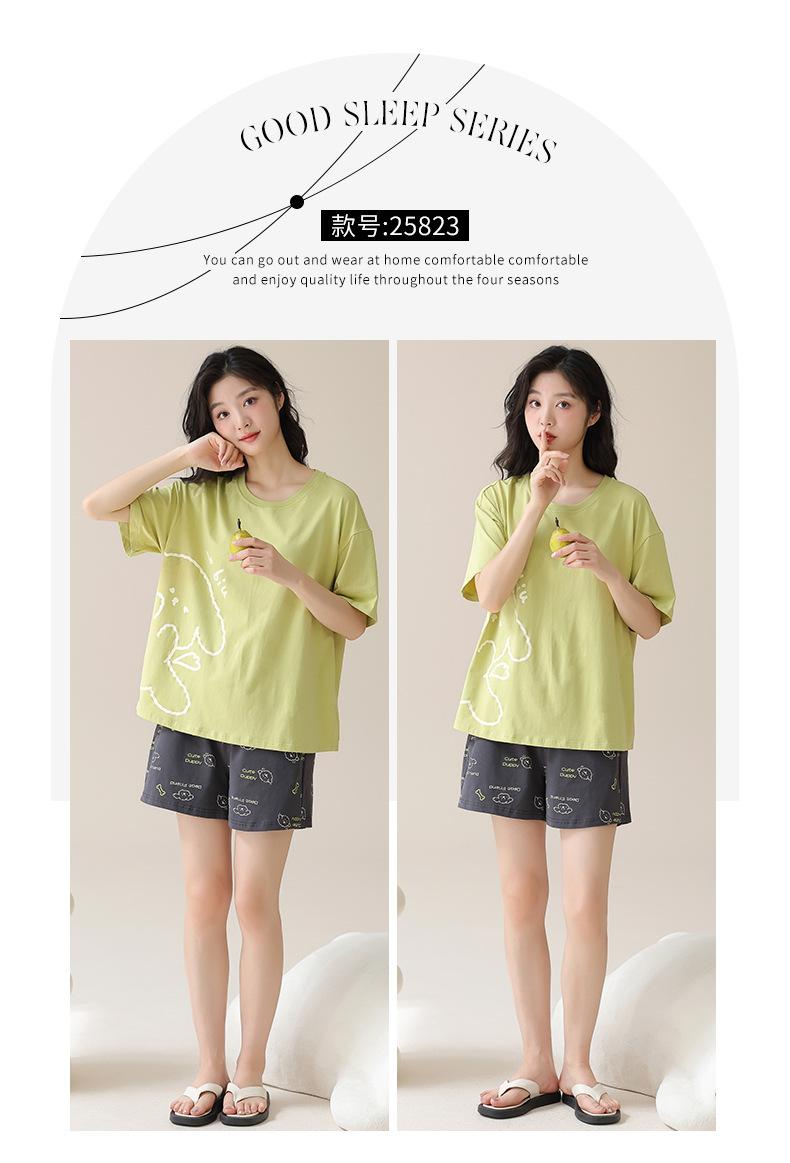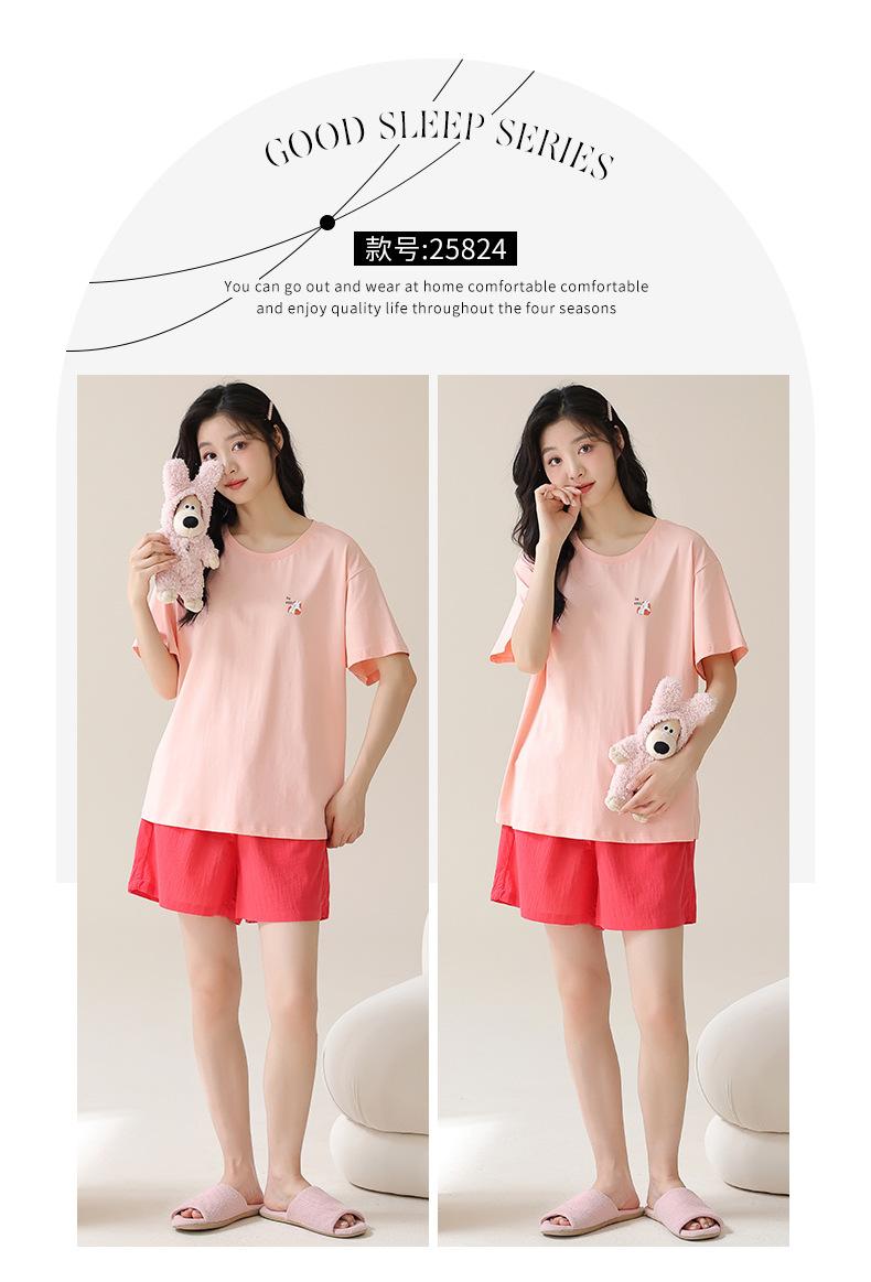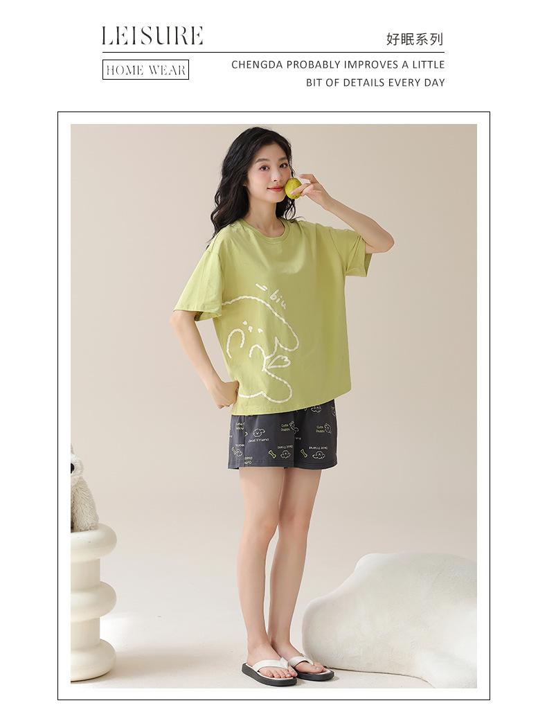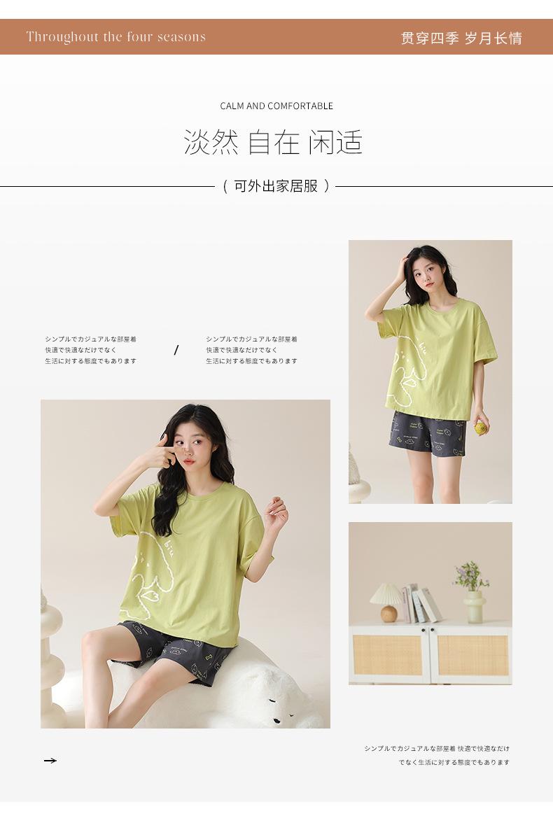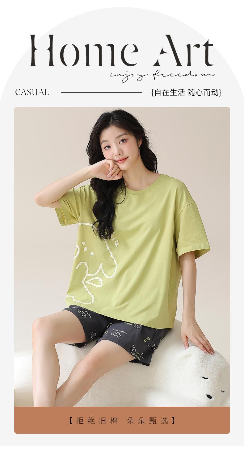 Pijamas de verano para mujer, nuevos pantalones cortos de algodón de imitación, traje de dos piezas de manga corta, estilo coreano, ropa de casa con dibujos animados para el verano.
