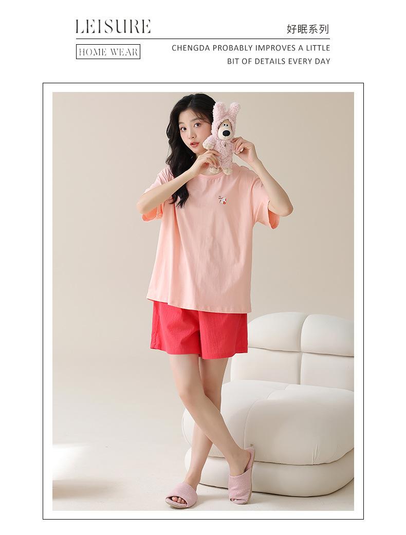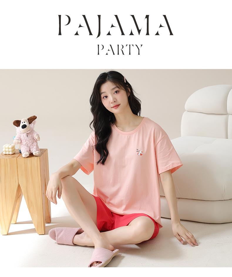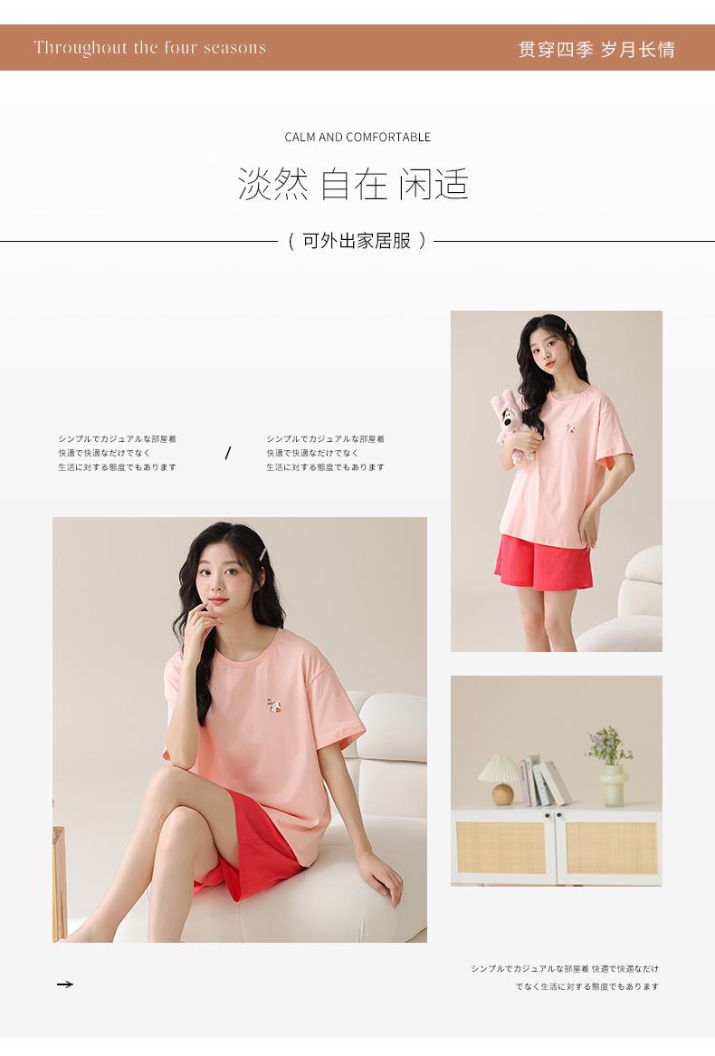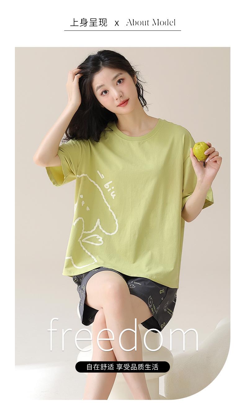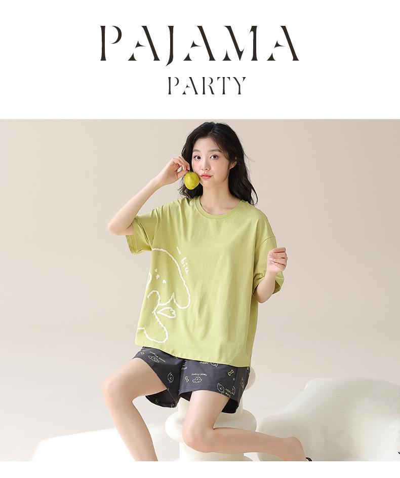 Pijamas de verano para mujer, nuevos pantalones cortos de algodón de imitación, traje de dos piezas de manga corta, estilo coreano, ropa de casa con dibujos animados para el verano.