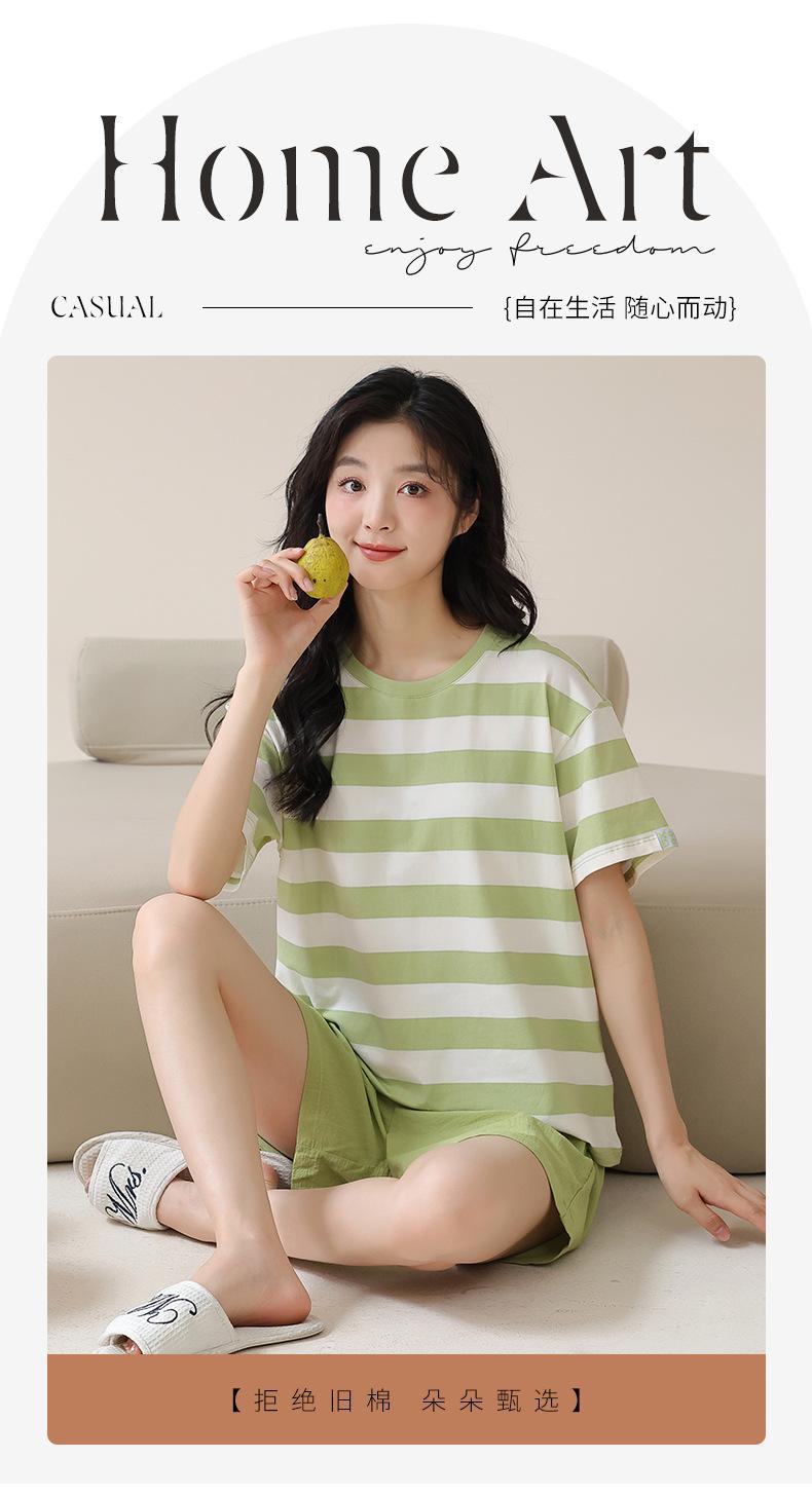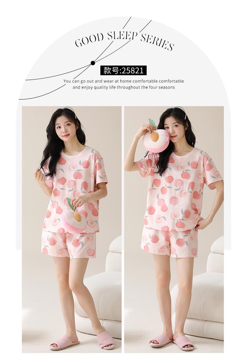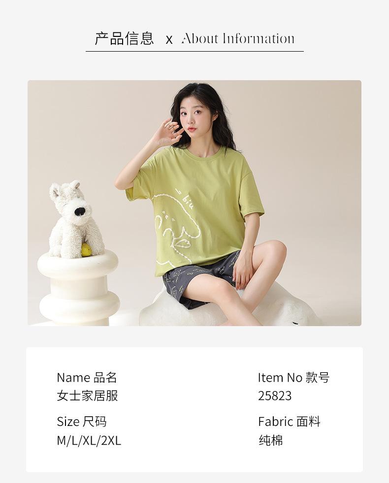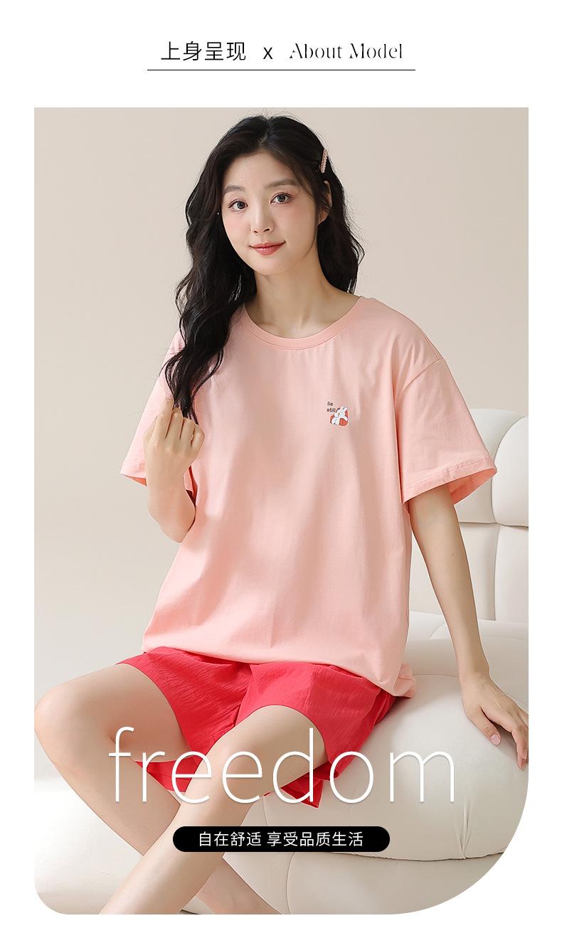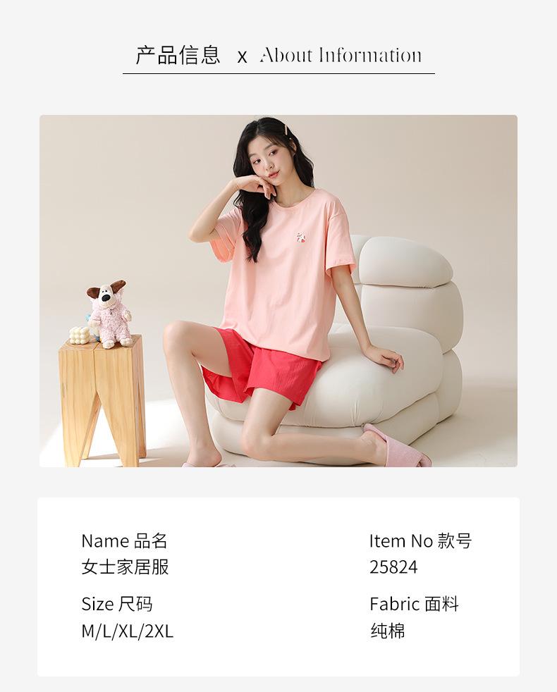 Pijamas de verano para mujer, nuevos pantalones cortos de algodón de imitación, traje de dos piezas de manga corta, estilo coreano, ropa de casa con dibujos animados para el verano.
