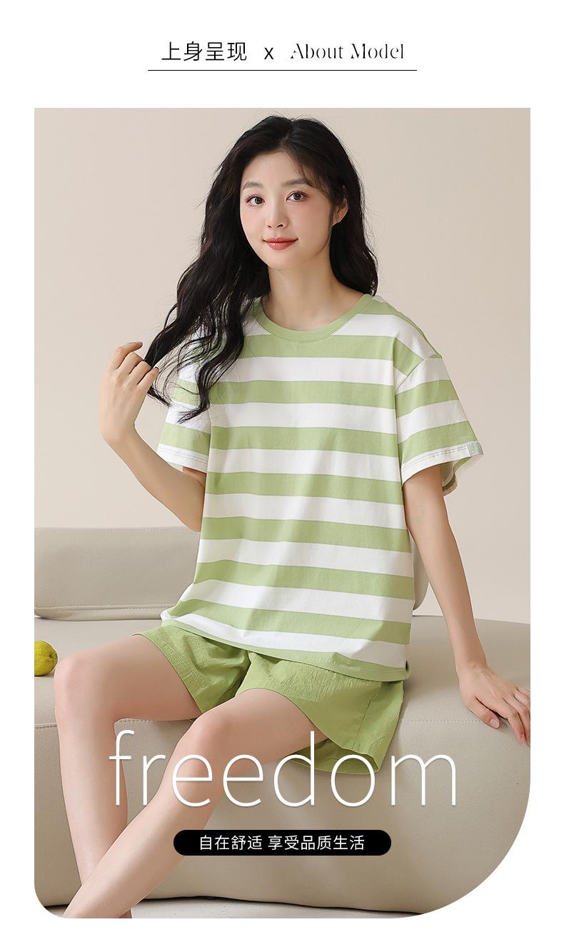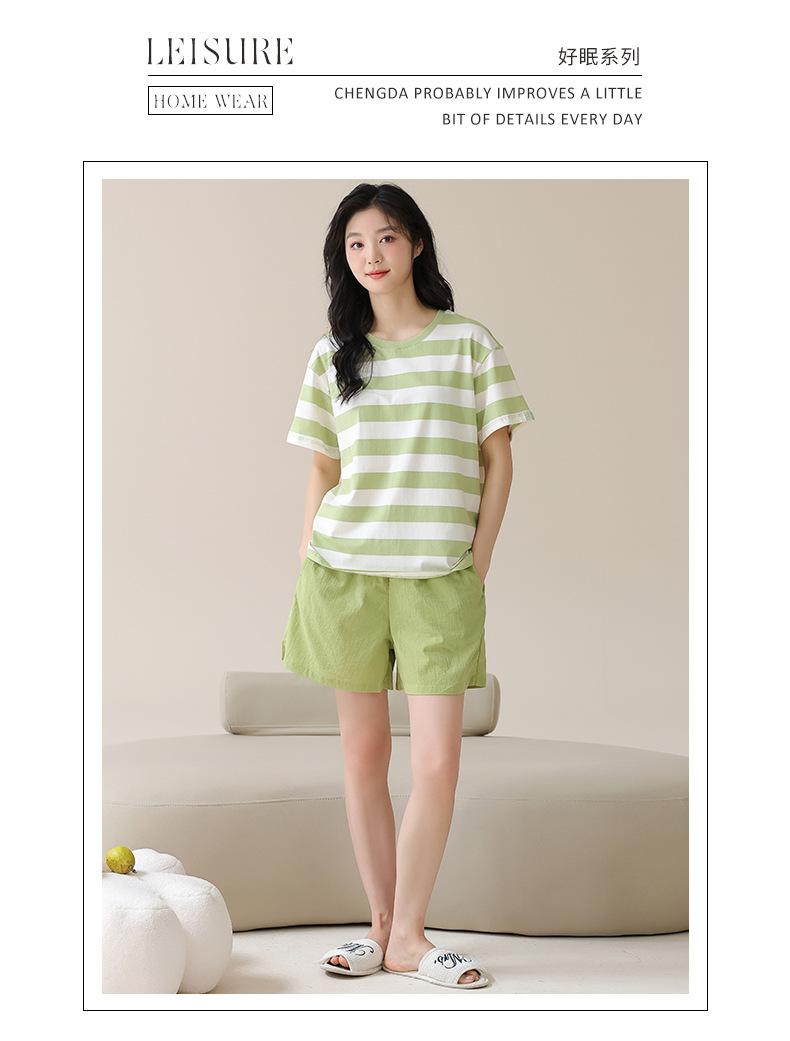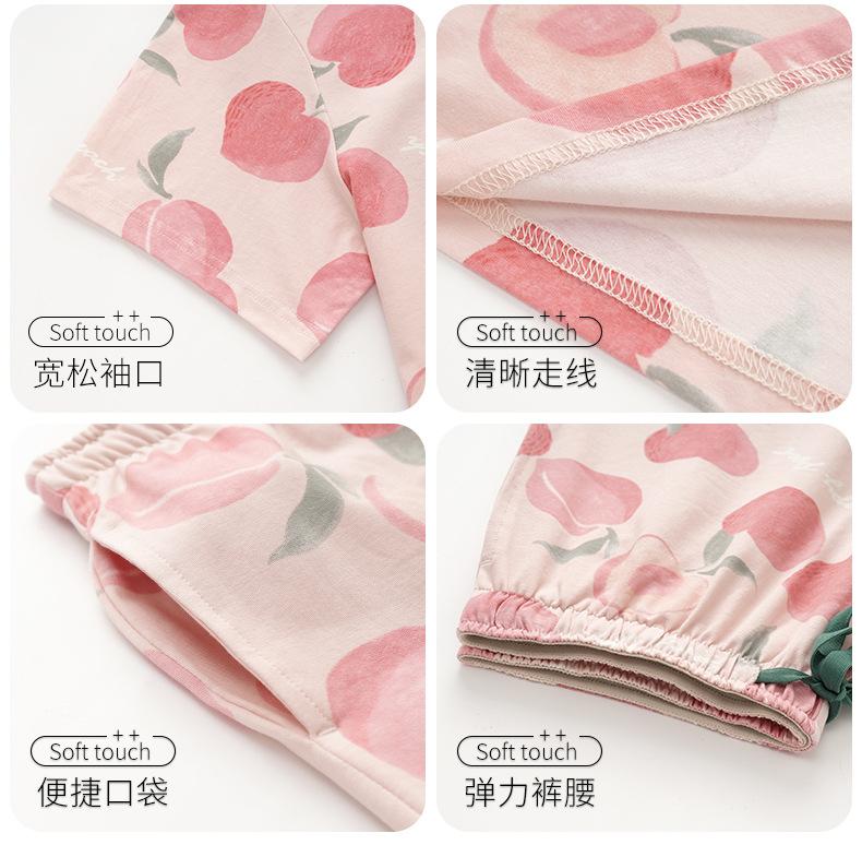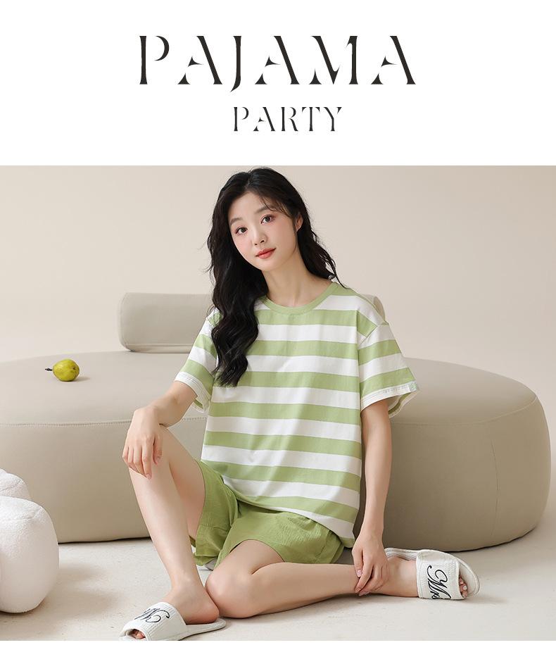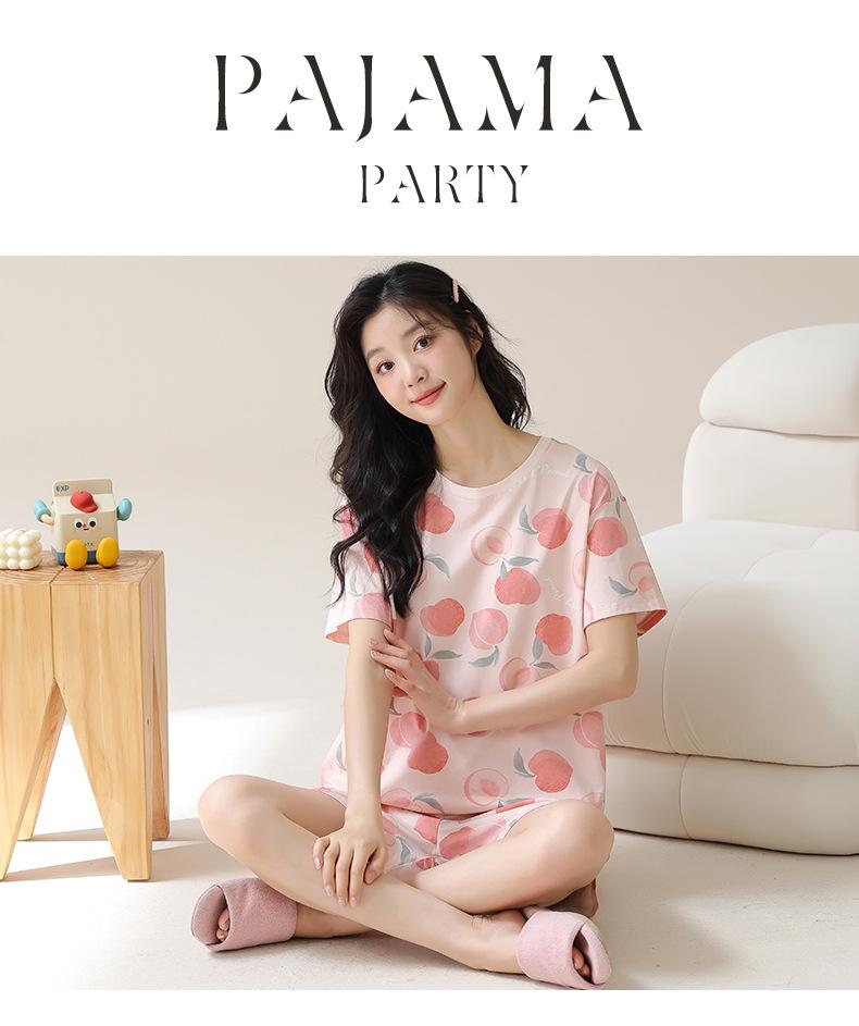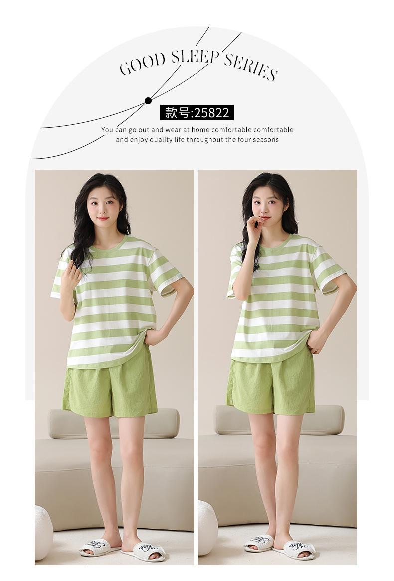 Pijamas de verano para mujer, nuevos pantalones cortos de algodón de imitación, traje de dos piezas de manga corta, estilo coreano, ropa de casa con dibujos animados para el verano.