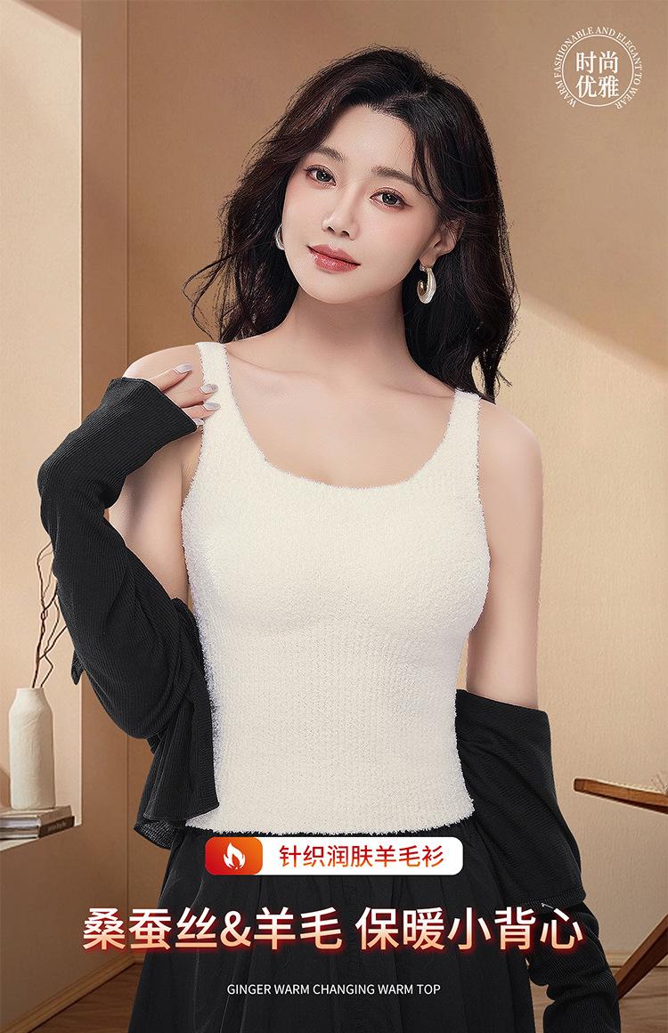 Chaleco térmico de lana de hombro ancho, ropa interior de belleza de una pieza para la espalda, fondo para mujer, delgado, sujetador interior, otoño e invierno, Nuevo