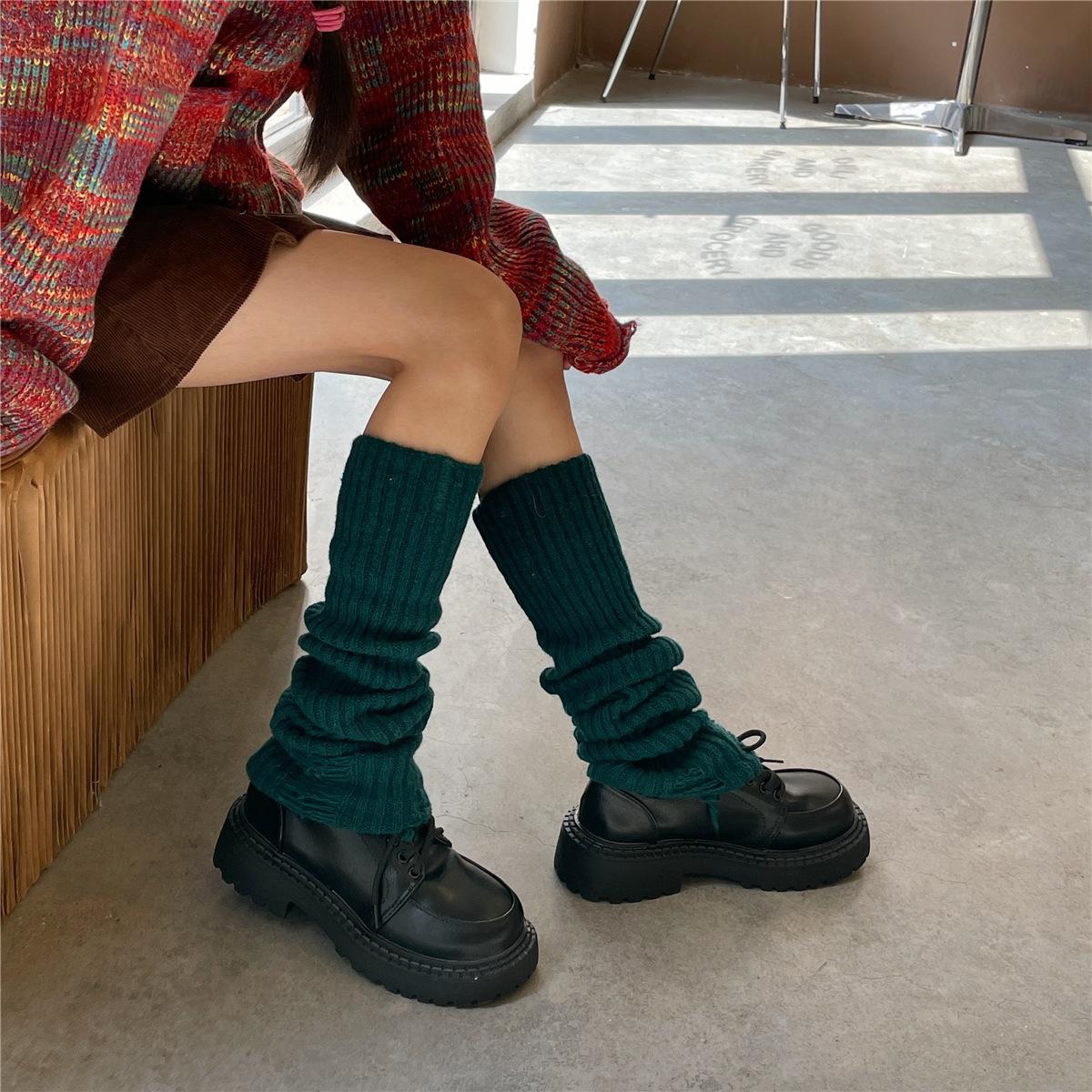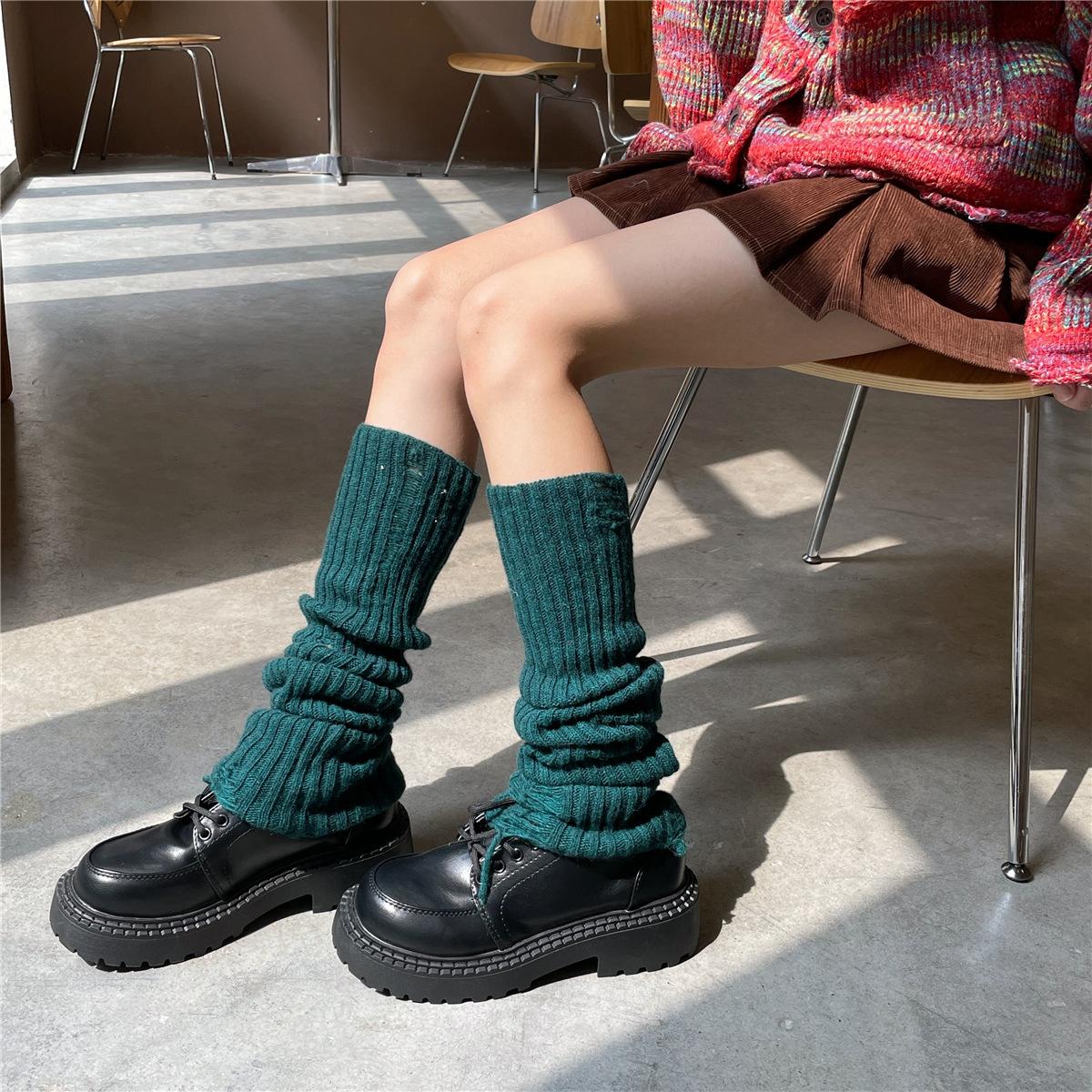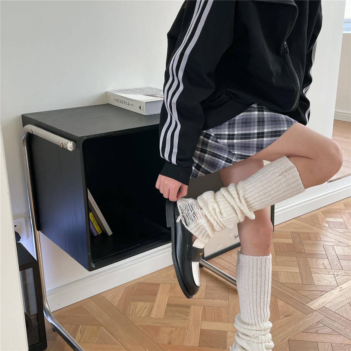 Calcetines de lana con 30 % de agujeros, estilo academia, para otoño e invierno, estilo Spice Girls, apilados, estilo japonés, para cubrir las piernas.