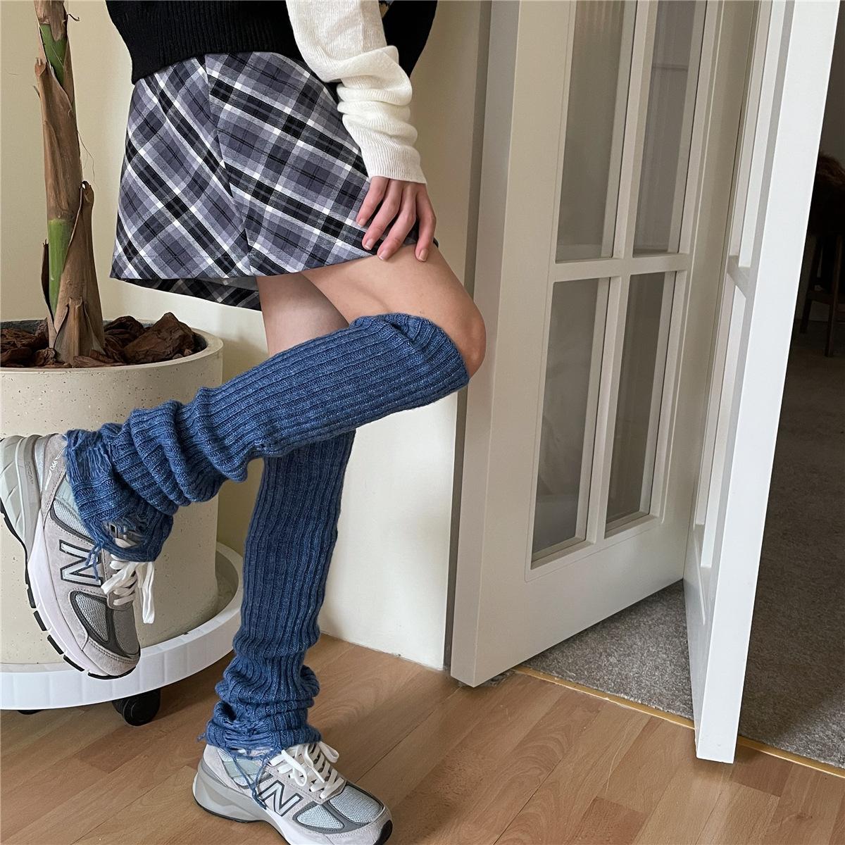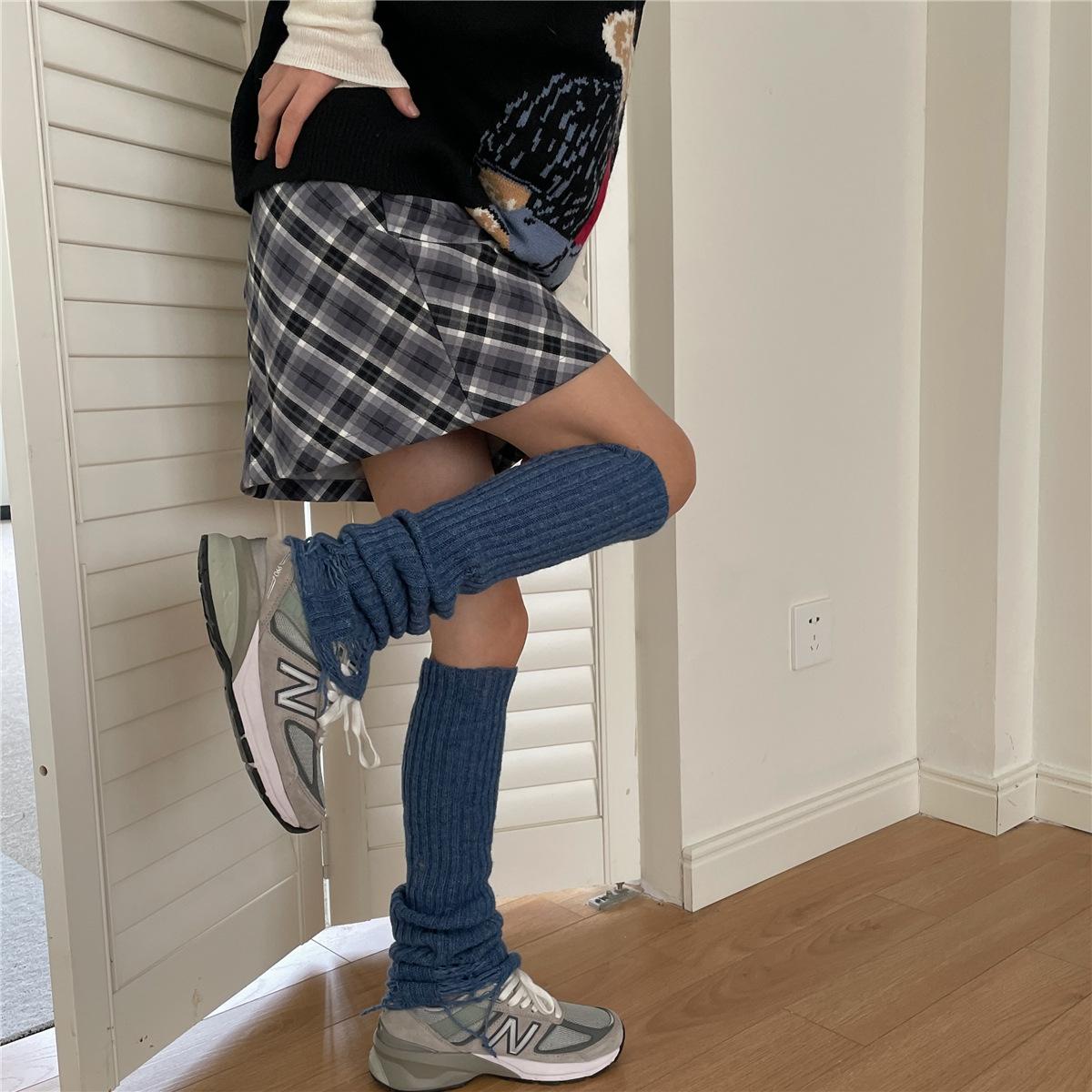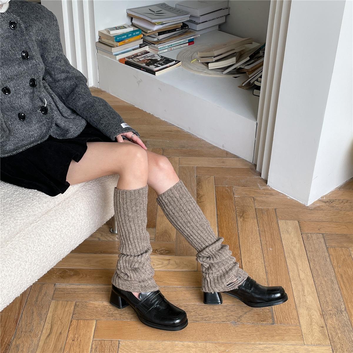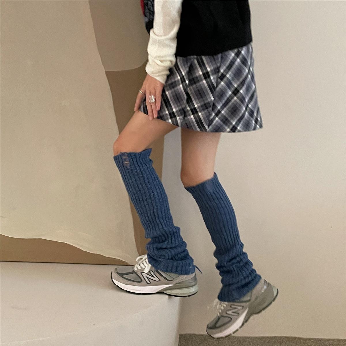 Calcetines de lana con 30 % de agujeros, estilo academia, para otoño e invierno, estilo Spice Girls, apilados, estilo japonés, para cubrir las piernas.
